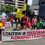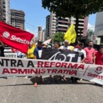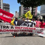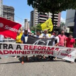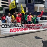 A atividade contou com diversos sindicatos e movimentos sociais que se reuniram na Praça da Flores, em Petrópolis, e saíram em caminhada até a Praia do Meio.
