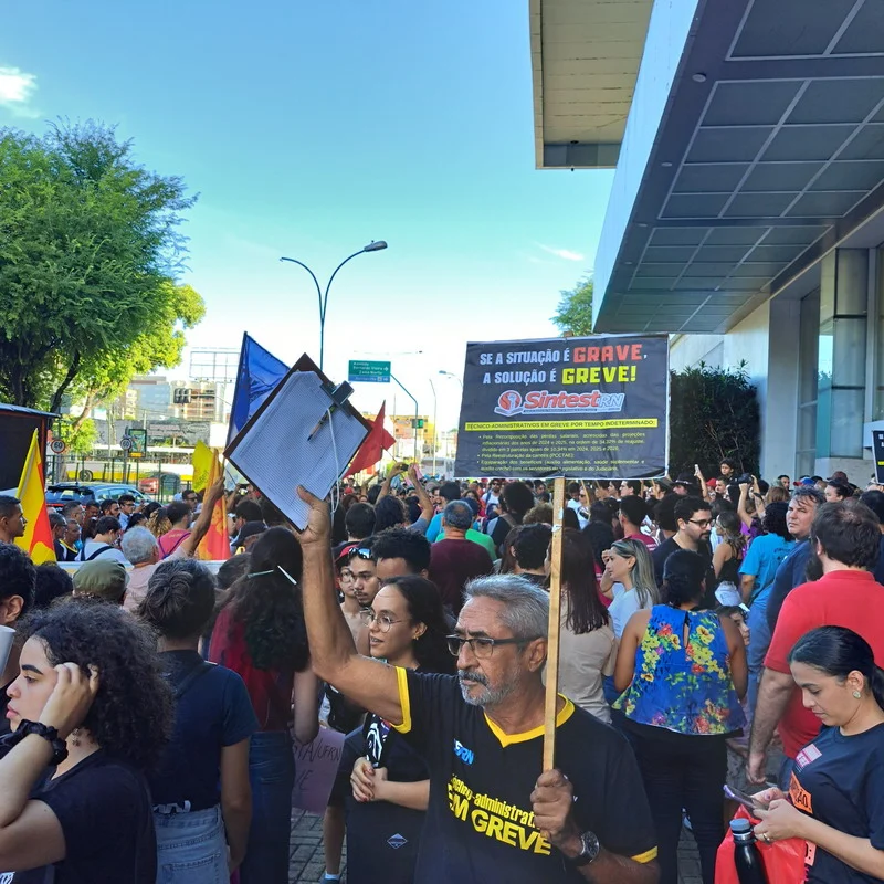Em Natal os servidores técnico-administrativos e docentes, em greve, da UFRN e IFRN, junto com o movimento estudantil foram às ruas e realizaram uma marcha pela educação que se iniciou na Av. Salgado Filho em frente ao Campus Central do IFRN e terminou nas imediações da Igreja Universal também na Av. Salgado Filho.