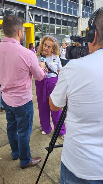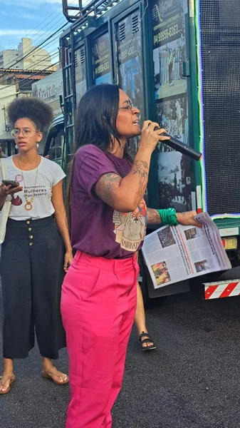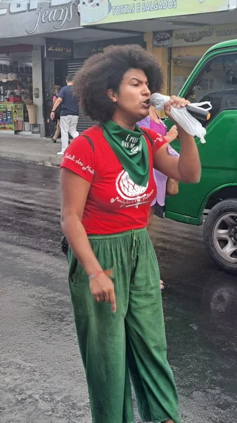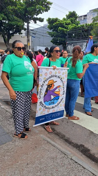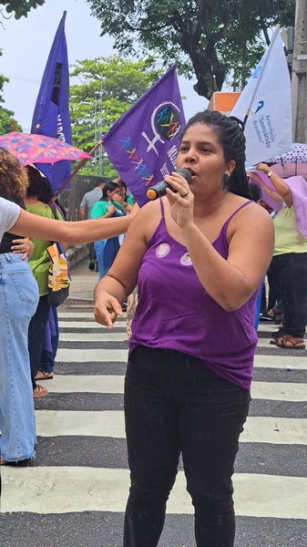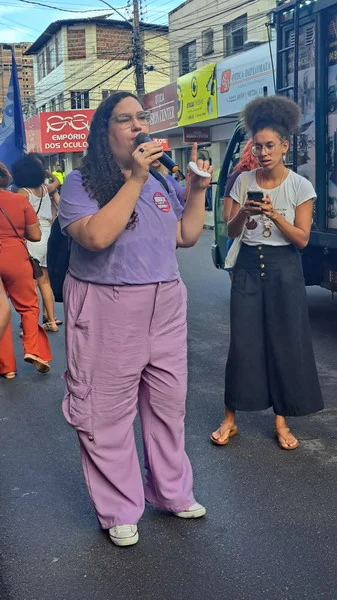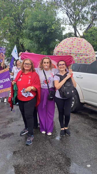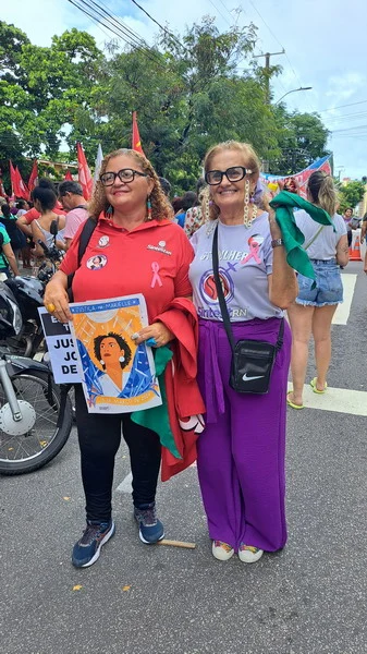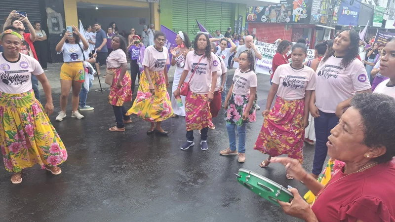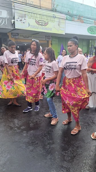 Mesmo de baixo de chuva a mulherada saiu em caminhada pelas ruas da Cidade Alta, partindo do Banco do Brasil na Avenida Rio Branco até a Praça Cívica.