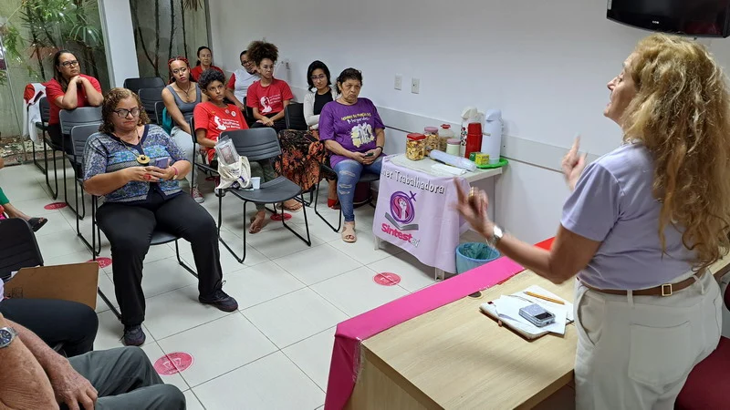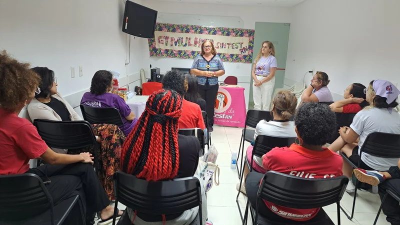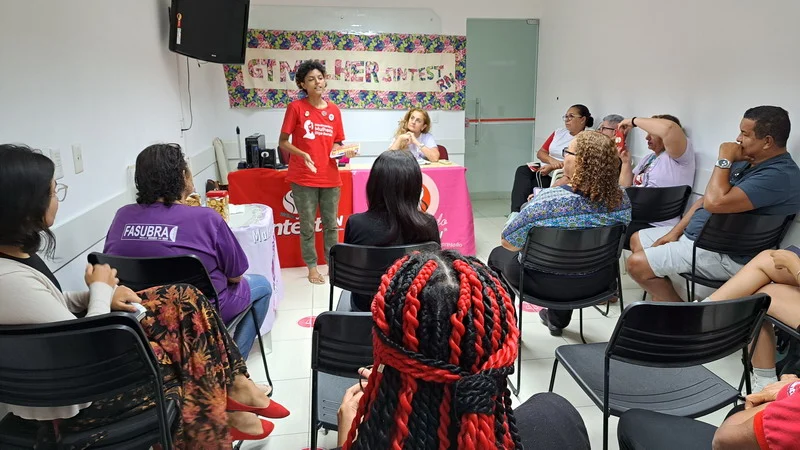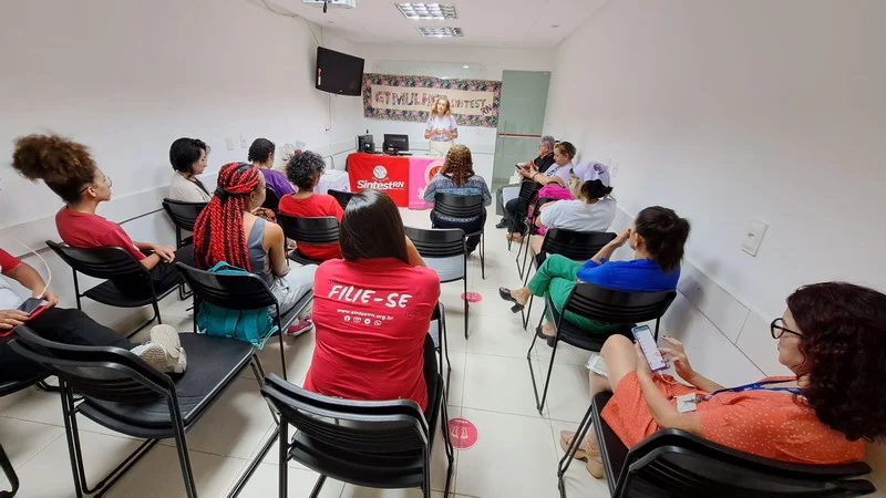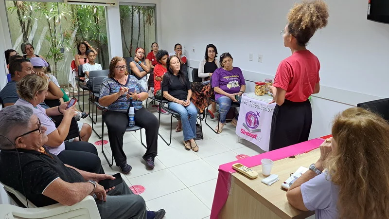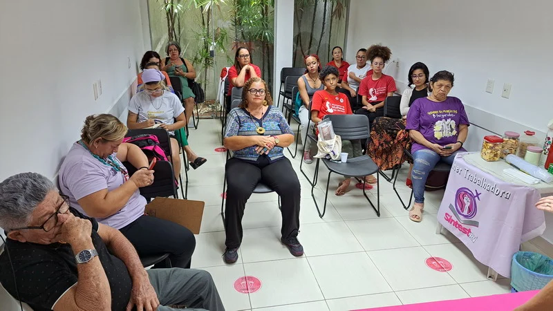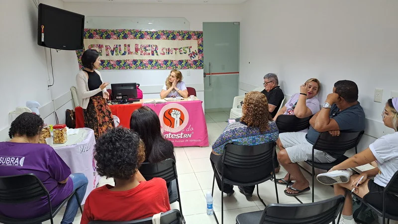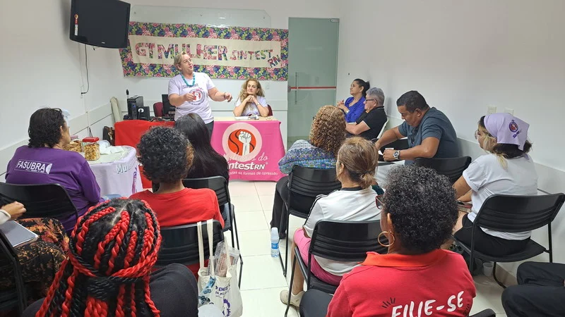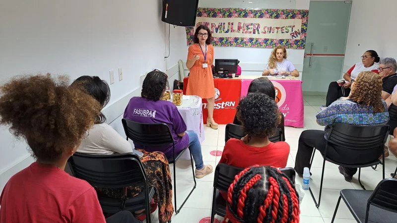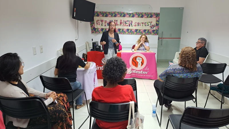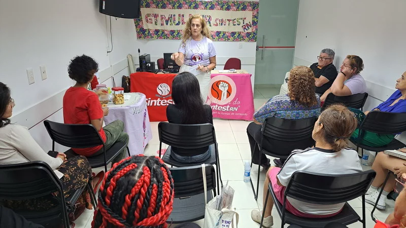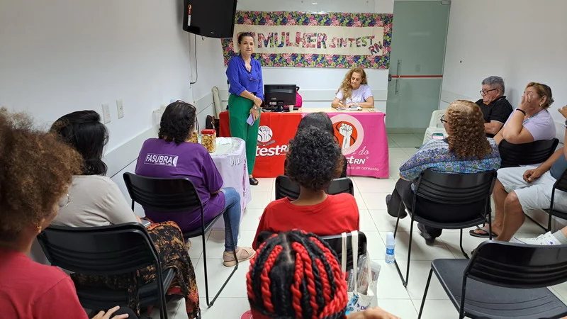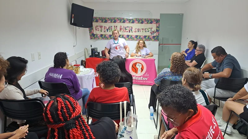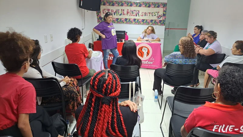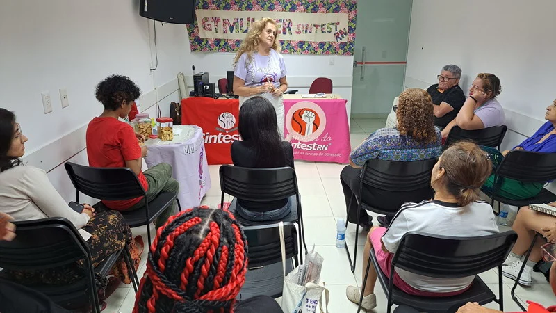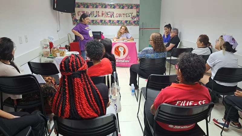 Ainda pela direção do Sintest, participaram as coordenadoras Enoleide Farias (pasta da comunicação) e Celita Pessoa (pasta jurídica). As funcionárias do sindicato também participaram da roda de conversa como um espaço de formação política.