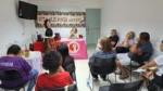 Tházia Maia, coordenadora da pasta da Mulher Trabalhadora do Sintest, iniciou a reunião com uma fala sobre acontecimentos recentes no Rio Grande do Norte envolvendo o assassinato brutal de mulheres e o aumento de casos de feminicídio.