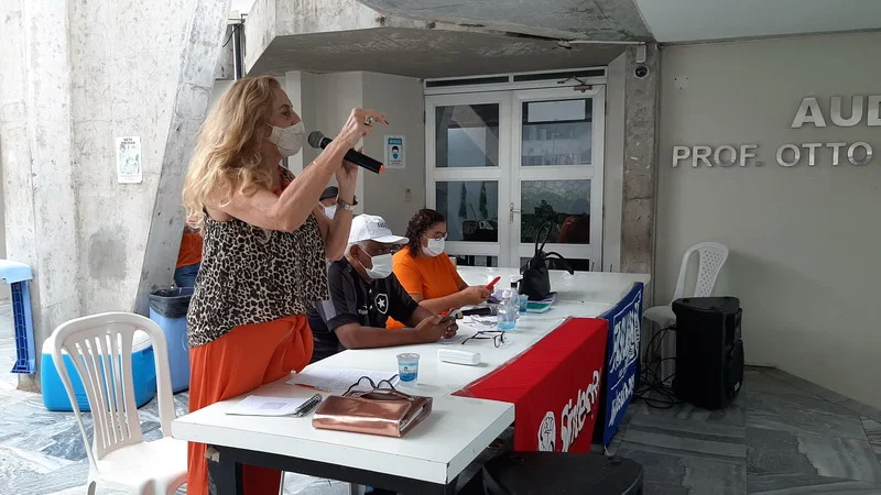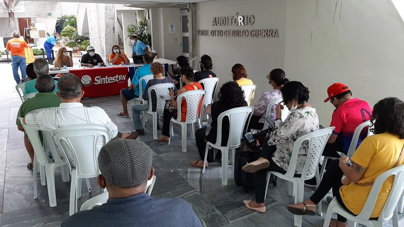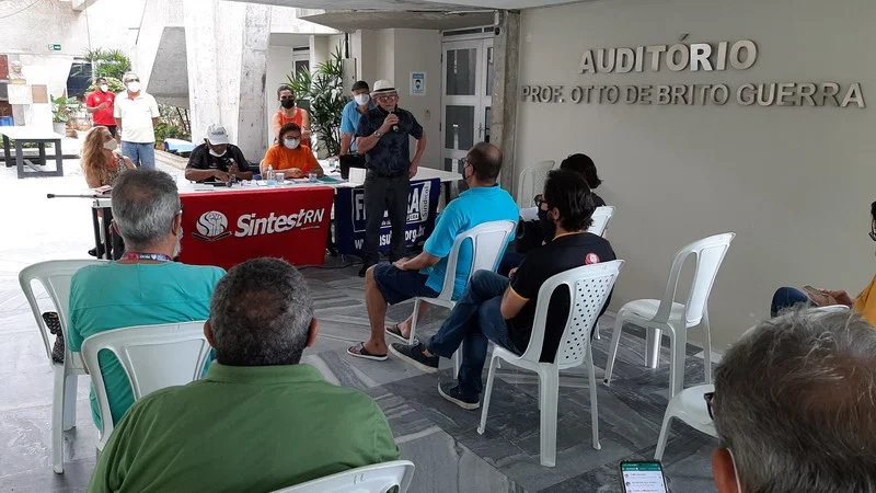 Na manhã desta quarta-feira, 16/03, o SintestRN realizou uma Assembleia Ato presencial, no pátio da reitoria da UFRN. A atividade seguiu orientação da última Plenária da Fasubra e teve como objetivo, a mobilização da categoria para a construção de uma greve unificada dos Servidores Públicos Federais em prol da Campanha Salarial 2022 que possivelmente será deflagrada no dia 23 de março.