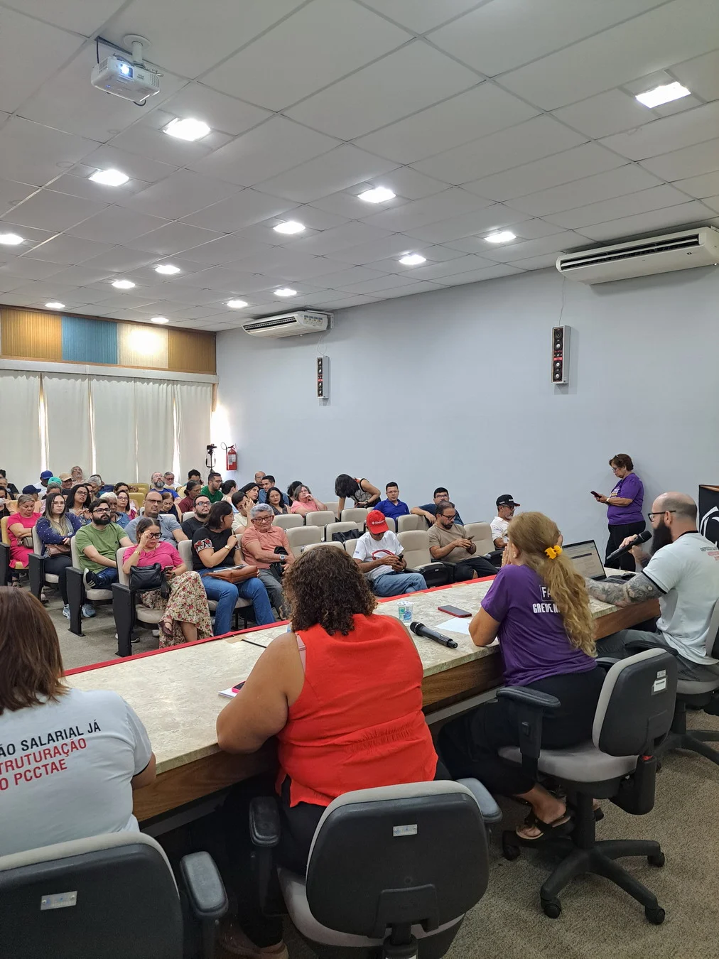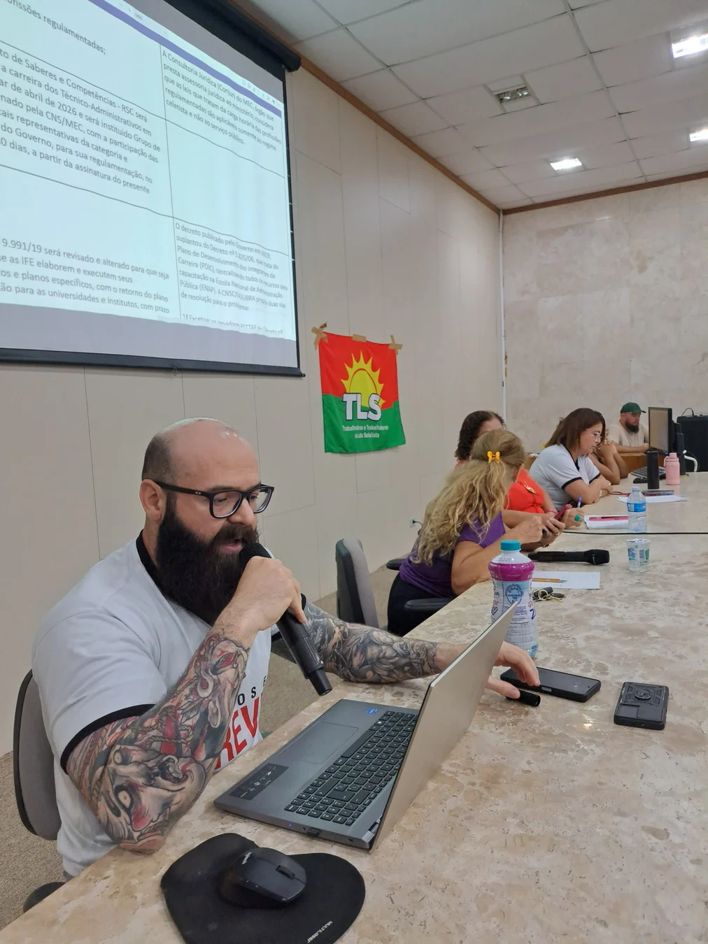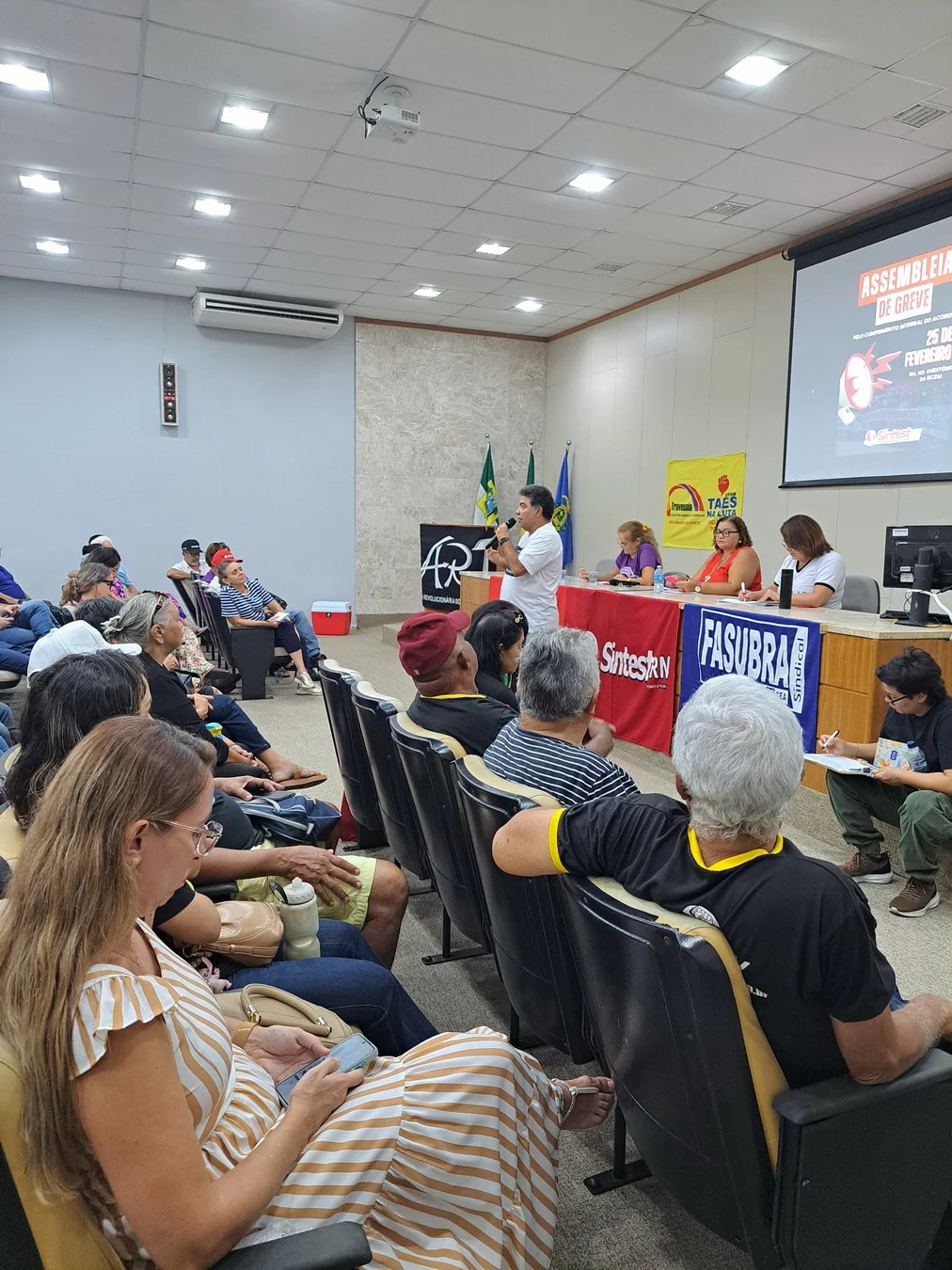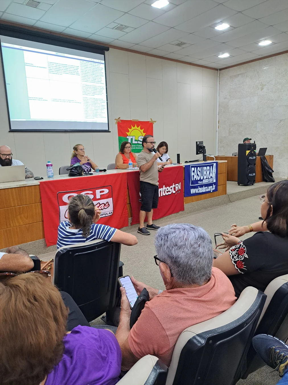 Um dos momentos centrais da assembleia foi a apresentação de Viktor Gruska, representante da CNSC/FASUBRA, que detalhou os itens do acordo não cumpridos pelo governo. Dos 29 pontos pactuados, apenas 11 foram implementados; 17 seguem sem execução. Entre eles estão medidas estruturantes da carreira e condições de trabalho. A apresentação completa está disponível em PDF.