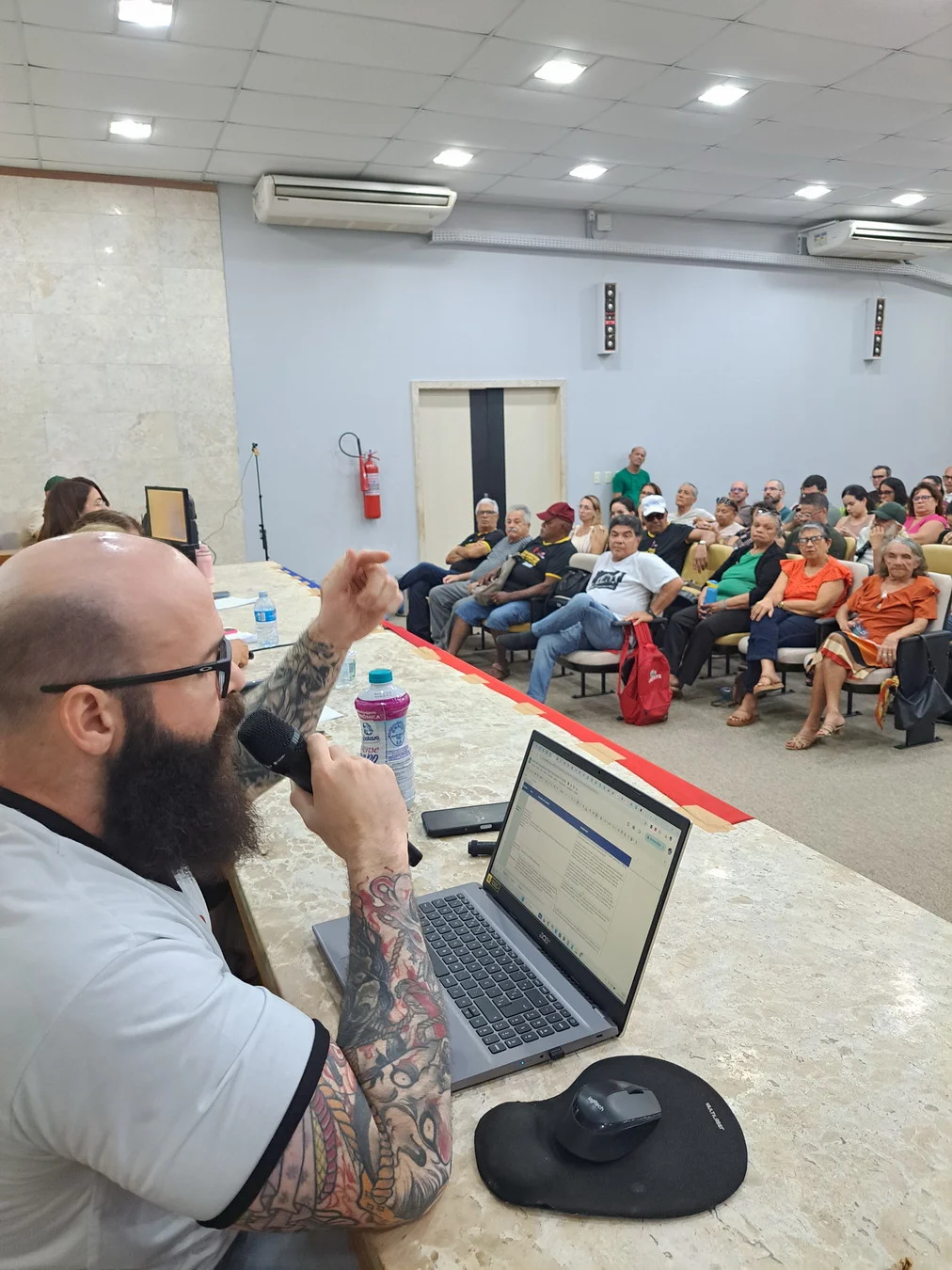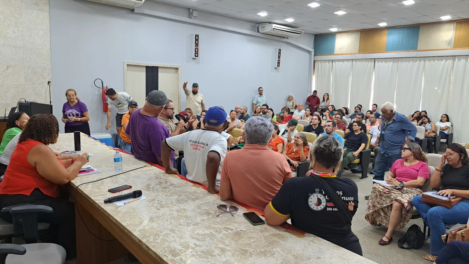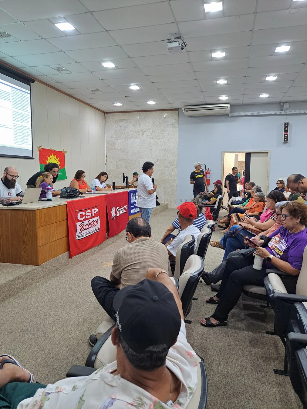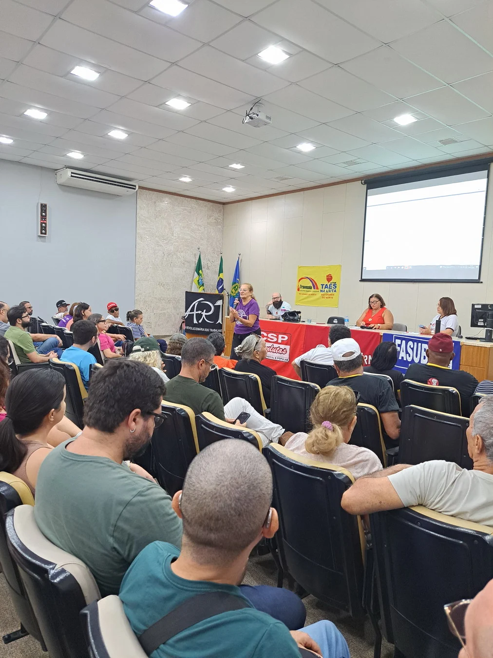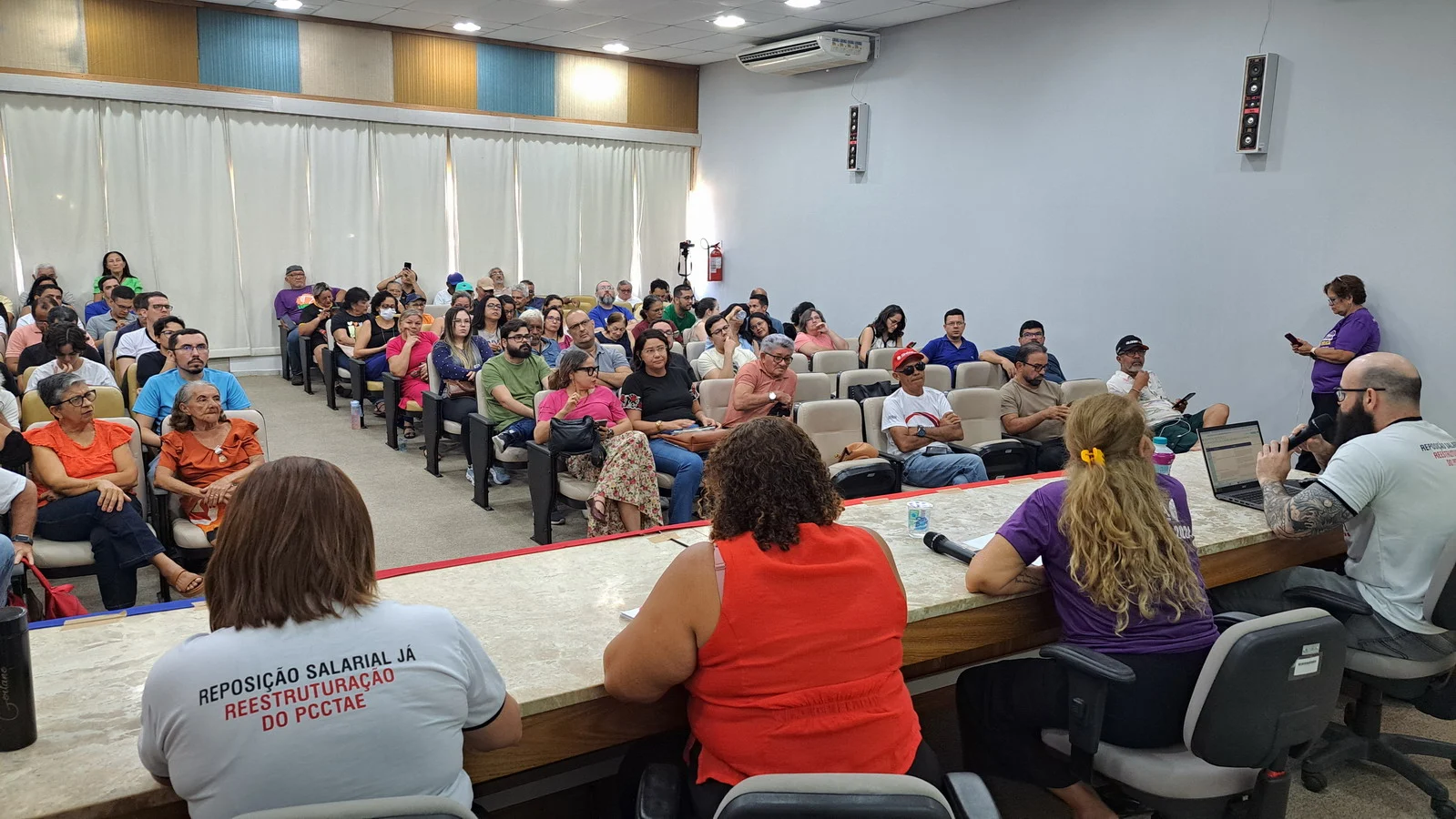 Um dos momentos centrais da assembleia foi a apresentação de Viktor Gruska, representante da CNSC/FASUBRA, que detalhou os itens do acordo não cumpridos pelo governo. Dos 29 pontos pactuados, apenas 11 foram implementados; 17 seguem sem execução. Entre eles estão medidas estruturantes da carreira e condições de trabalho. A apresentação completa está disponível em PDF.