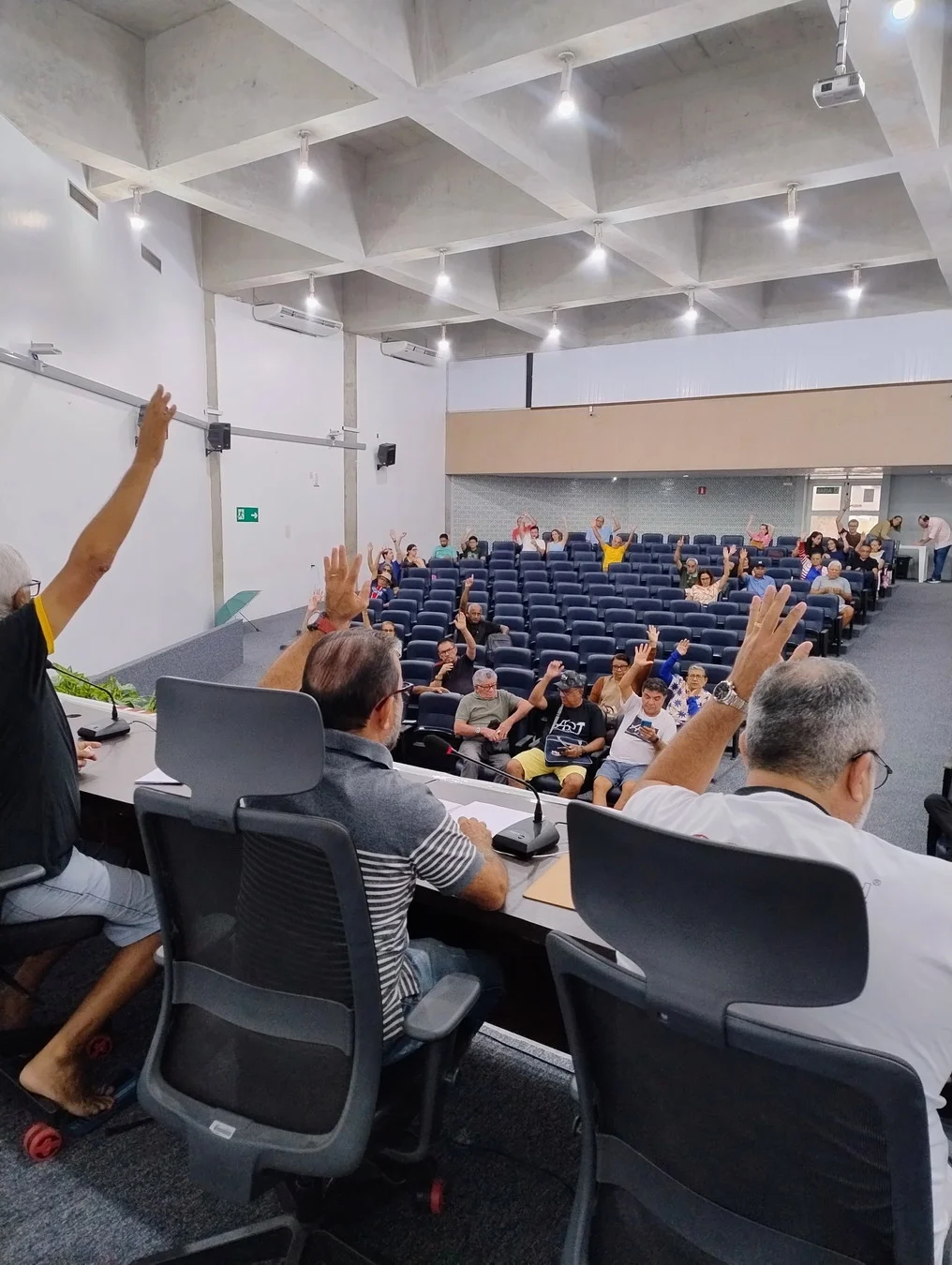 A primeira estabelece a realização das assembleias exclusivamente no auditório da Reitoria durante o período chuvoso, em razão da inviabilidade de atividades externas. A segunda trata da participação nas mobilizações em Brasília com relação à caravana que, inicialmente previa 40 participantes e foi cancelada devido a custos elevados e à baixa adesão de outras entidades. Em substituição, o CLG decidiu enviar uma delegação reduzida, composta por oito representantes, que participarão das atividades nos dias 15 e 16. Colocado em votação, a assembleia aprovou com apenas uma abstenção.