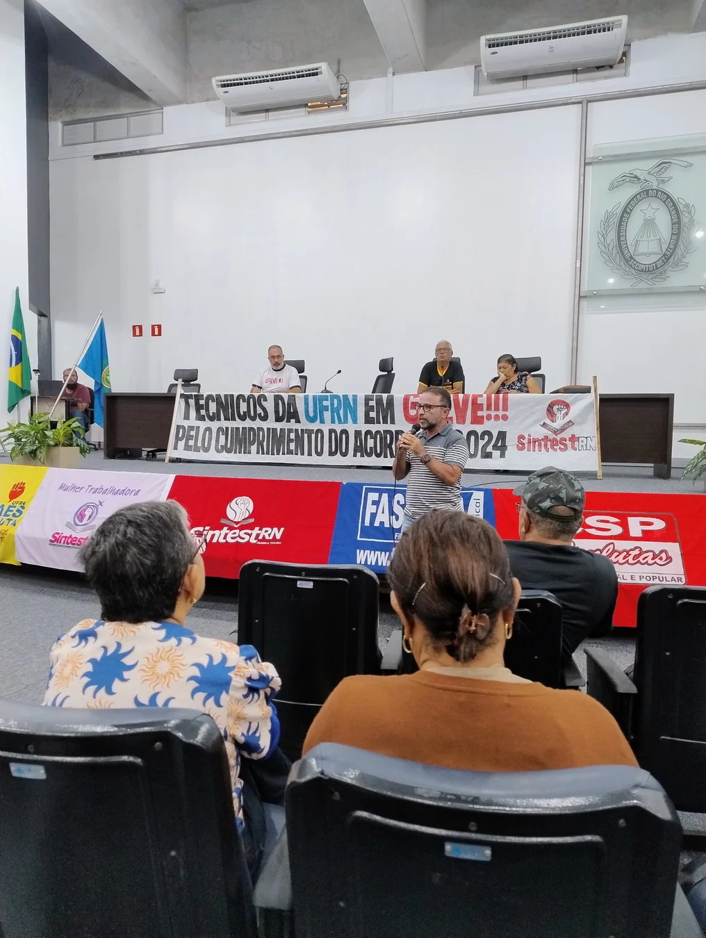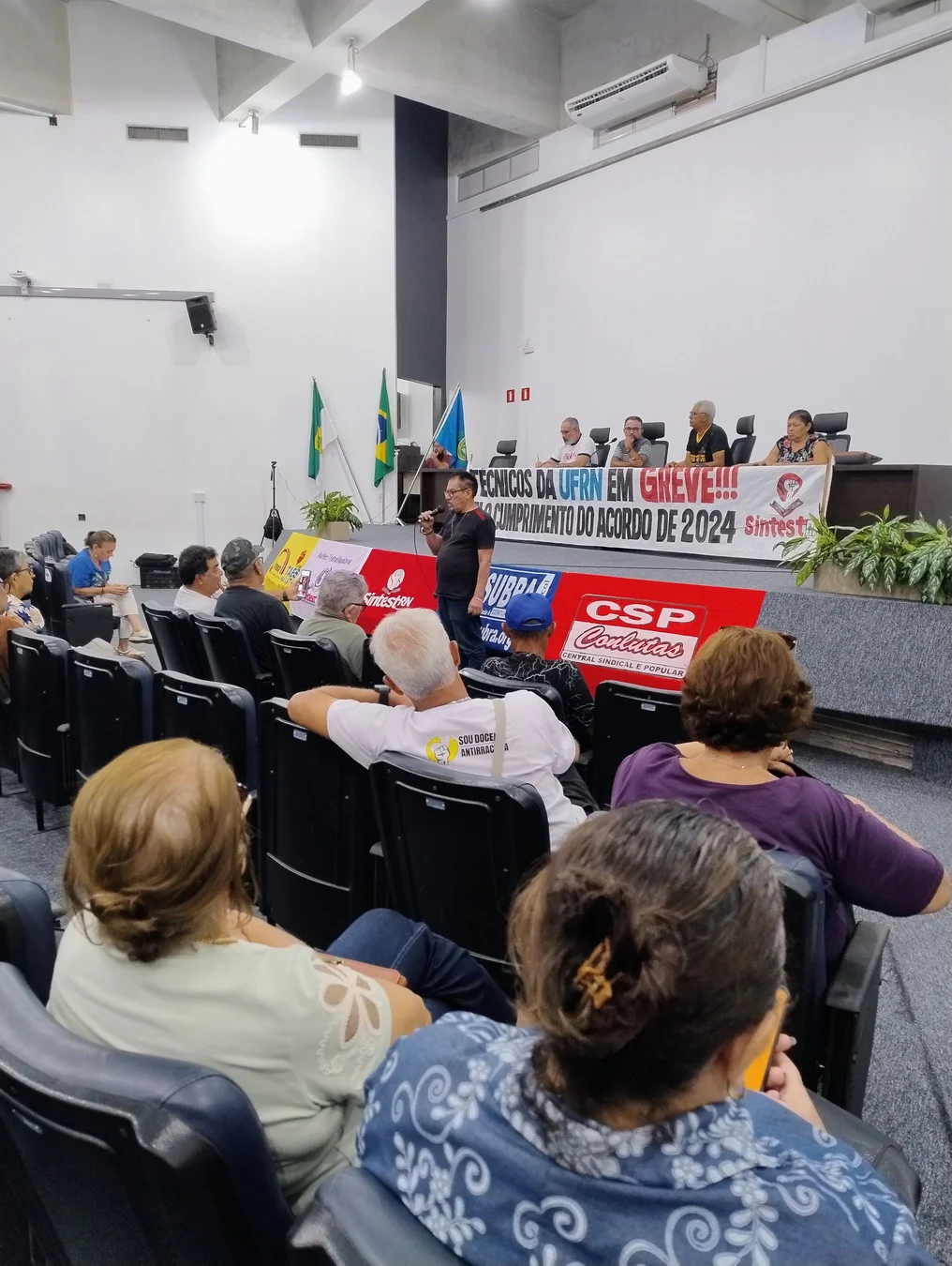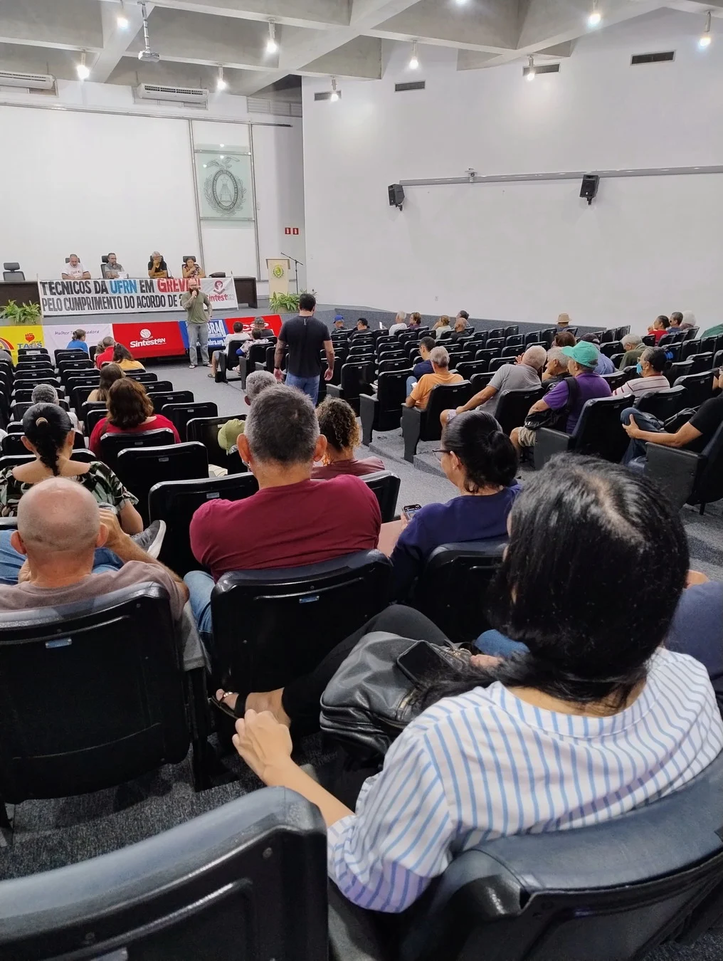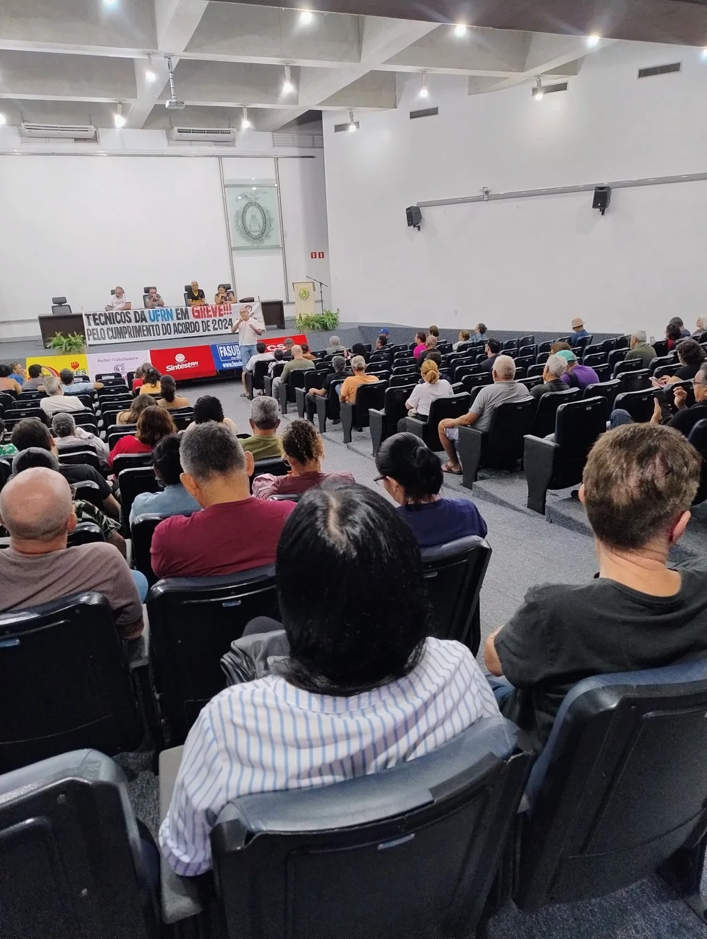 Em assembleia realizada nesta quarta-feira (15), no auditório da Reitoria da UFRN, os servidores técnico-administrativos em educação analisaram o cenário nacional da paralisação e referendaram duas deliberações do Comando Local de Greve (CLG).