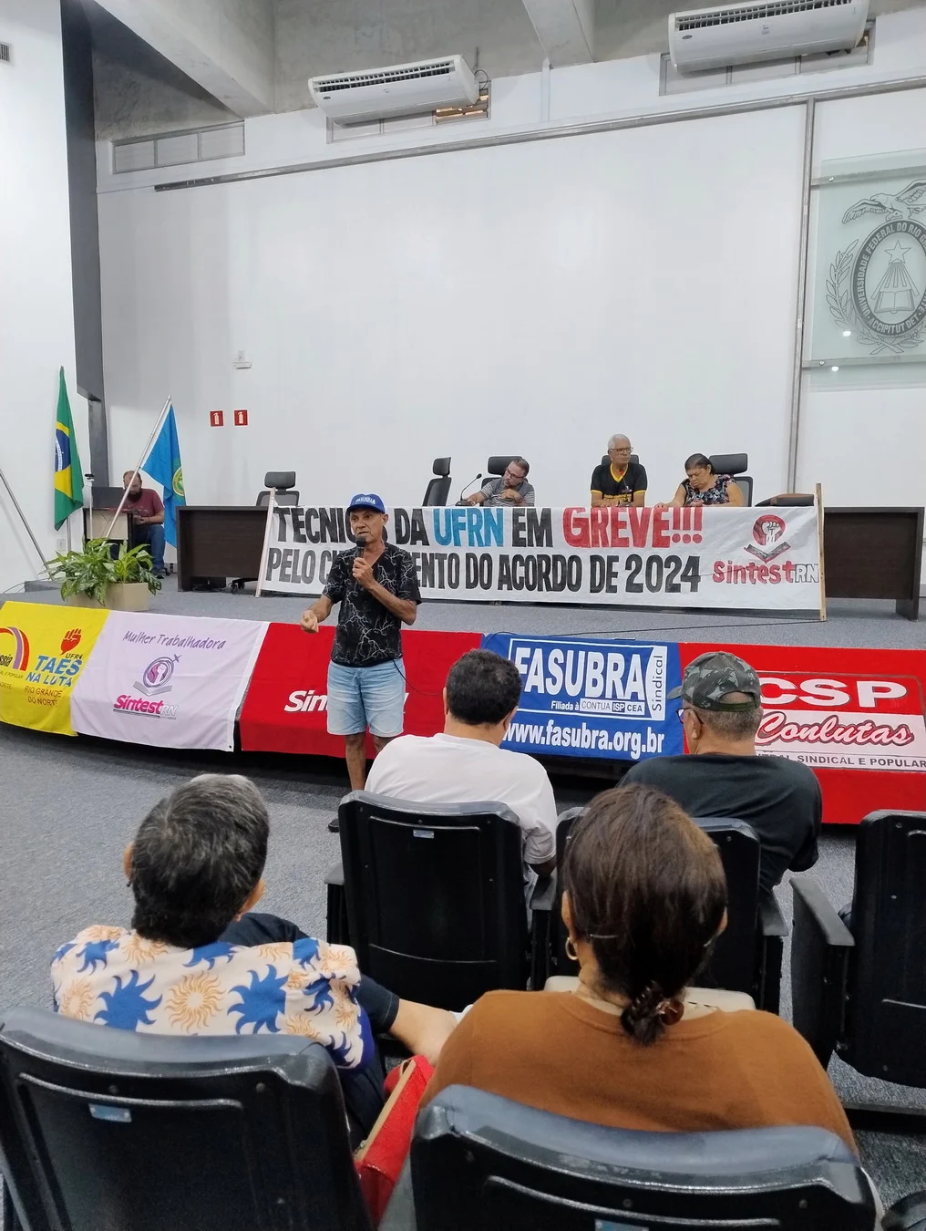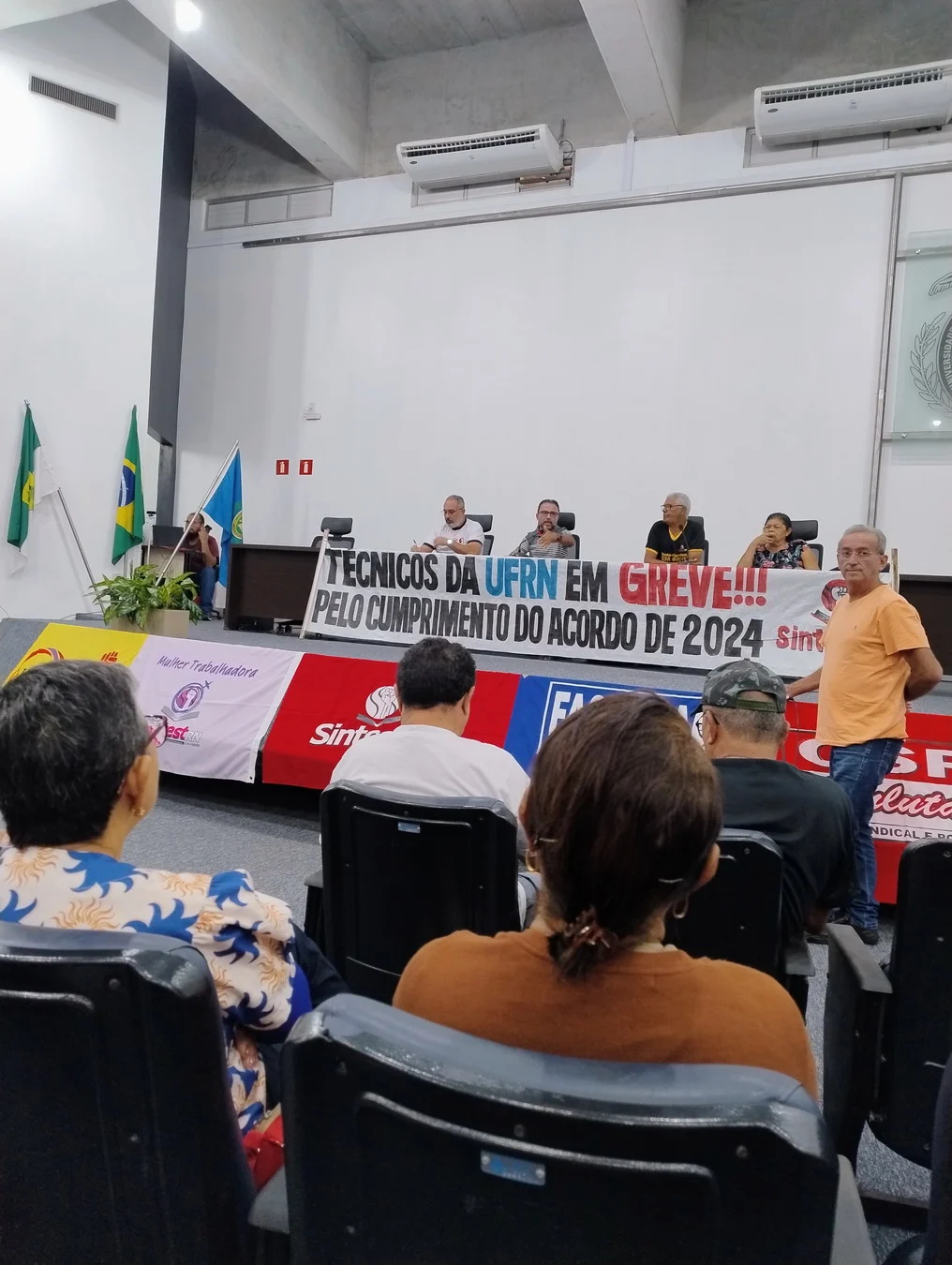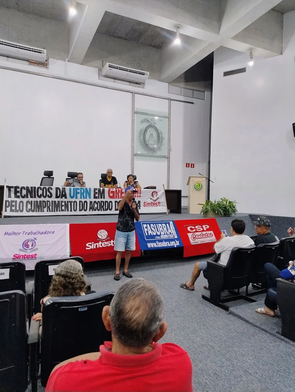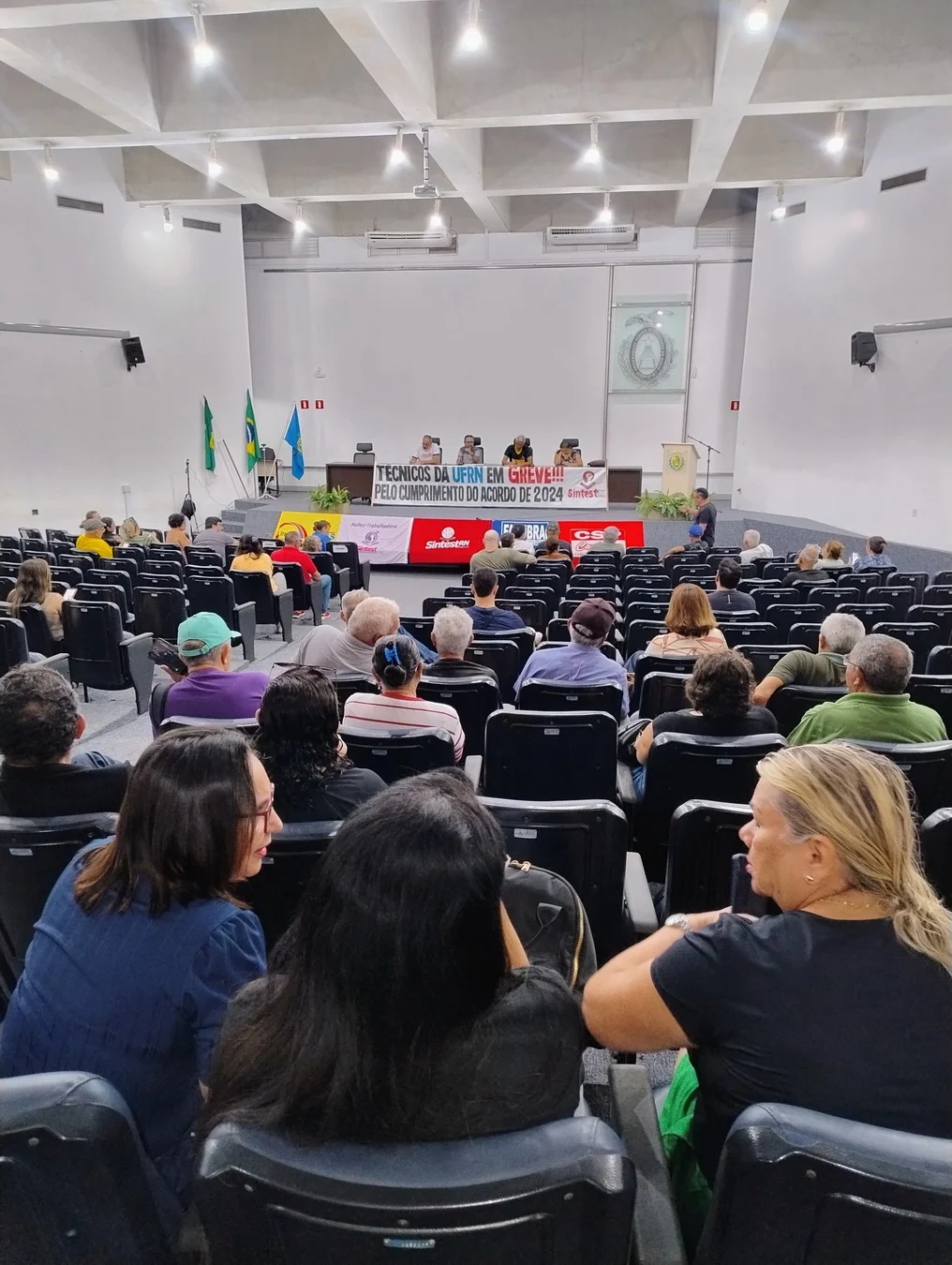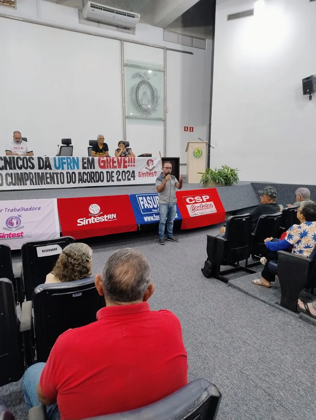 Em assembleia realizada nesta quarta-feira (15), no auditório da Reitoria da UFRN, os servidores técnico-administrativos em educação analisaram o cenário nacional da paralisação e referendaram duas deliberações do Comando Local de Greve (CLG).
