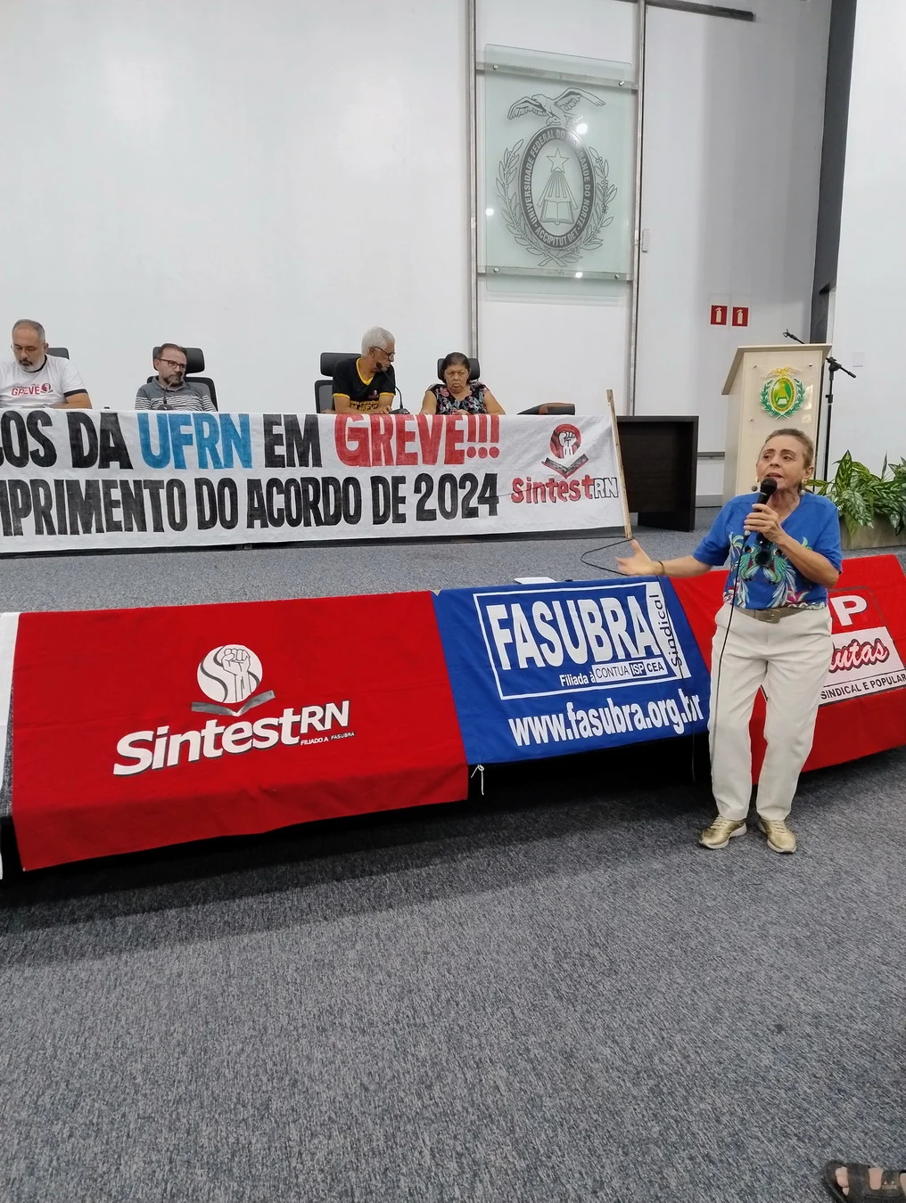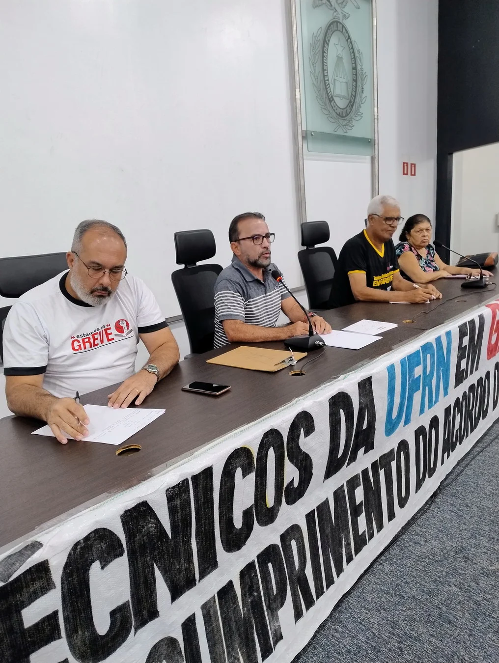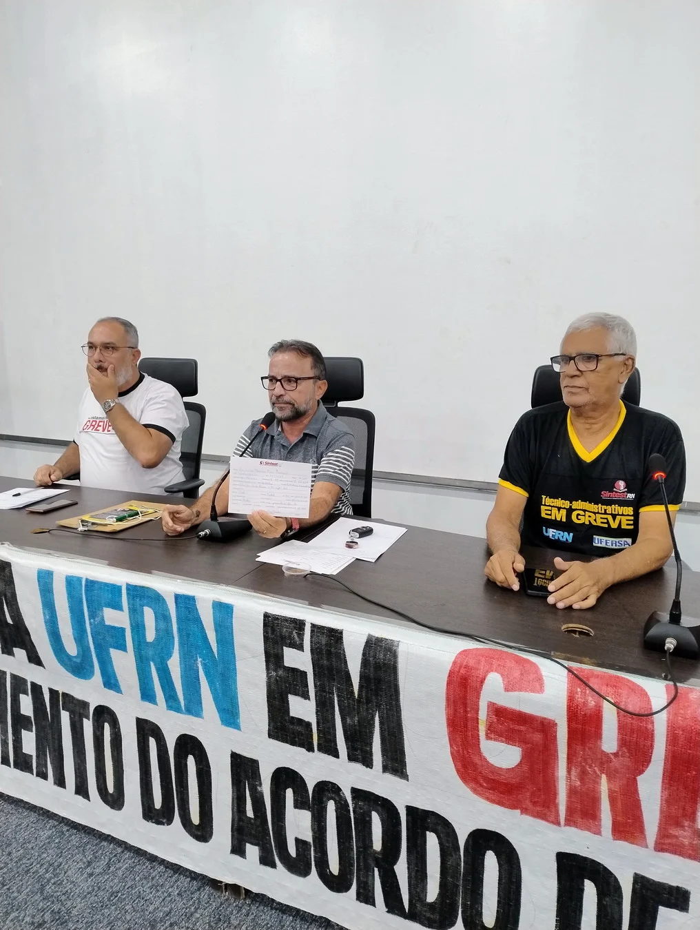 Também foi relatado sobre a reunião realizada na segunda-feira, com a gestão da UFRN, que tratou de três pontos: a atuação de bolsistas em atividades próprias dos TAEs, sendo que a gestão editará uma portaria circular orientando dirigentes de centros e departamentos de que essa prática é vedada; a ampliação da representação dos TAEs nos colegiados, com aumento de 12 vagas ( no Consad, de 3 para 7 representantes; no Consepe, de 2 para 8; e no Consuni, de 4 para 6) totalizando crescimento de 133%. A proposta já foi aceita pelo Reitor Daniel Diniz, que alinhará o tema com os diretores de centros e o submeterá ao Consuni para aprovação, com posterior realização de eleições para preenchimento das vagas nos Conselhos Superiores; e, por fim, a situação do PGD durante a greve, em que a gestão acatou que a pontuação de avaliação dos servidores em greve não será zerada, permanecendo em branco, nos mesmos moldes do período de férias.