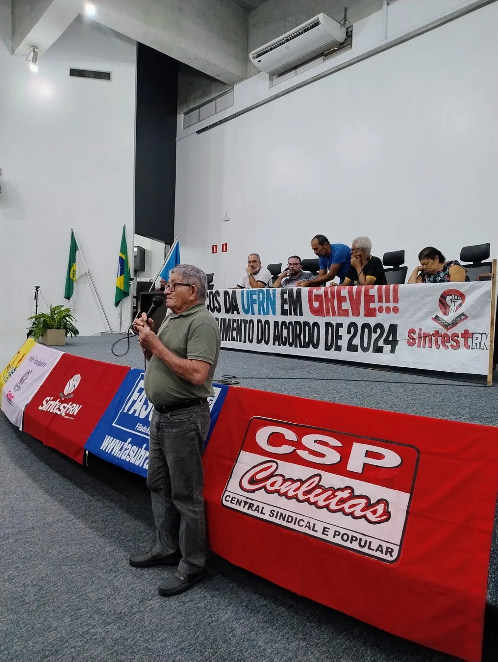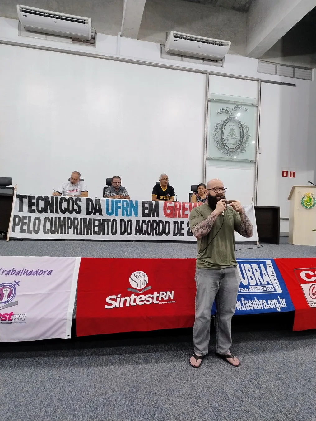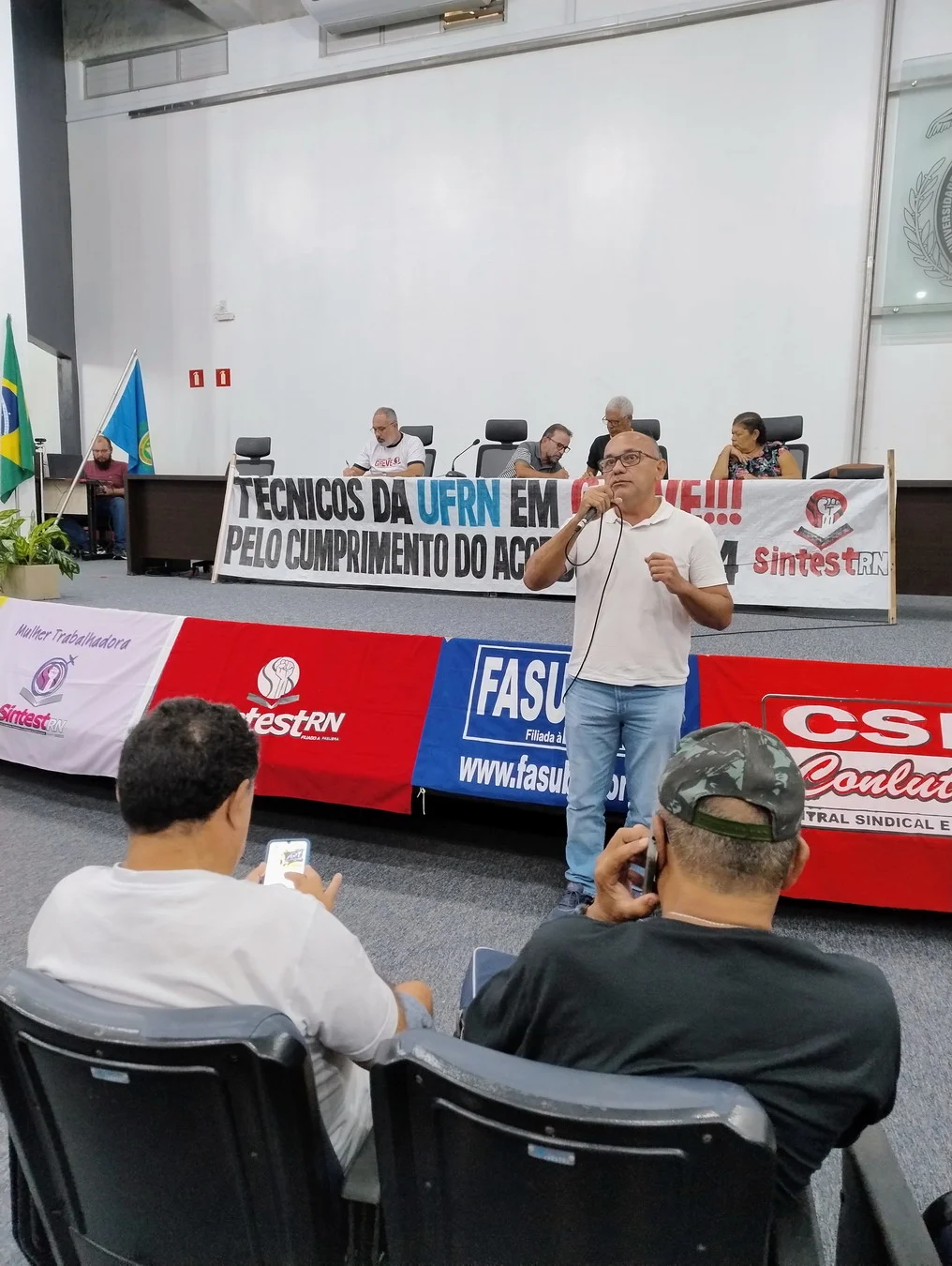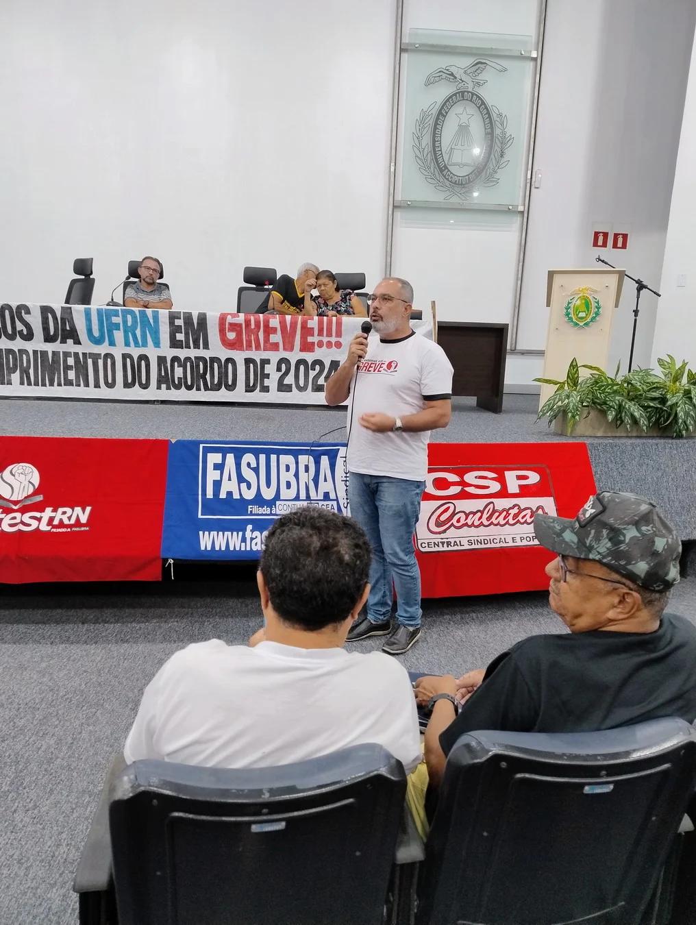Também foi relatado sobre a reunião realizada na segunda-feira, com a gestão da UFRN, que tratou de três pontos: a atuação de bolsistas em atividades próprias dos TAEs, sendo que a gestão editará uma portaria circular orientando dirigentes de centros e departamentos de que essa prática é vedada; a ampliação da representação dos TAEs nos colegiados, com aumento de 12 vagas ( no Consad, de 3 para 7 representantes; no Consepe, de 2 para 8; e no Consuni, de 4 para 6) totalizando crescimento de 133%. A proposta já foi aceita pelo Reitor Daniel Diniz, que alinhará o tema com os diretores de centros e o submeterá ao Consuni para aprovação, com posterior realização de eleições para preenchimento das vagas nos Conselhos Superiores; e, por fim, a situação do PGD durante a greve, em que a gestão acatou que a pontuação de avaliação dos servidores em greve não será zerada, permanecendo em branco, nos mesmos moldes do período de férias.
