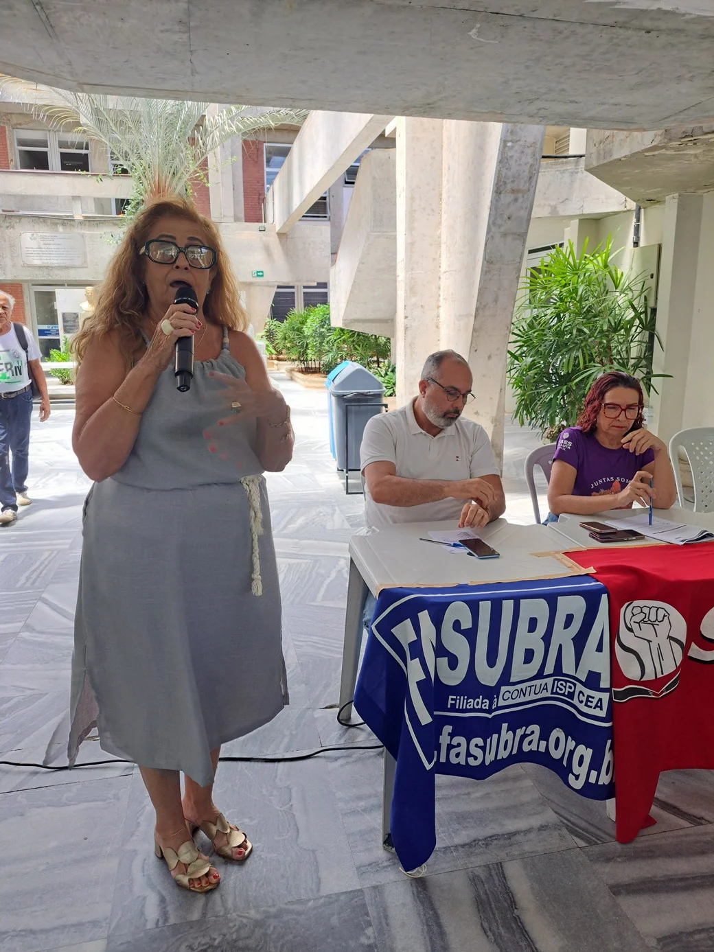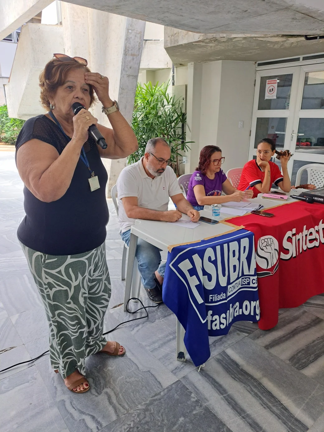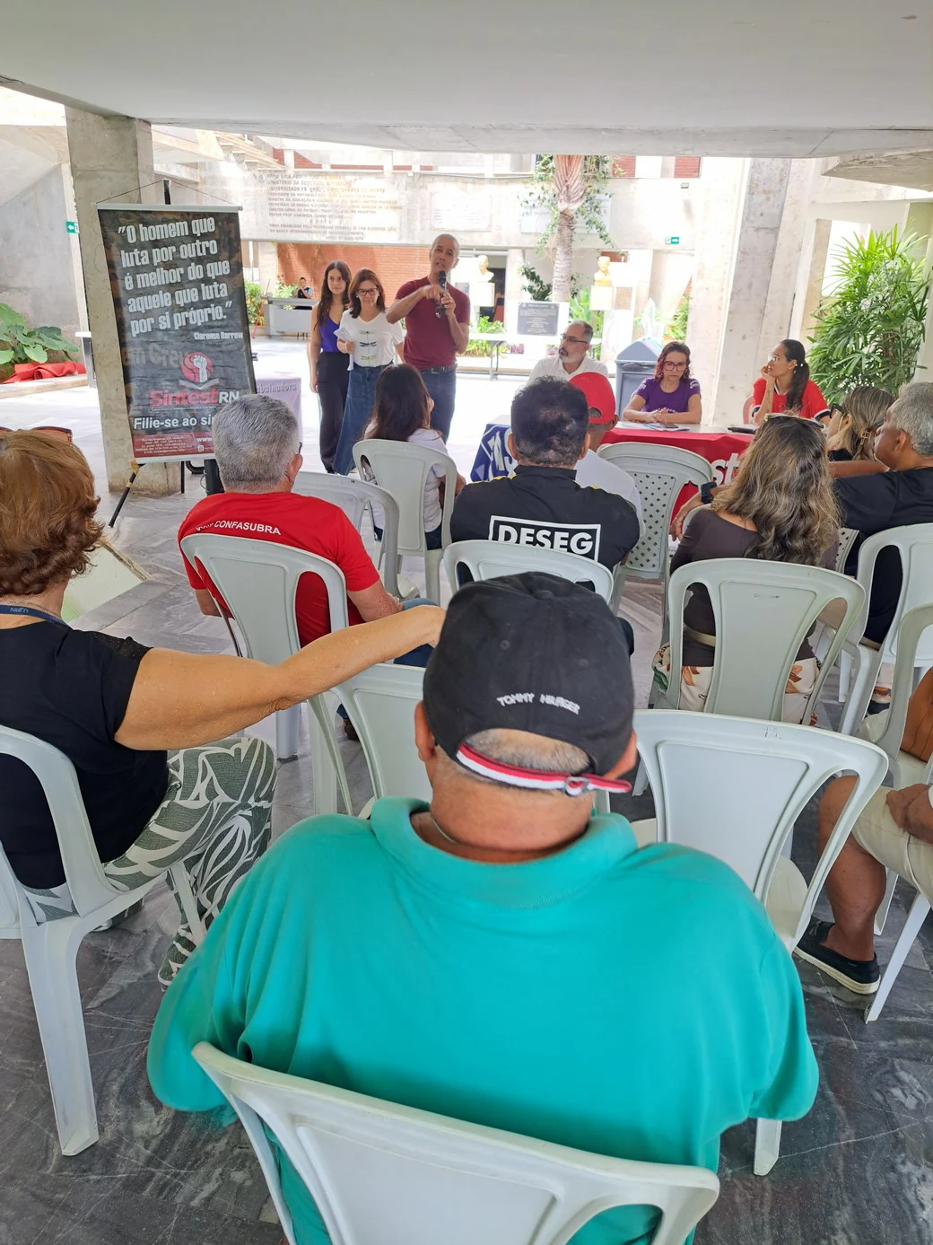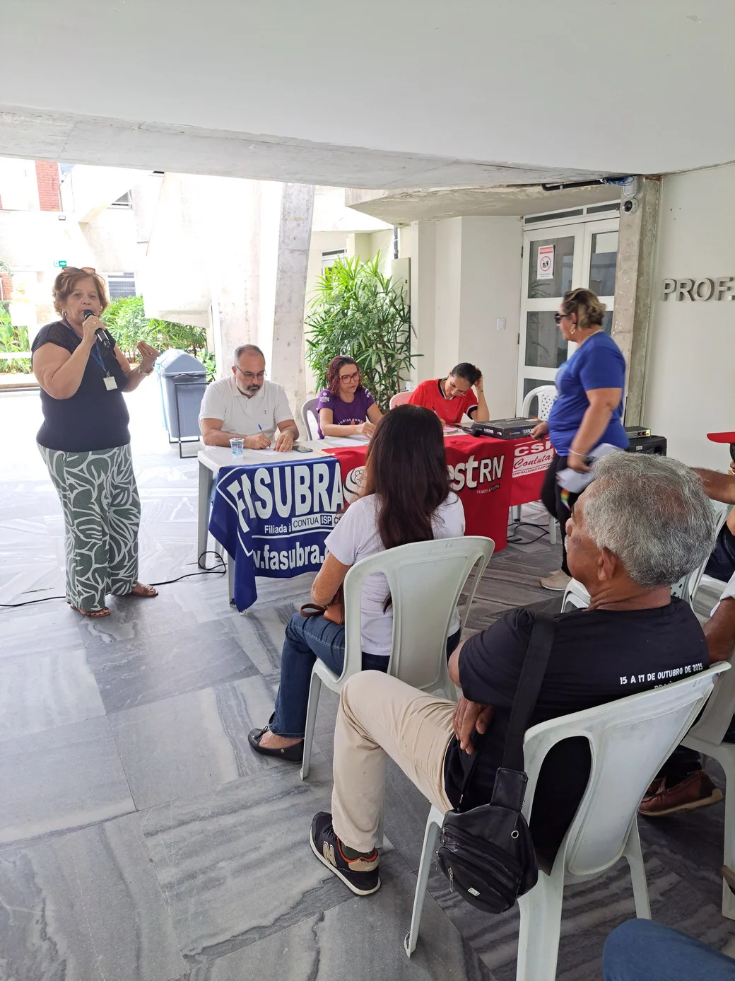O SINTEST-RN realizou, em 26 de novembro, no hall da Reitoria, uma assembleia decisiva para ajustar o calendário de lutas e definir os encaminhamentos da paralisação convocada pela FASUBRA. A mesa foi composta por Celita Pessoa, Coordenadora Geral, Érika Galvão, Coordenadora de Administração e Patrimônio, e Wellington Soares, Coordenador jurídico.