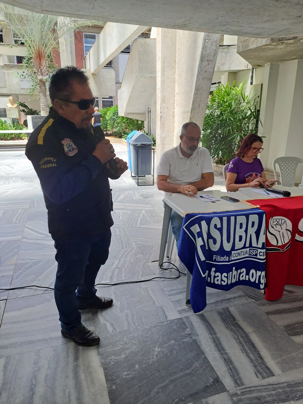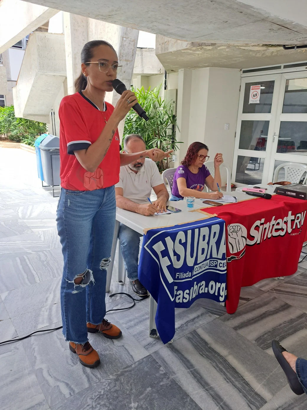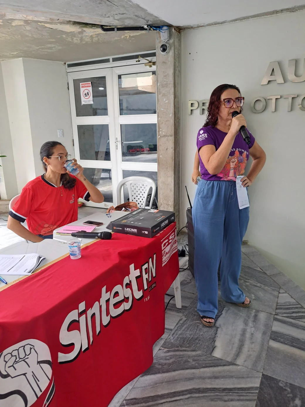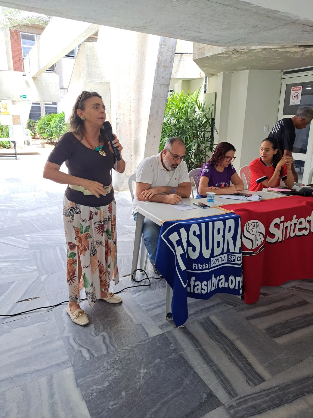 O SINTEST-RN realizou, em 26 de novembro, no hall da Reitoria, uma assembleia decisiva para ajustar o calendário de lutas e definir os encaminhamentos da paralisação convocada pela FASUBRA. A mesa foi composta por Celita Pessoa, Coordenadora Geral, Érika Galvão, Coordenadora de Administração e Patrimônio, e Wellington Soares, Coordenador jurídico.