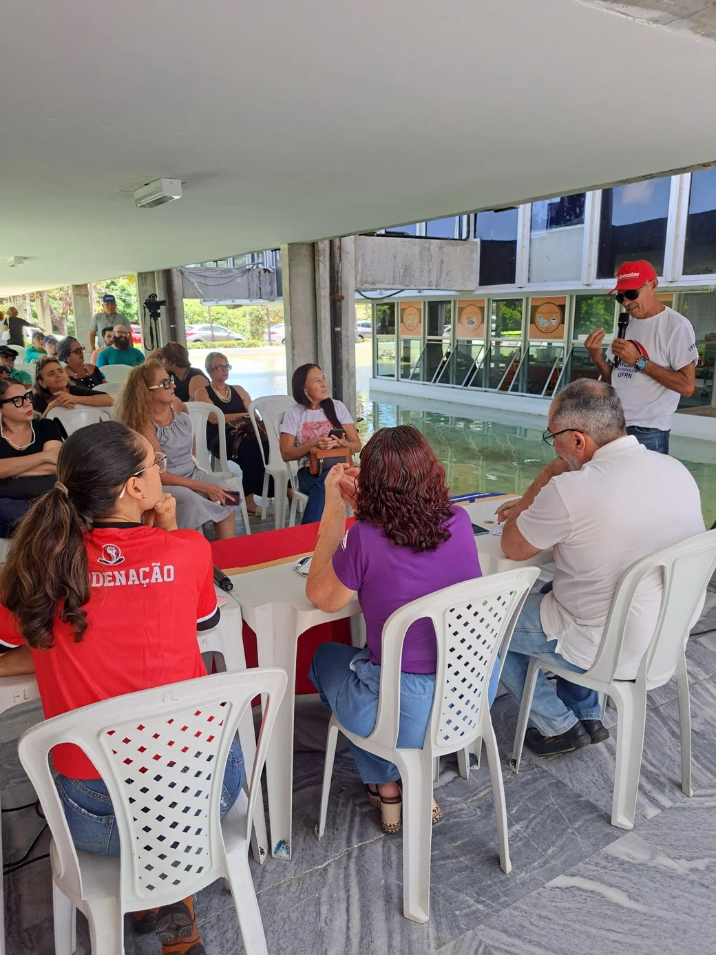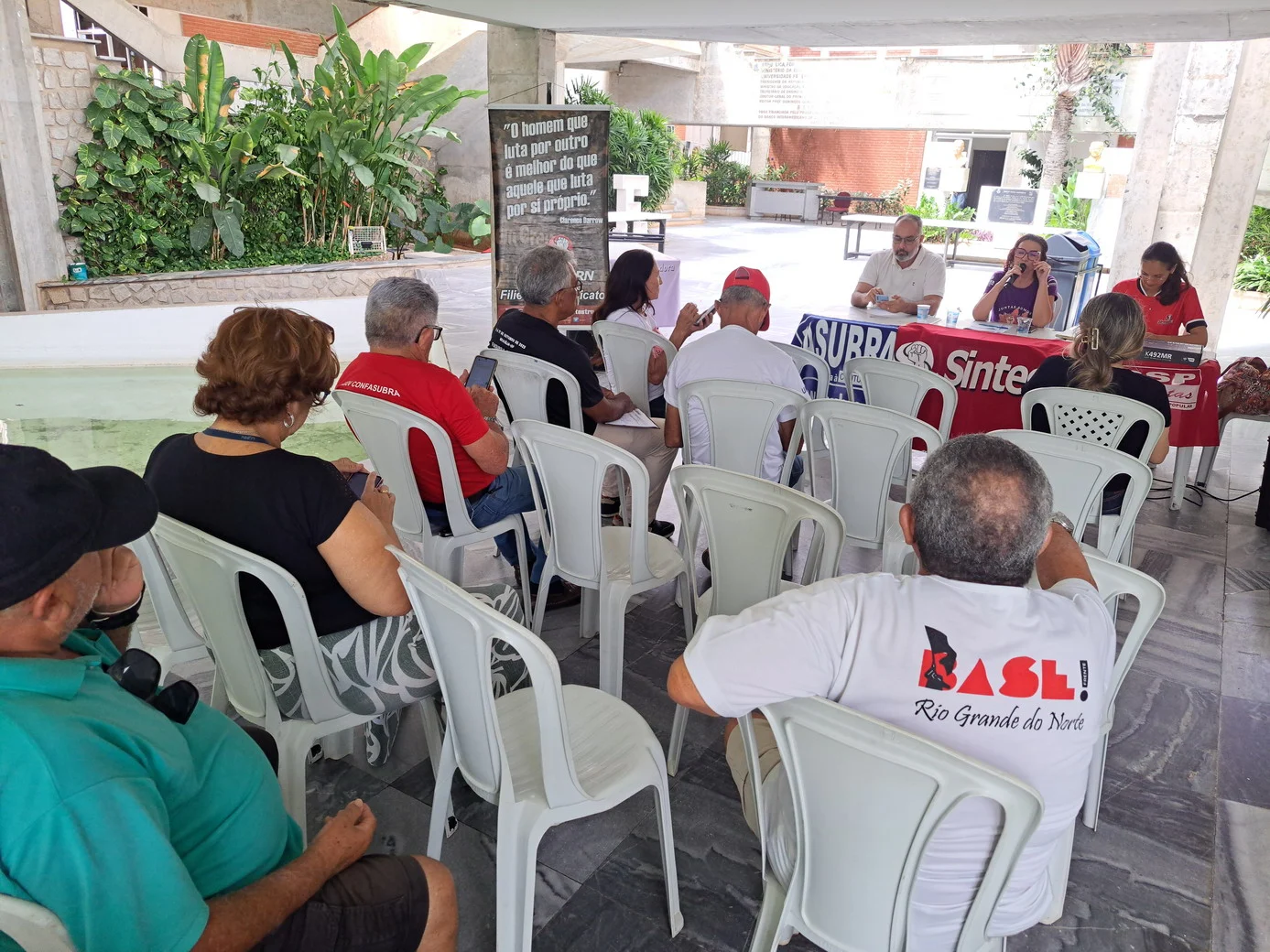 Os debates giraram em torno da conjuntura nacional, marcada pela avaliação da prisão do Bolsonaro como um avanço para a democracia do país e pela crescente preocupação com o avanço da Reforma Administrativa. Também entrou em pauta o indicativo de greve, aprovado na última plenária da federação, para 9 de março de 2026, decisão que gerou divergência sobre seu propósito e possíveis efeitos no calendário interno, como o adiamento do Confasubra. Discutiu-se ainda a articulação entre RN, Paraíba e Pernambuco para um ato regional no dia 4 de dezembro, voltado ao enfrentamento da PEC 38.