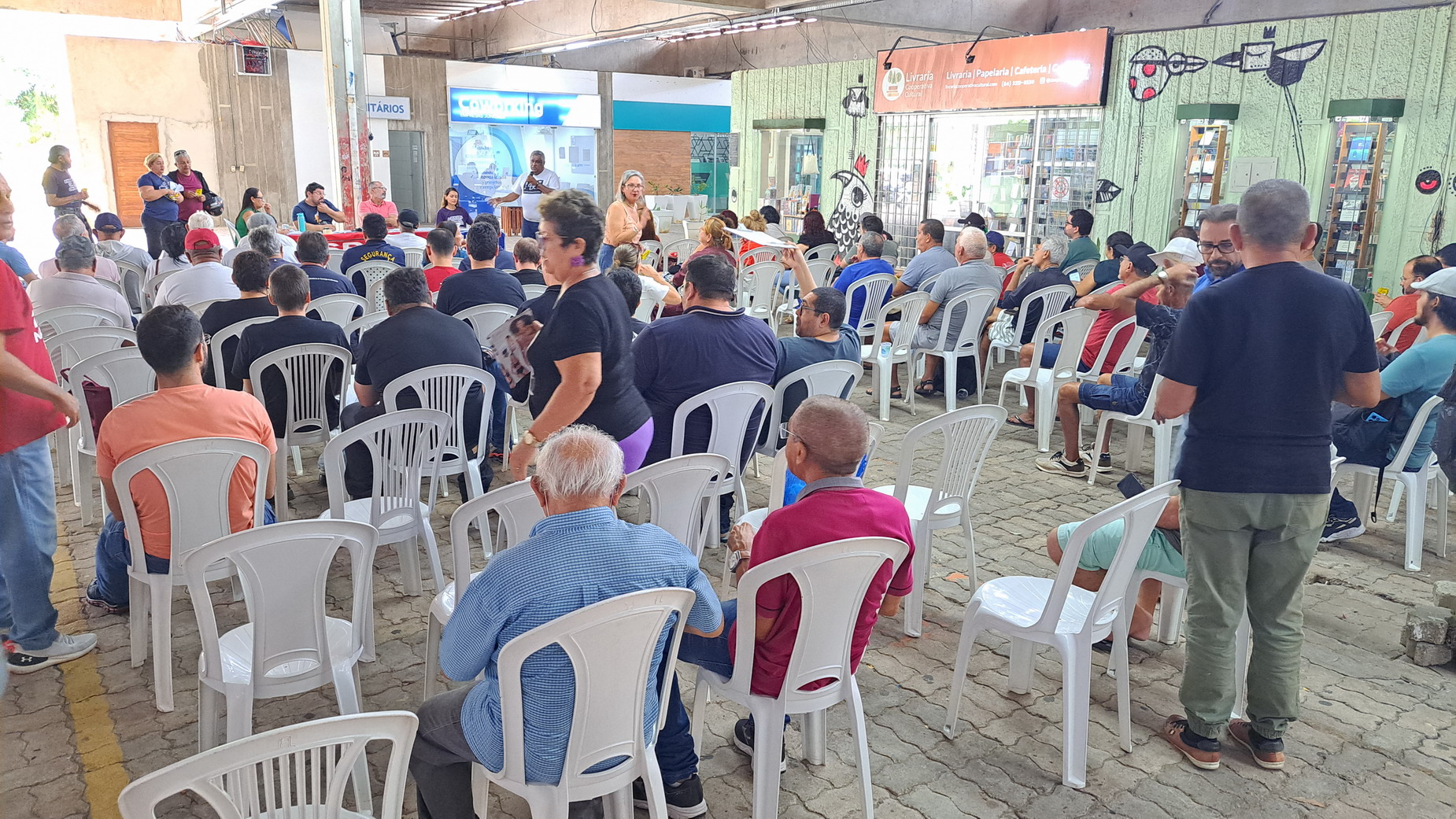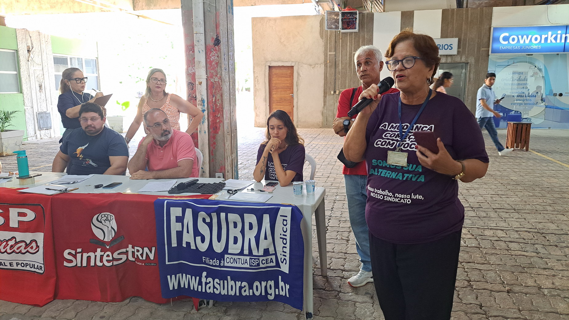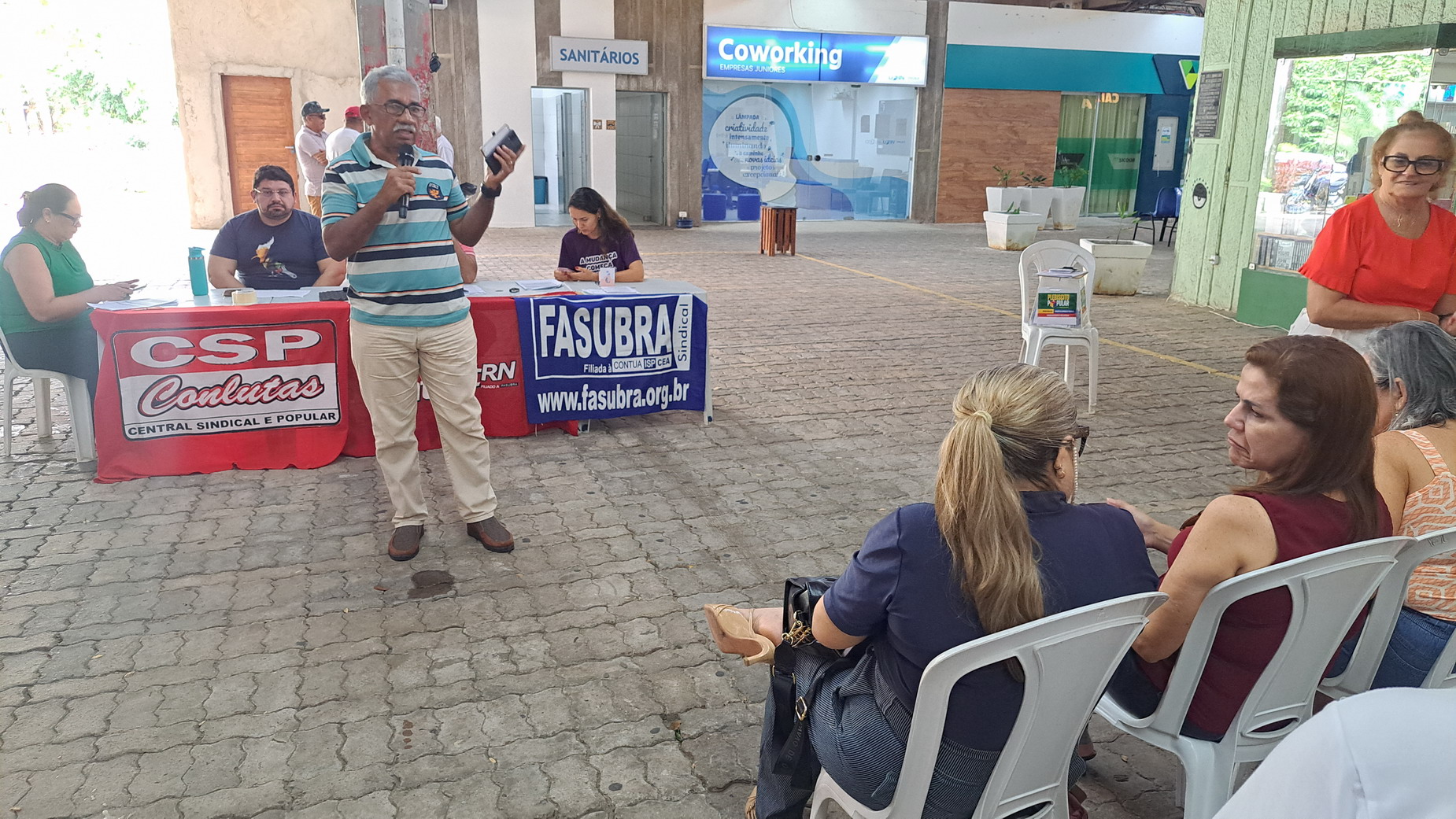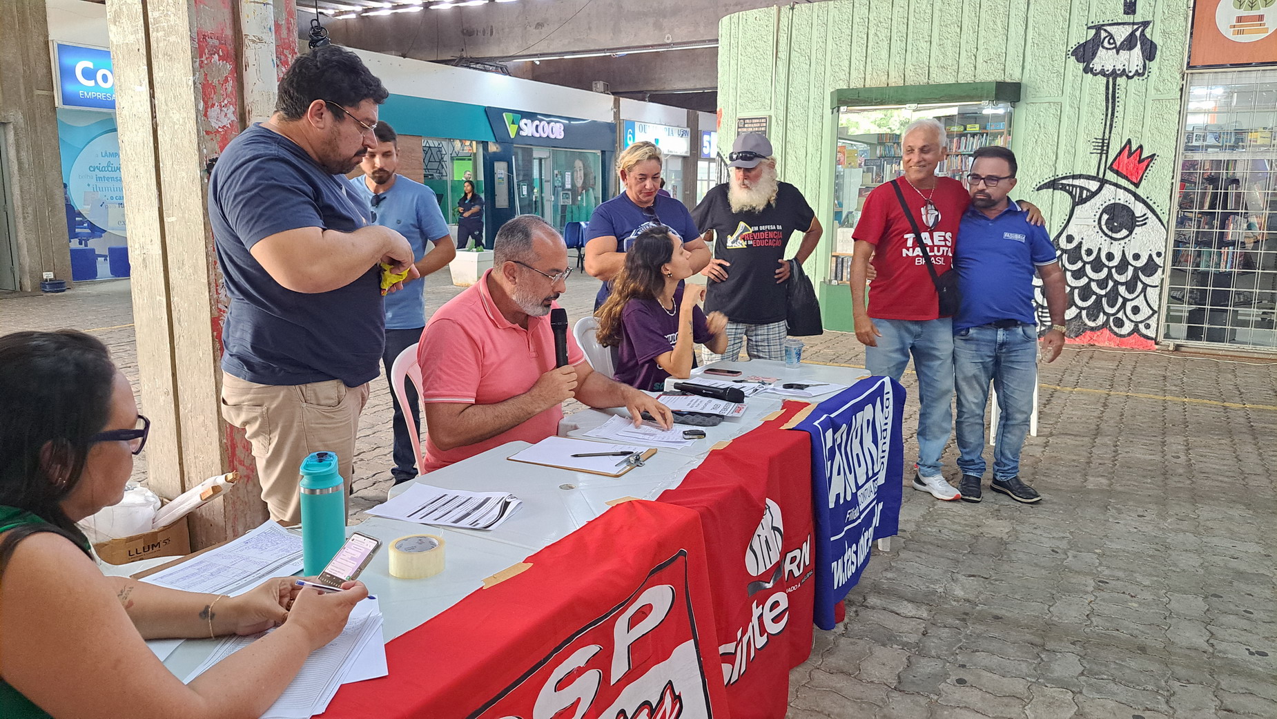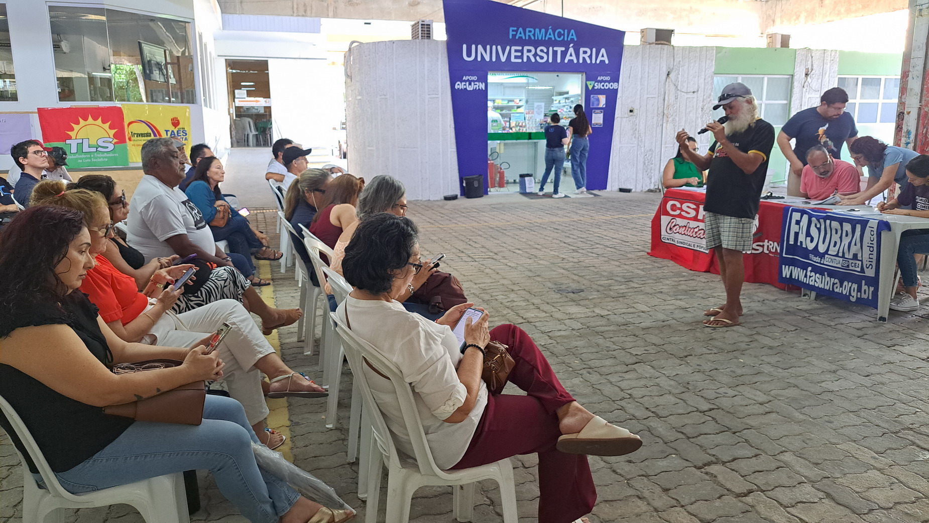 Na manhã desta quarta-feira, 06 de agosto, servidoras e servidores técnico-administrativos da UFRN participaram de mais uma Assembleia Geral convocada pelo SINTEST-RN, realizada no Centro de Convivência da universidade. A atividade foi marcada por uma série de debates sobre a conjuntura política nacional, defesa dos serviços públicos e dos direitos sociais, além da eleição de delegados para a Plenária da FASUBRA.