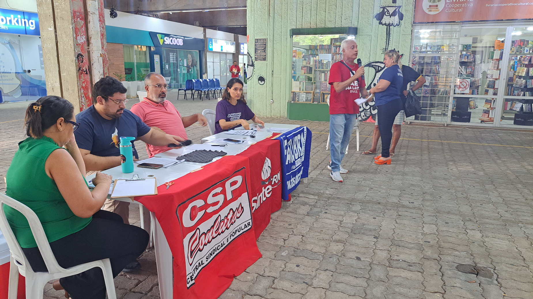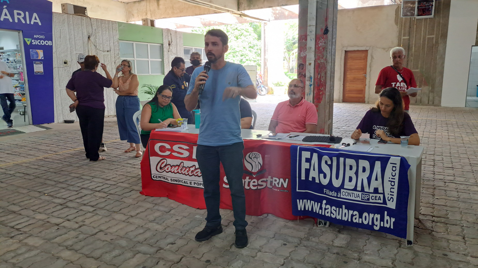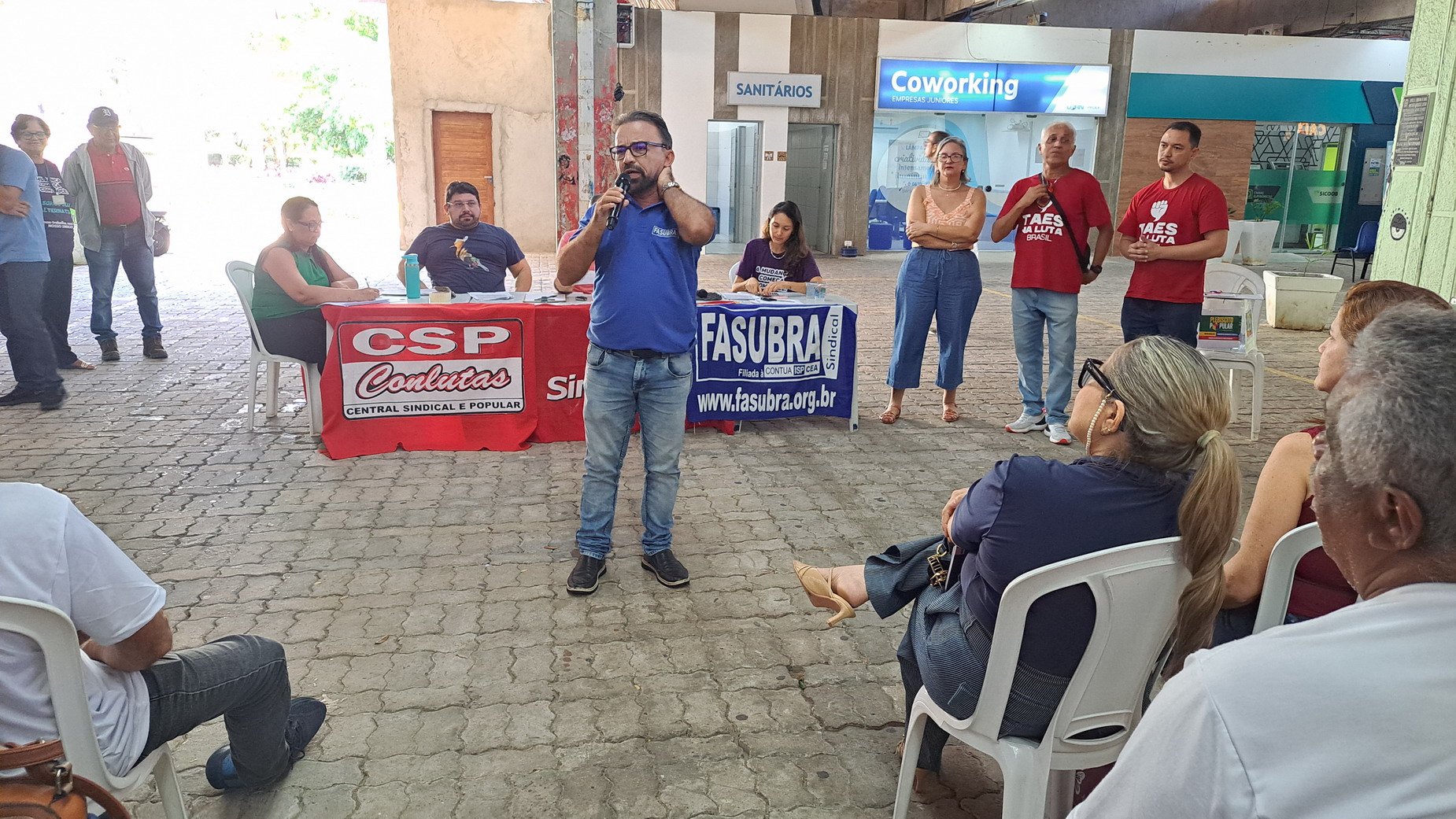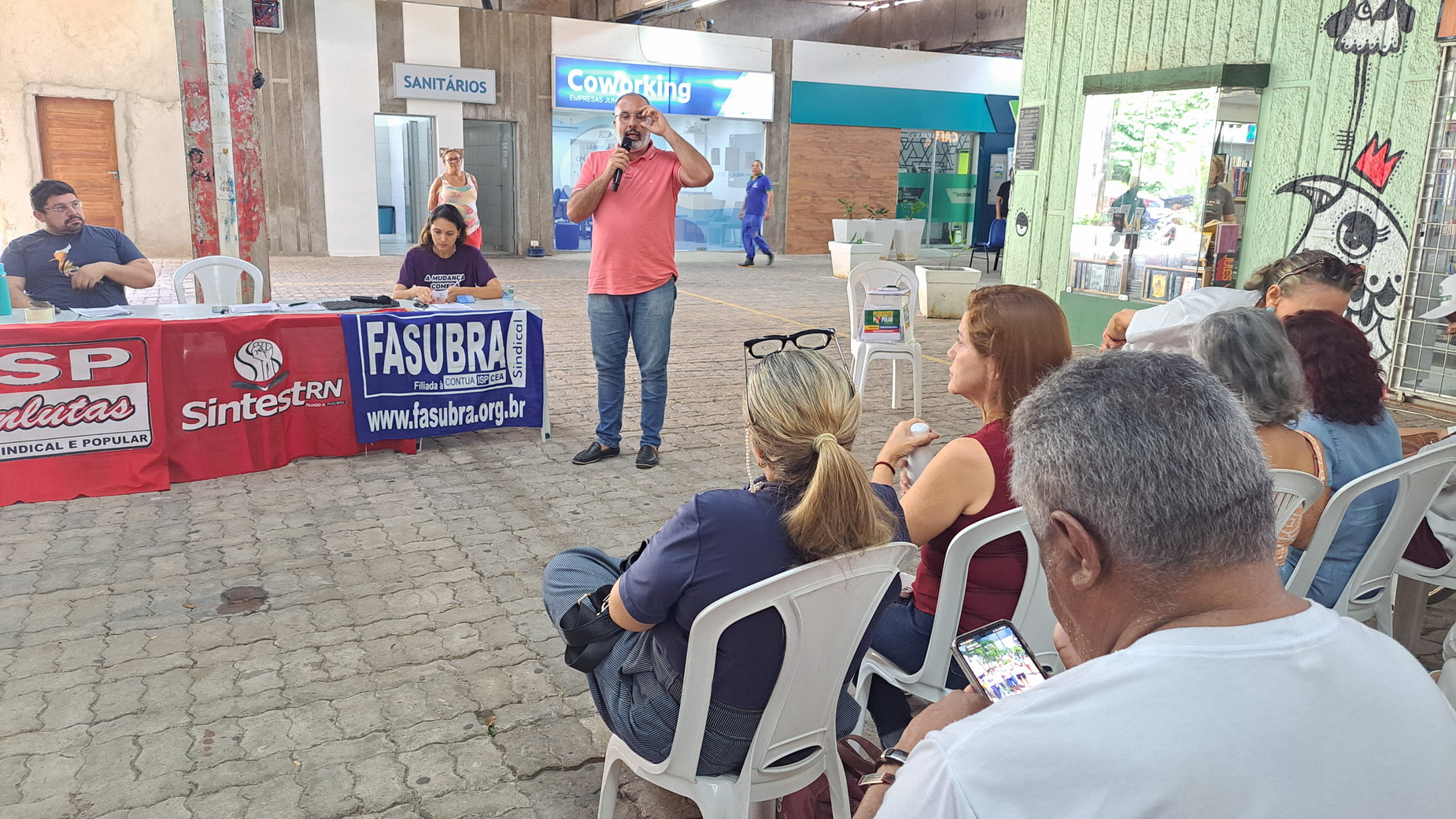 Na manhã desta quarta-feira, 06 de agosto, servidoras e servidores técnico-administrativos da UFRN participaram de mais uma Assembleia Geral convocada pelo SINTEST-RN, realizada no Centro de Convivência da universidade. A atividade foi marcada por uma série de debates sobre a conjuntura política nacional, defesa dos serviços públicos e dos direitos sociais, além da eleição de delegados para a Plenária da FASUBRA.