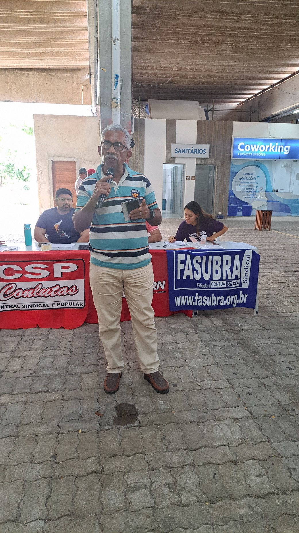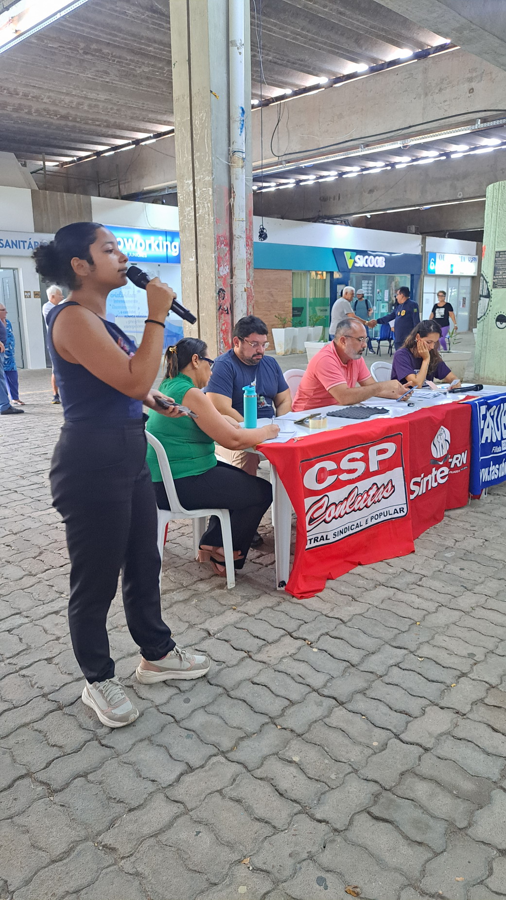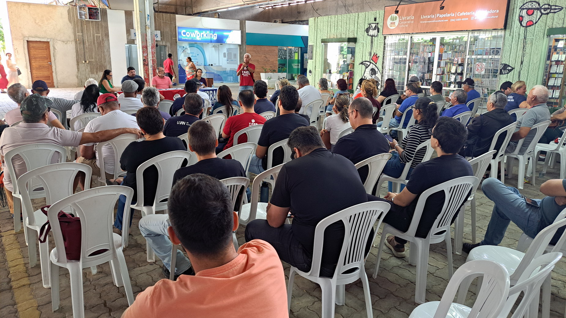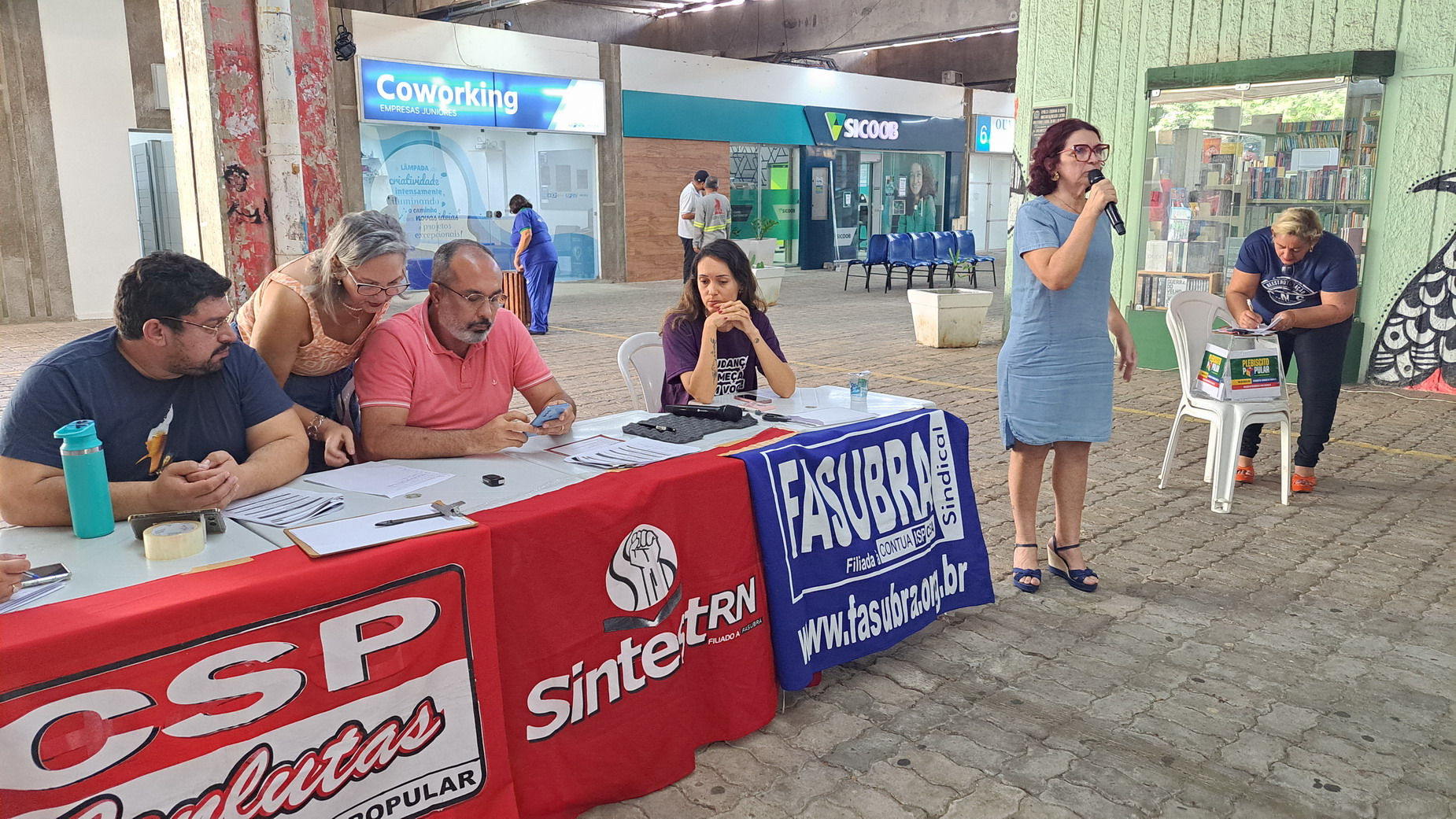 Na manhã desta quarta-feira, 06 de agosto, servidoras e servidores técnico-administrativos da UFRN participaram de mais uma Assembleia Geral convocada pelo SINTEST-RN, realizada no Centro de Convivência da universidade. A atividade foi marcada por uma série de debates sobre a conjuntura política nacional, defesa dos serviços públicos e dos direitos sociais, além da eleição de delegados para a Plenária da FASUBRA.