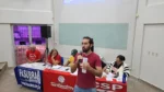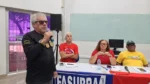 Compuseram a mesa os coordenadores gerais do sindicato, Aparecida Dantas e Edson Lima, além da coordenadora de políticas sociais, raças, diversidades e etnias, Claudiane Vasconcelos, a coordenadora de integração e política sindical, Mariza Pereira e o coordenador da Fasubra, Roberto Luiz.