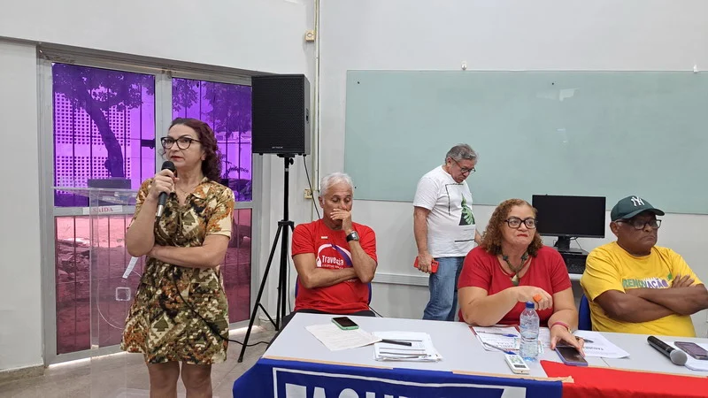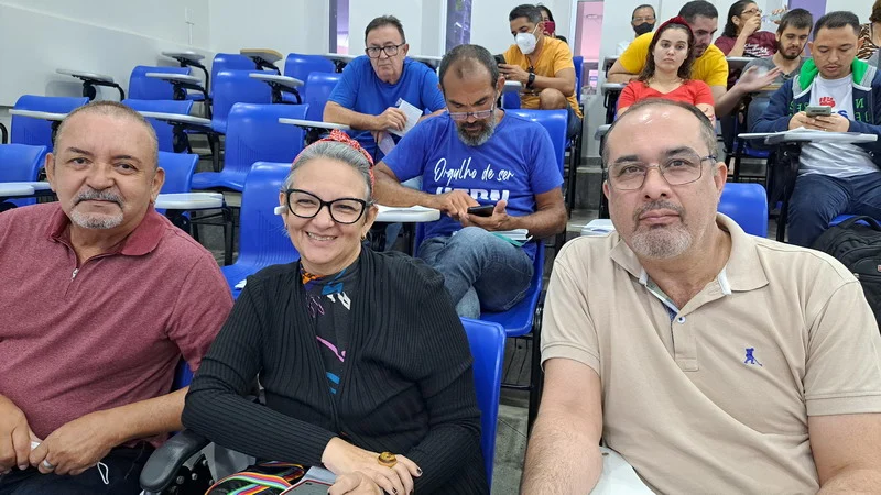 Compuseram a mesa os coordenadores gerais do sindicato, Aparecida Dantas e Edson Lima, além da coordenadora de políticas sociais, raças, diversidades e etnias, Claudiane Vasconcelos, a coordenadora de integração e política sindical, Mariza Pereira e o coordenador da Fasubra, Roberto Luiz.