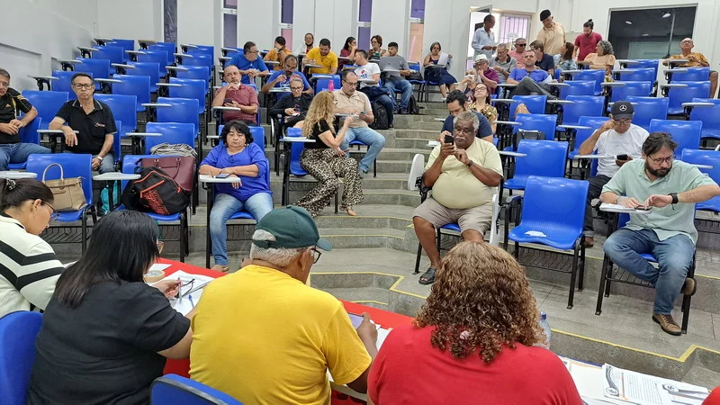 Durante as intervenções na avaliação da conjuntura, colegas da base e da direção ressaltaram a importância de lutar contra o arcabouço fiscal, sendo ele o maior entrave para avançar nas pautas dos servidores públicos, como a reestruturação da carreira, bem como reajuste salarial.