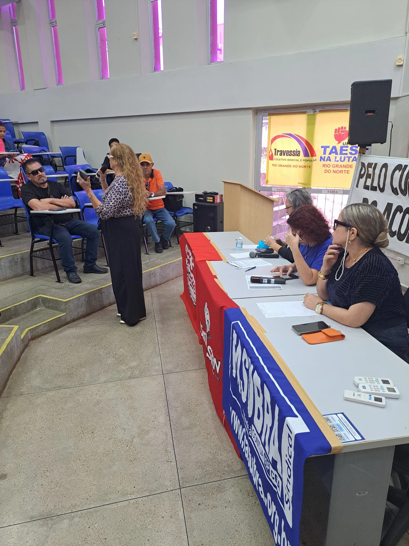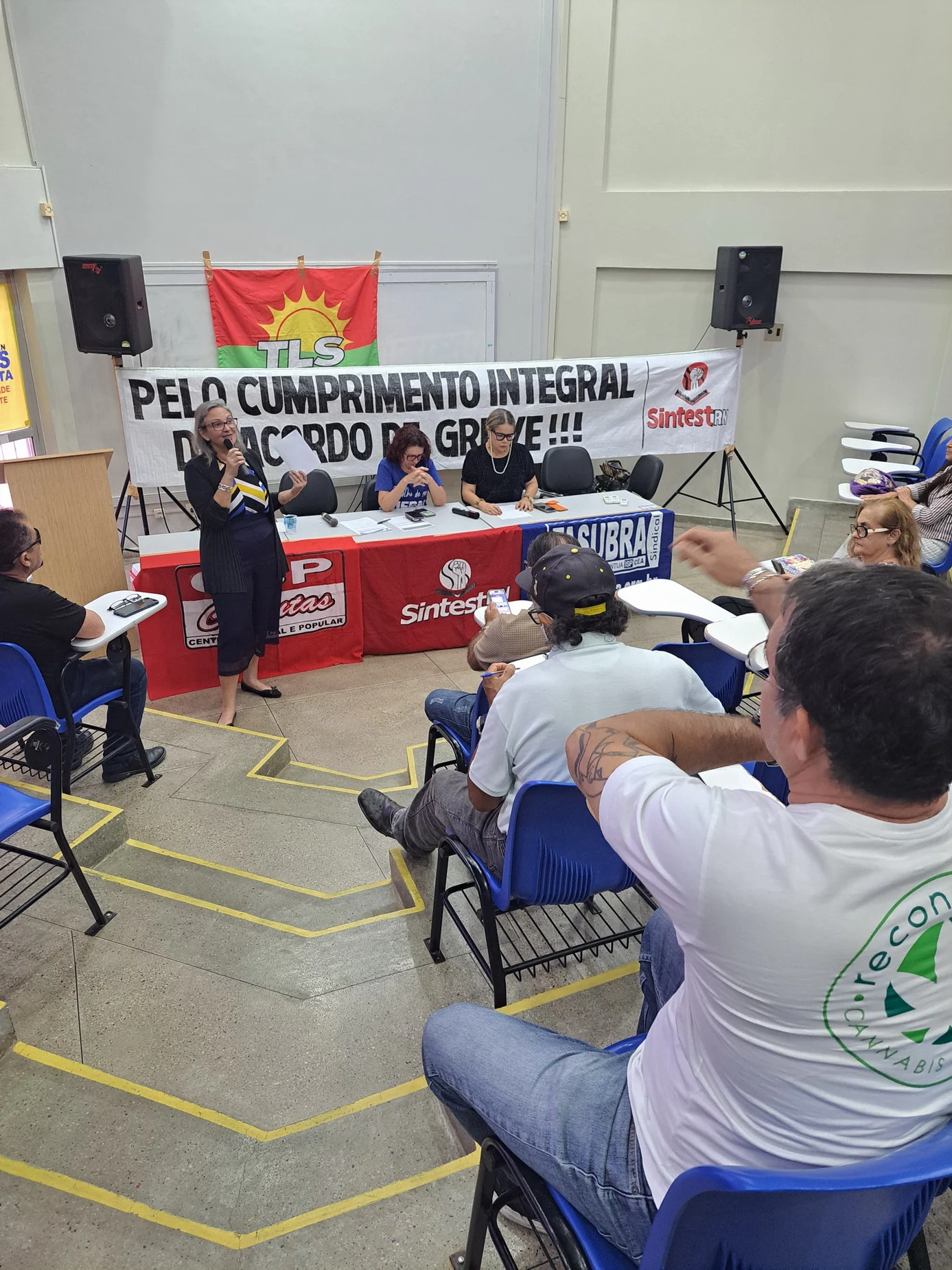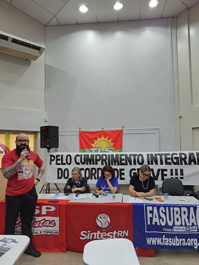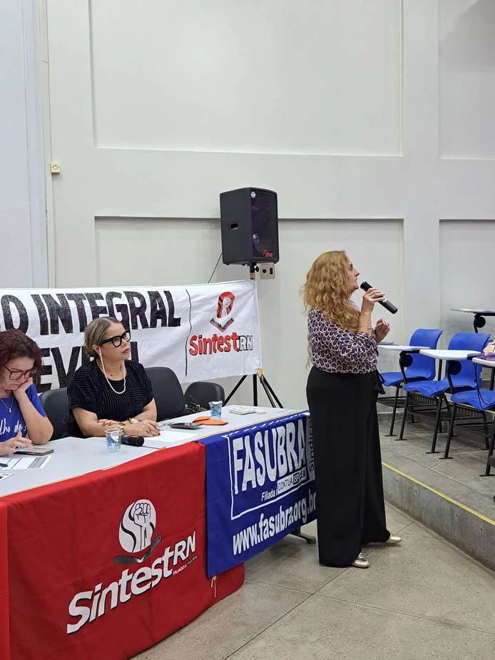 Outros informes abordaram temas como a luta pelo fim da violência contra as mulheres, haja vista os casos recentes de feminicídio no Rio Grande do Norte, e a denúncia do genocídio em curso na Palestina com um convite à categoria para participar do ato “Palestina Livre” no dia 13 de setembro, às 14h30, em frente ao Midway Mall.