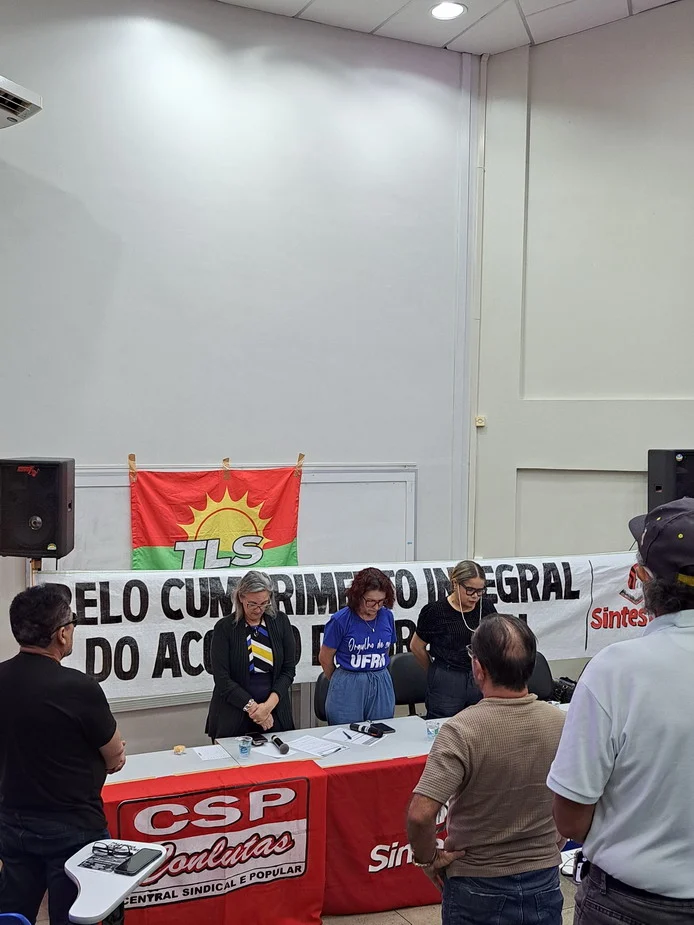 Antes da avaliação de conjuntura, a assembleia realizou um minuto de silêncio pelo falecimento do servidor Octávio Carvalho de Souza Moreira, lotado na Superintendência de Infraestrutura da UFRN e que contribuiu com o movimento sindical, tendo participado da Comissão Eleitoral das Eleições Sindicais do SINTEST-RN em novembro de 2024.