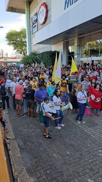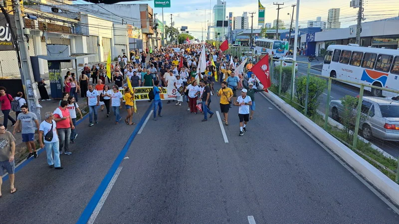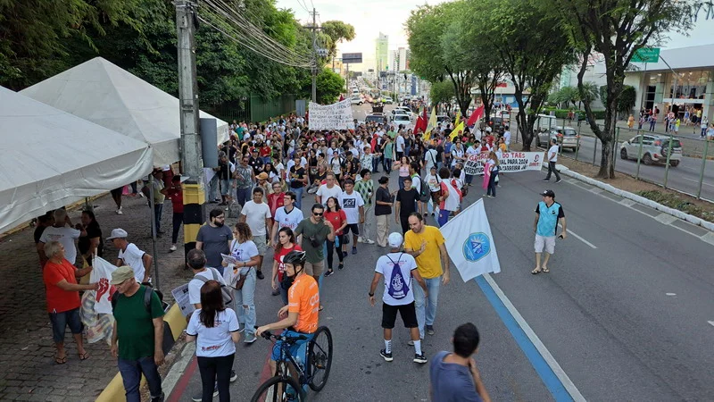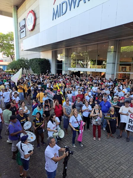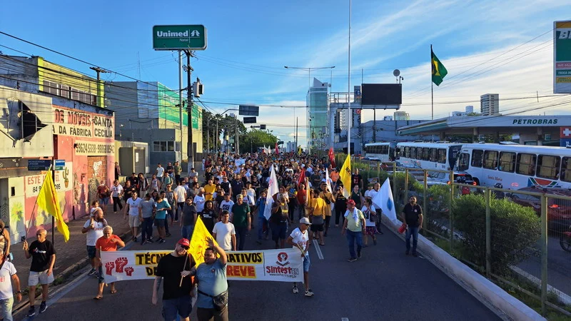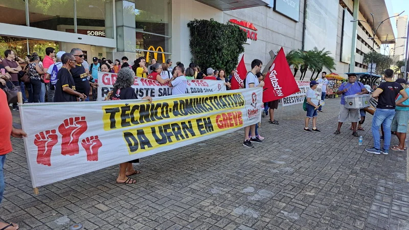 Conforme aprovado por ampla maioria da categoria na Assembleia Geral do dia 27 de março, na tarde desta quarta-feira (03/04), o SINTEST-RN e o Comando Local de Greve realizaram uma Assembleia Ato em frente ao Midway Mall, na Av. Senador Salgado Filho, saindo em caminhada até o DOD, Departamento de Odontologia da UFRN, retornando à entrada do IFRN.