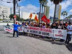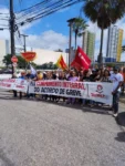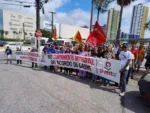 Na manhã desta terça-feira, 29 de julho, o SINTEST-RN realizou um ato público na lateral do shopping Via Direta, em Natal. A mobilização integrou o calendário nacional de lutas do funcionalismo público e foi convocada pela FASUBRA Sindical, com o objetivo de cobrar o cumprimento integral do acordo de greve e barrar a proposta de Reforma Administrativa (antiga PEC 32), que ameaça direitos históricos do serviço público.