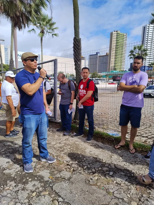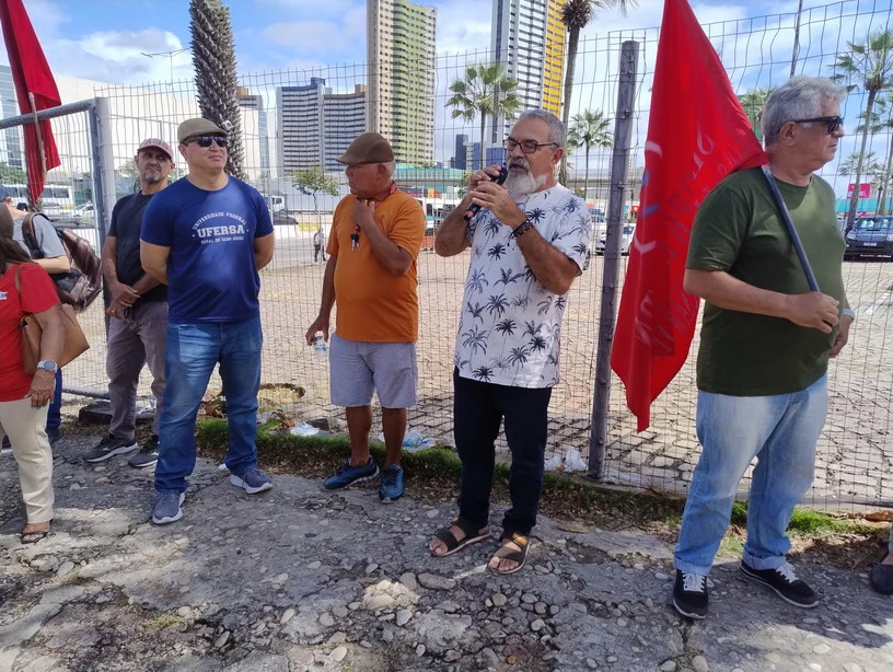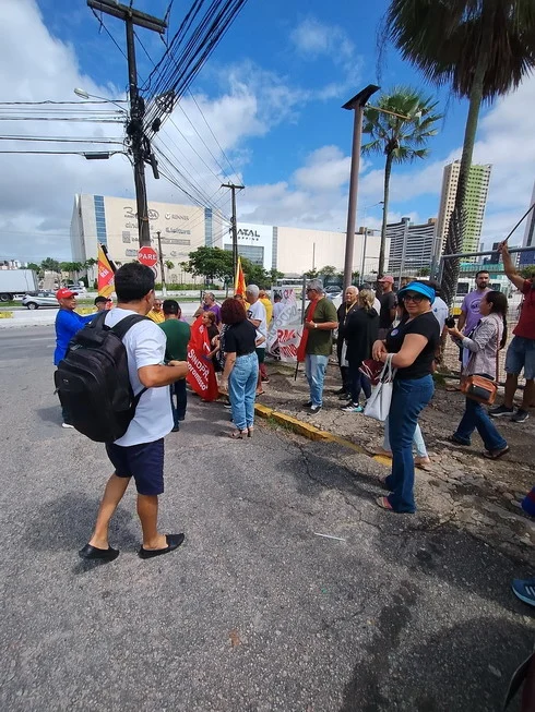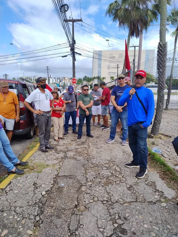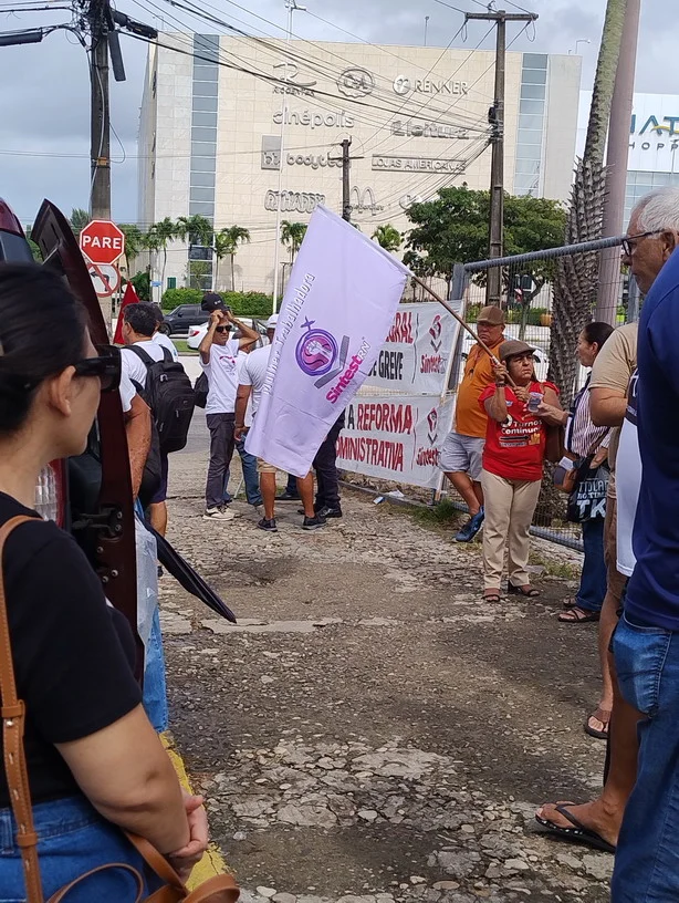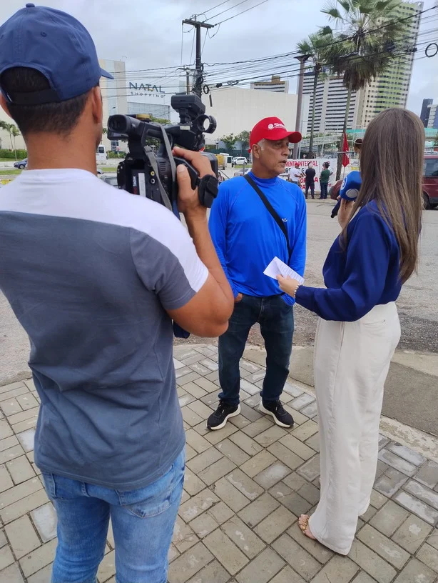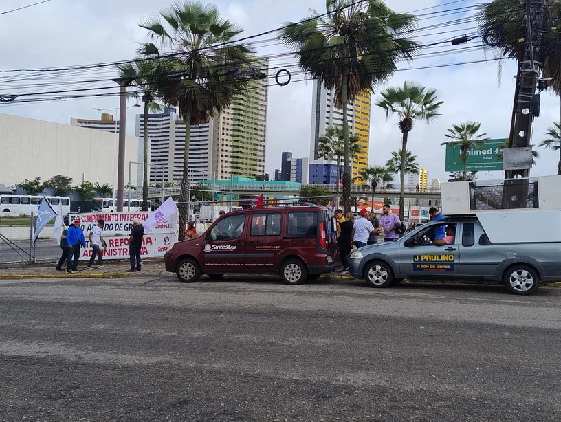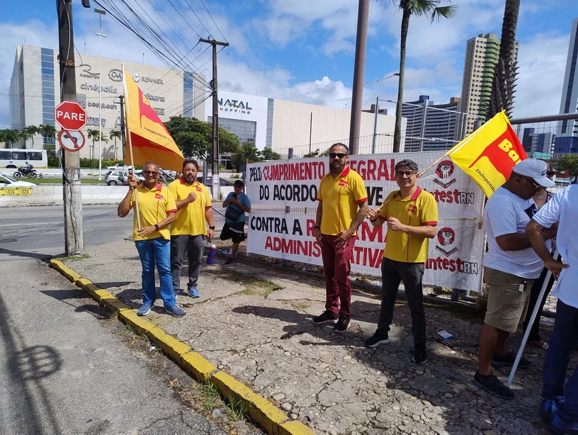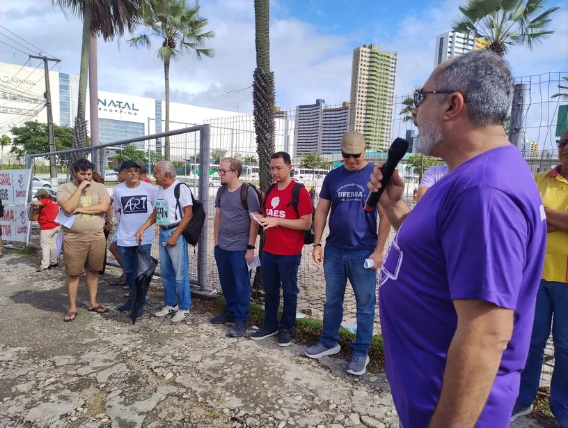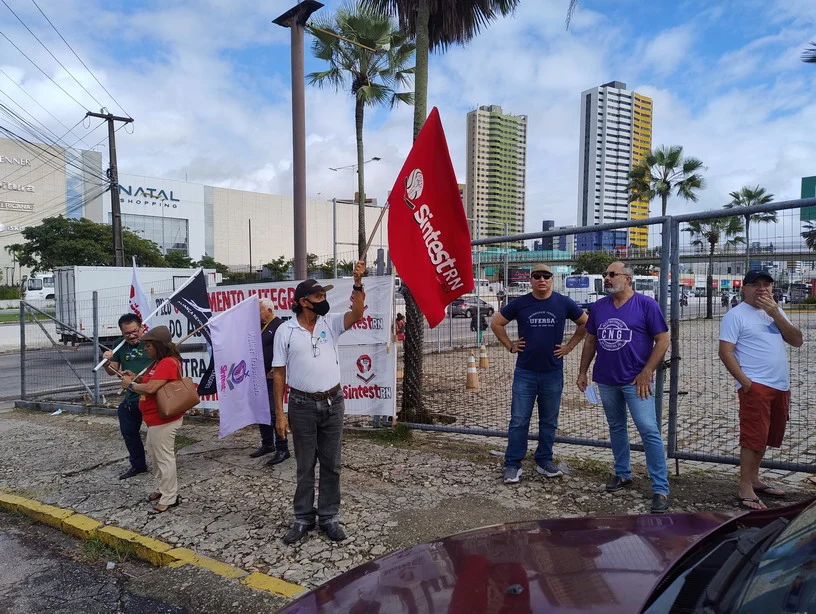 Na manhã desta terça-feira, 29 de julho, o SINTEST-RN realizou um ato público na lateral do shopping Via Direta, em Natal. A mobilização integrou o calendário nacional de lutas do funcionalismo público e foi convocada pela FASUBRA Sindical, com o objetivo de cobrar o cumprimento integral do acordo de greve e barrar a proposta de Reforma Administrativa (antiga PEC 32), que ameaça direitos históricos do serviço público.