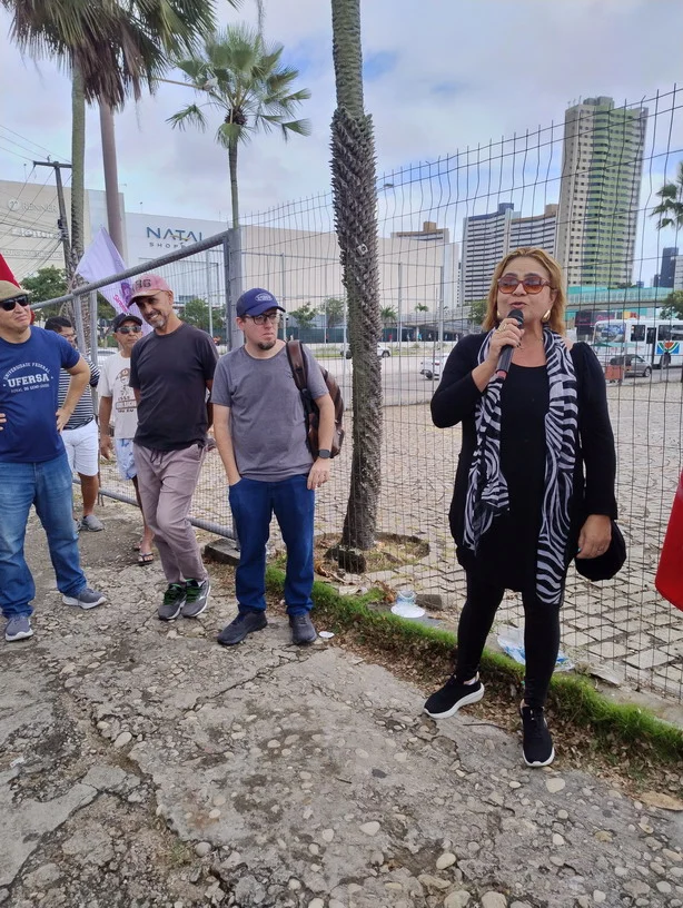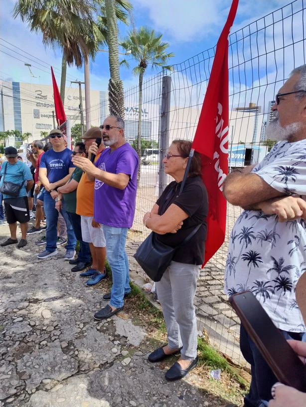Celita Pessoa, coordenadora geral do SINTEST-RN, lamentou a baixa participação dos técnico-administrativos no ato, alertando que muitos ainda não perceberam a gravidade do momento. “A Reforma Administrativa é como um trator que vem para destruir as conquistas da nossa categoria. Se não reagirmos agora, corremos o risco de perder tudo o que levamos décadas para conquistar”, afirmou.