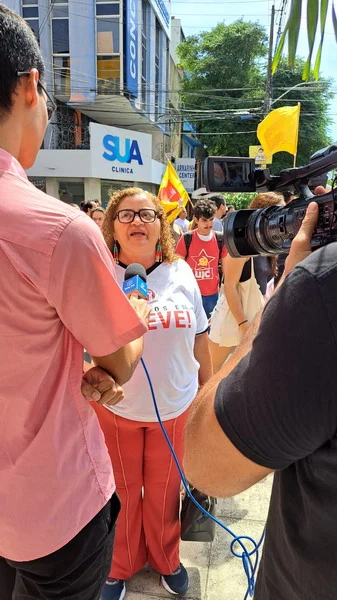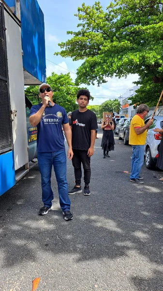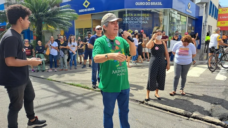 Na manhã desta terça-feira, 11/06, servidores e alunos da UFRN e IFRN que estão em greve, saíram em caminhada pelas principais vias do Centro de Natal para dialogar com a população sobre as pautas de reivindicações do movimento grevista, fechando um dos mais movimentados cruzamentos do bairro da Cidade Alta.