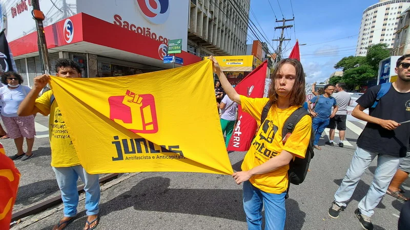 O final do ato unificado foi marcado por uma performance da Artivista YndýgenaAfro / Crystyna Tapuya, intitulada “Carranca Zaia pra o mau espantar”, inspirada nas carrancas dos barqueiros do Rio São Francisco.
