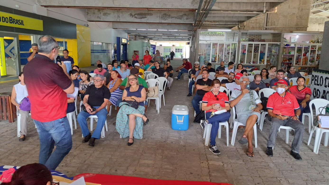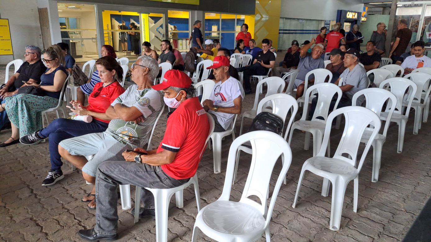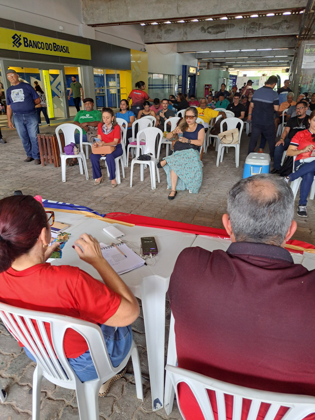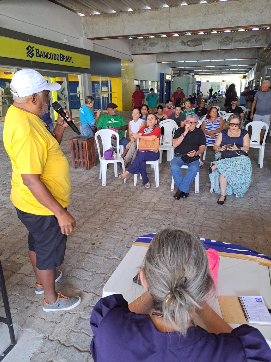 O coordenador jurídico, Wellington Soares, propôs consultar a assembleia sobre a utilização do fundo de greve para custear a viagem.