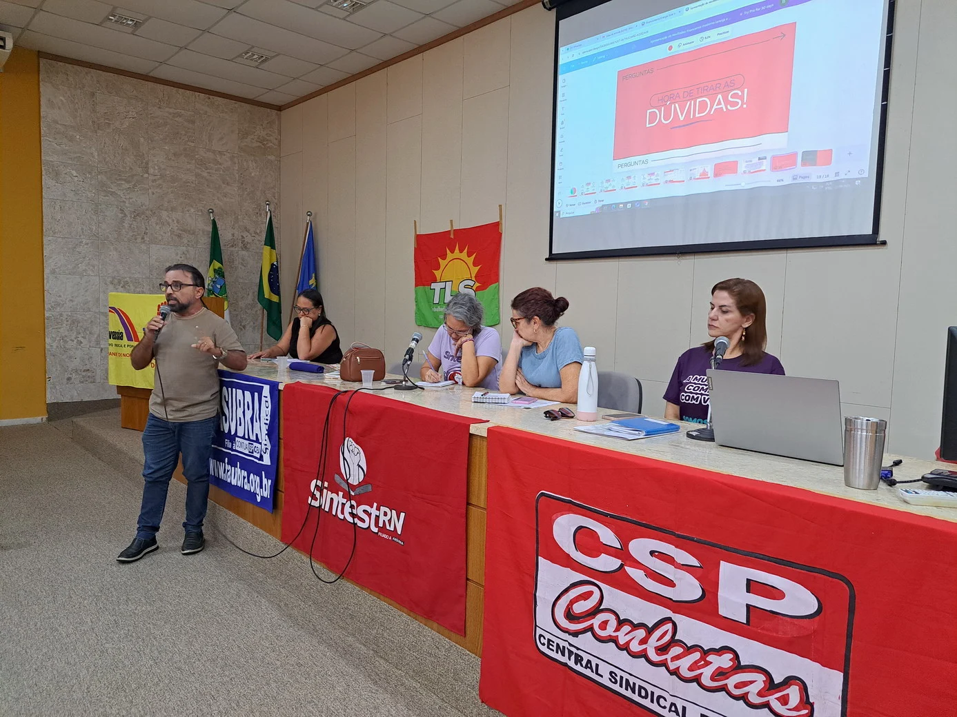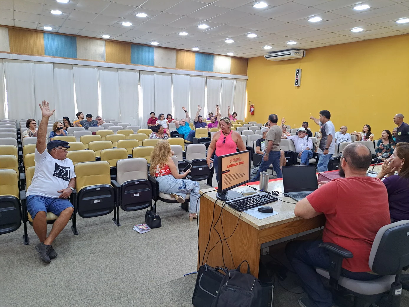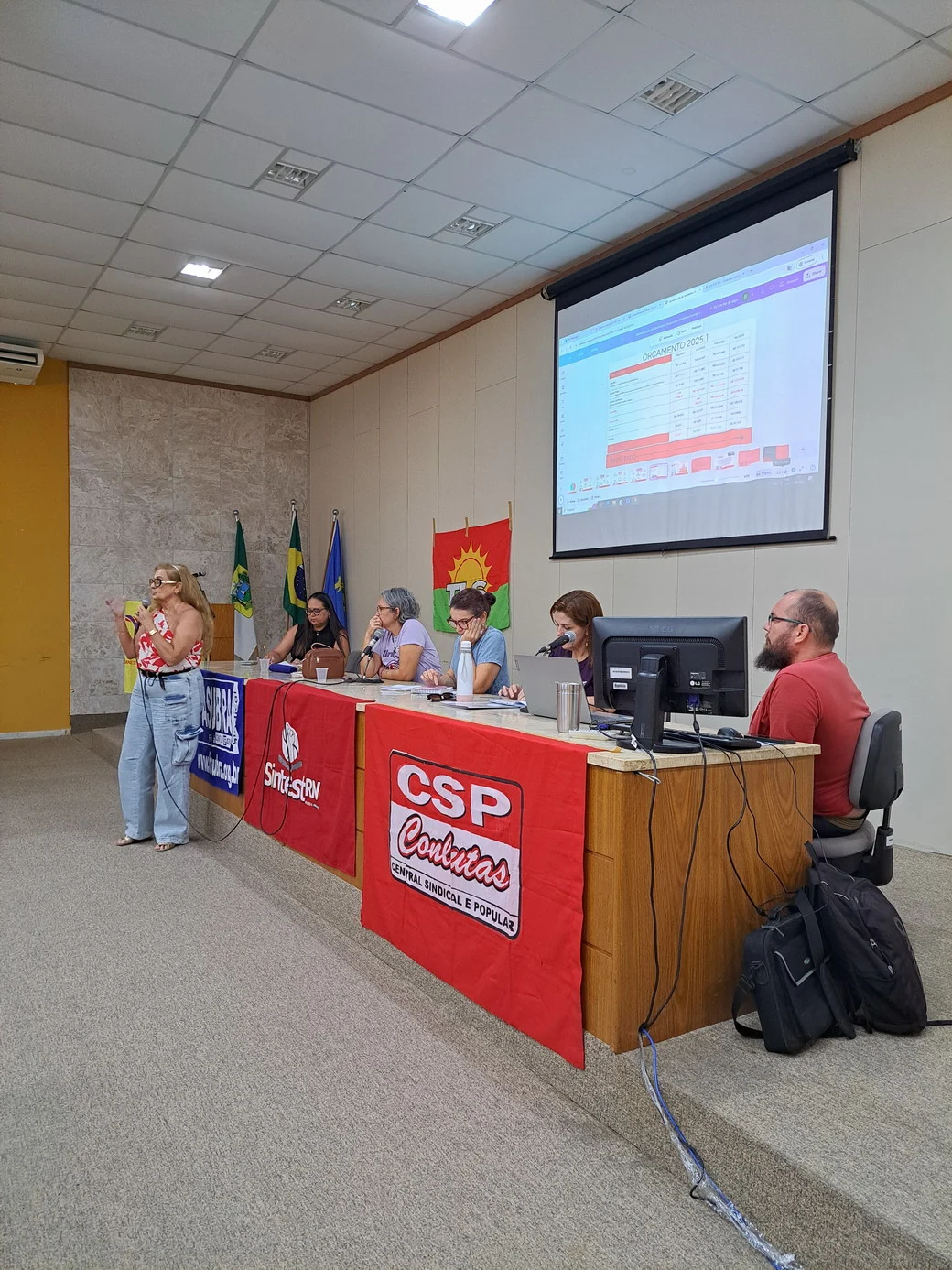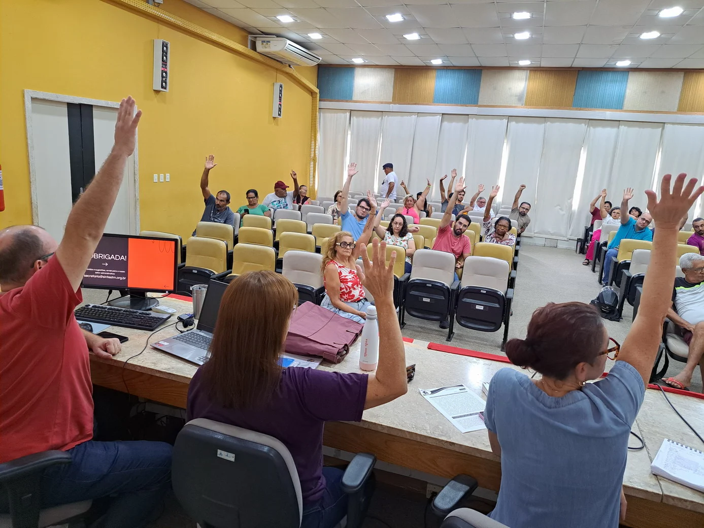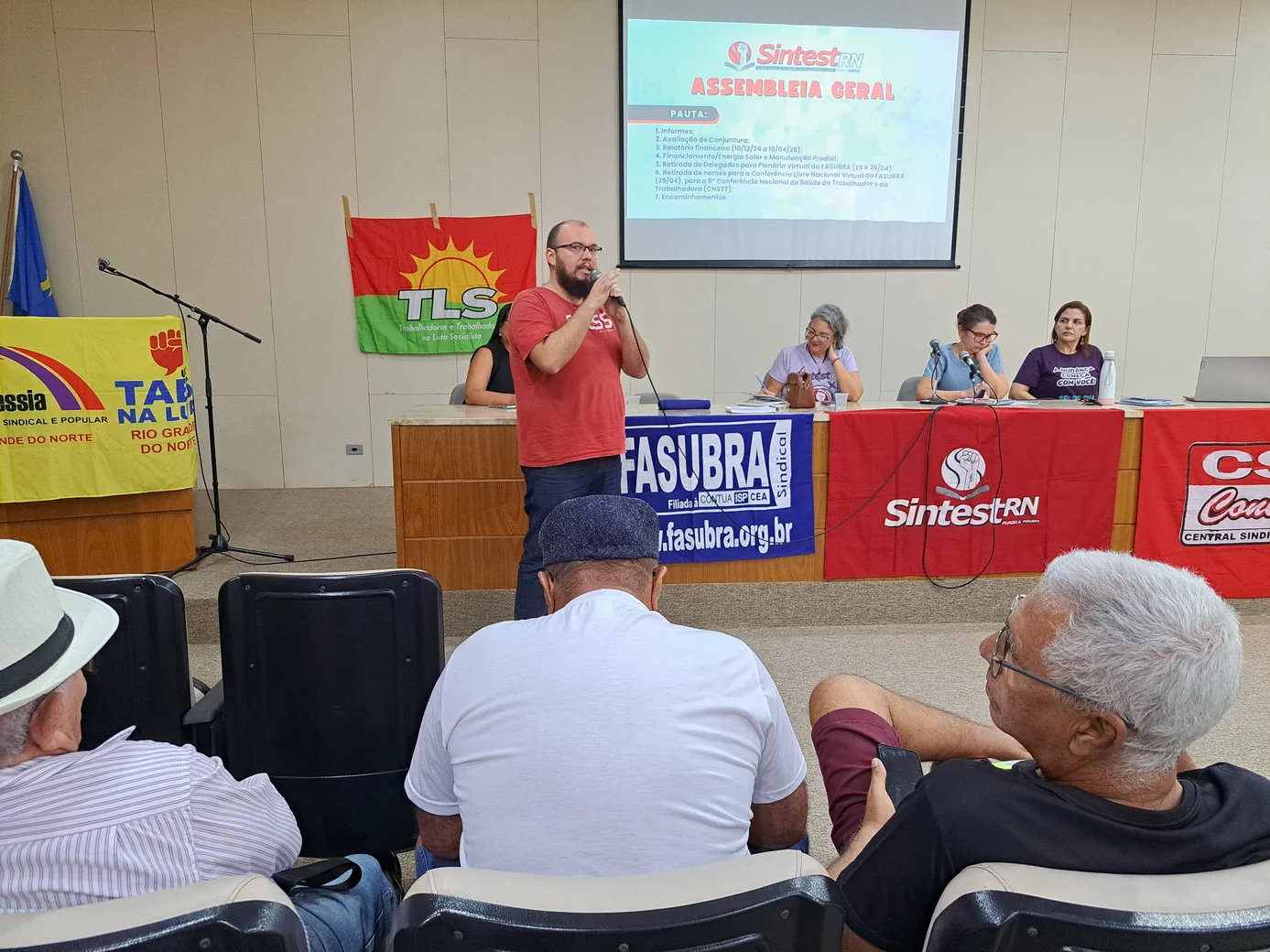 Logo no início, a coordenadora geral, Celita Pessoa, esclareceu o motivo da pauta extensa, informando que alguns pontos exigiam deliberação da categoria, como o financiamento da energia solar e da manutenção do prédio, por envolverem valores significativos.