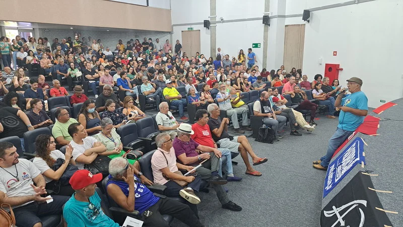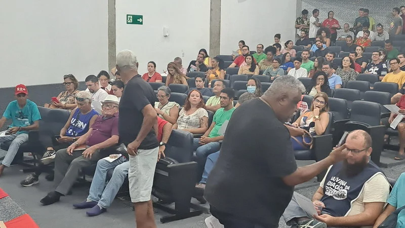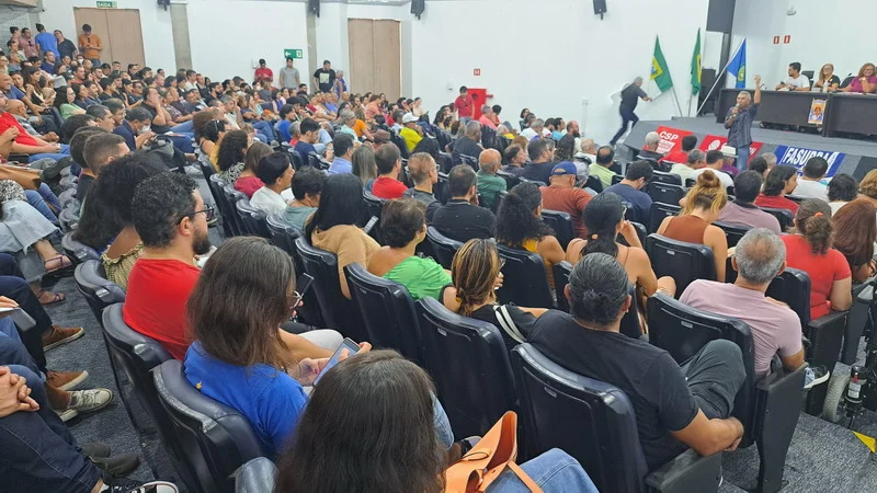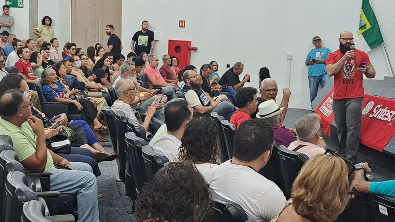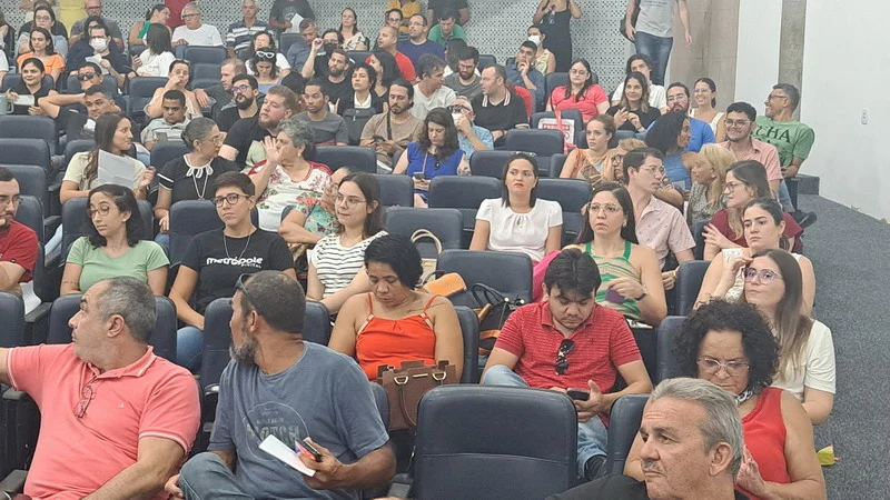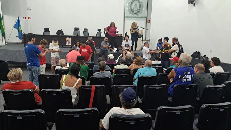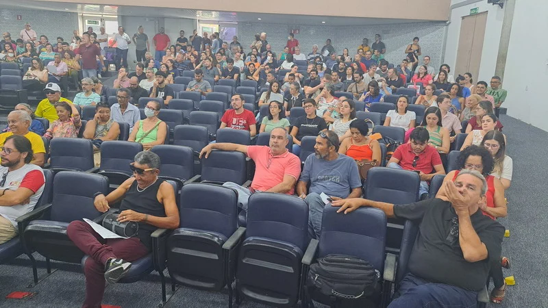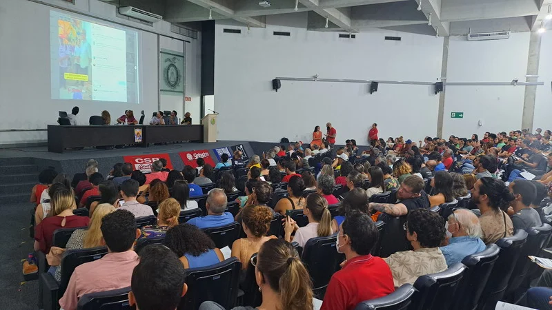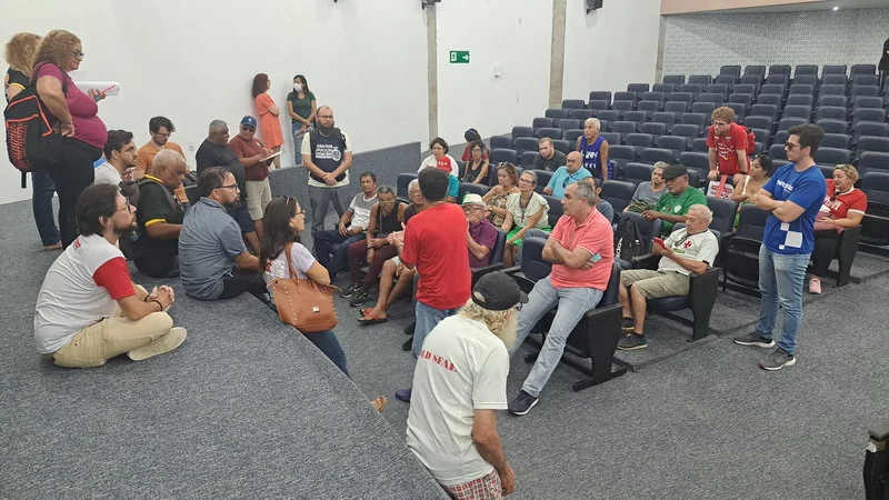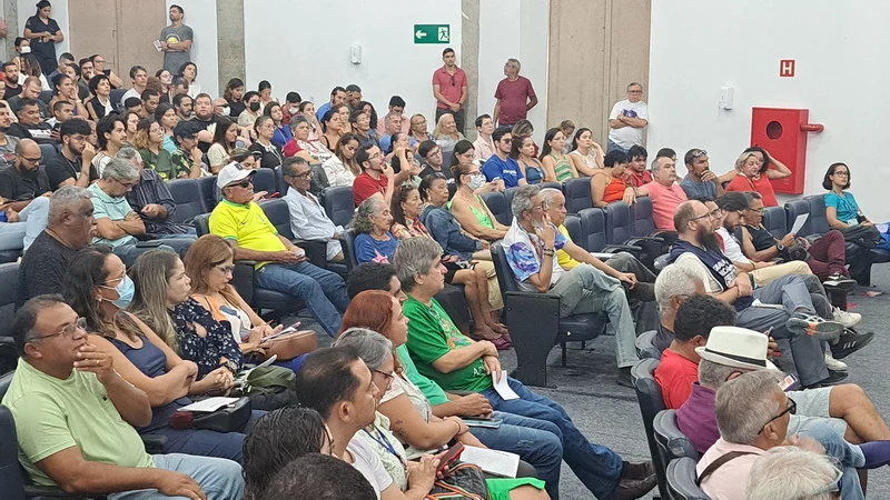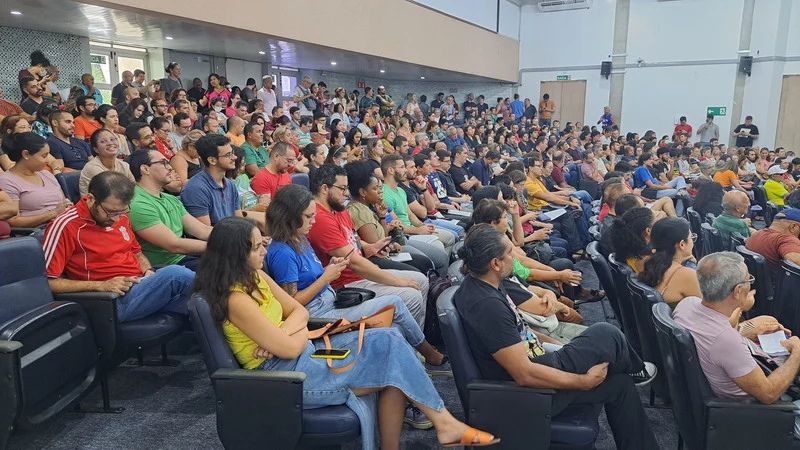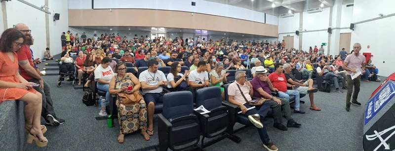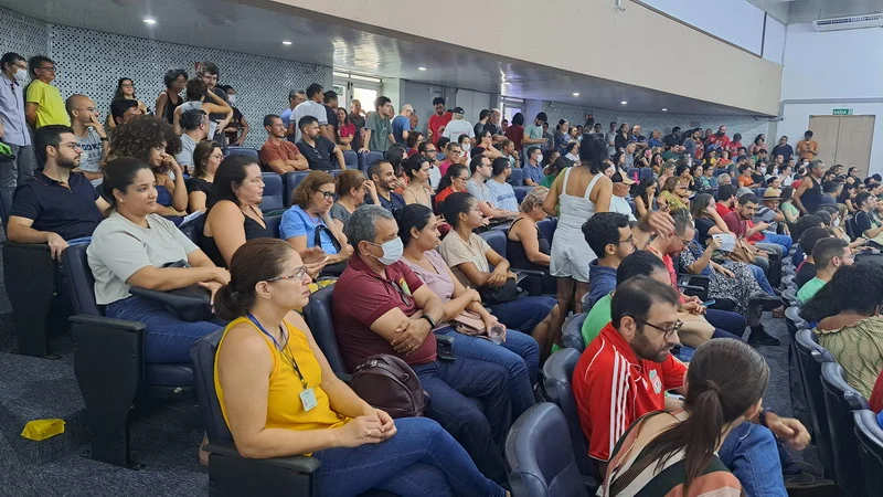Mais uma vez o auditório da reitoria estava lotado e ficou pequeno para a quantidade de servidores e servidoras presentes. A categoria aprovou nova assembleia para a quarta-feira, 20/03.