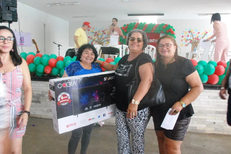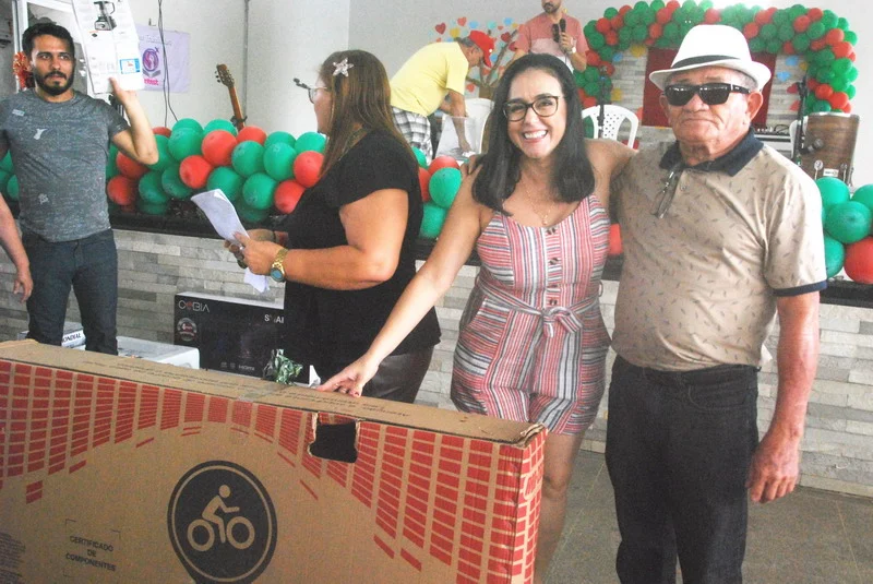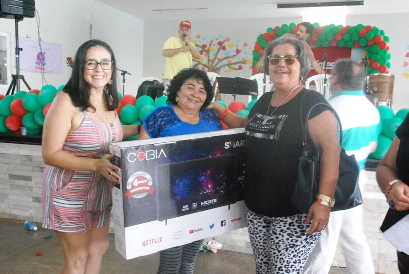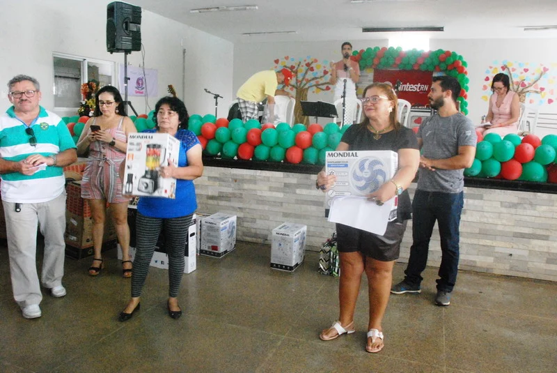 Teve quem aproveitou para se refrescar na piscina e fugir do calor intenso, mas a hora mais aguardada foi o sorteio dos prêmios.