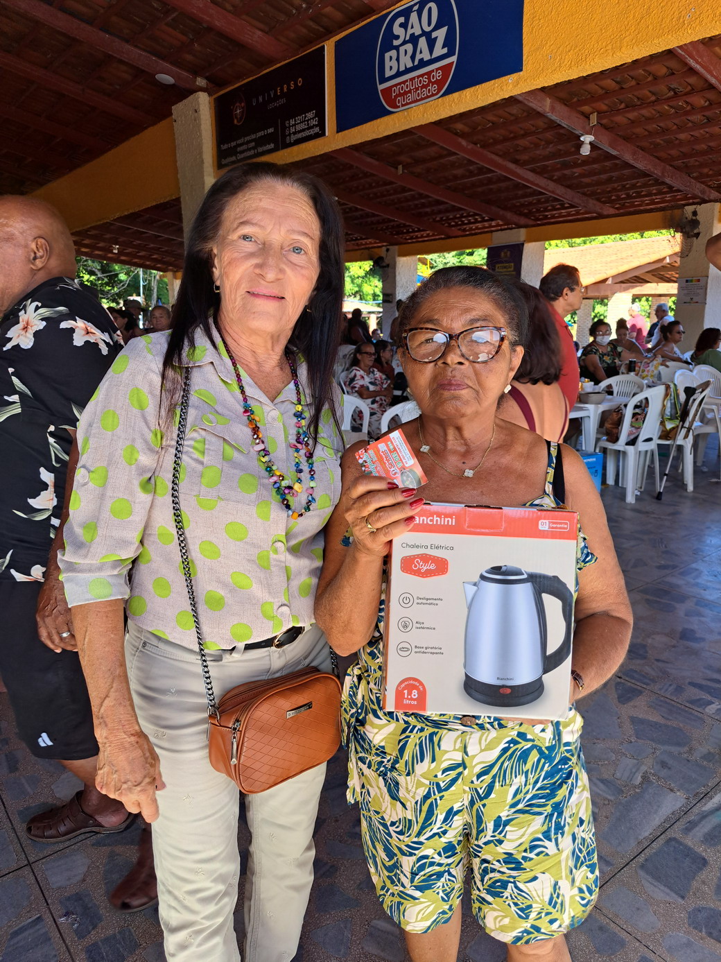 Um dos pontos altos da confraternização foi o tradicional sorteio de brindes, aguardado com grande expectativa. Foram sorteados diversos prêmios, entre eles TVs de 40”, ventiladores, air fryers, fornos elétricos, panelas elétricas, torradeiras, multiprocessadores, aspiradores de pó, entre outros, garantindo ainda mais entusiasmo ao encontro.