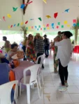 Na hora do almoço, um churrasco delicioso serviu de ponto de encontro para conversas, abraços e sorrisos. À tarde, a festa continuou com um lanche recheado de comidas típicas juninas, mantendo viva a tradição e o sabor do São João nordestino, ao som de muito forró.