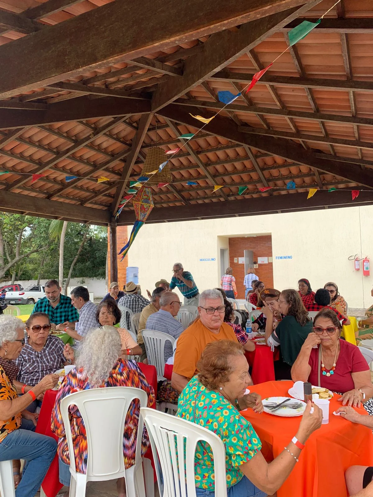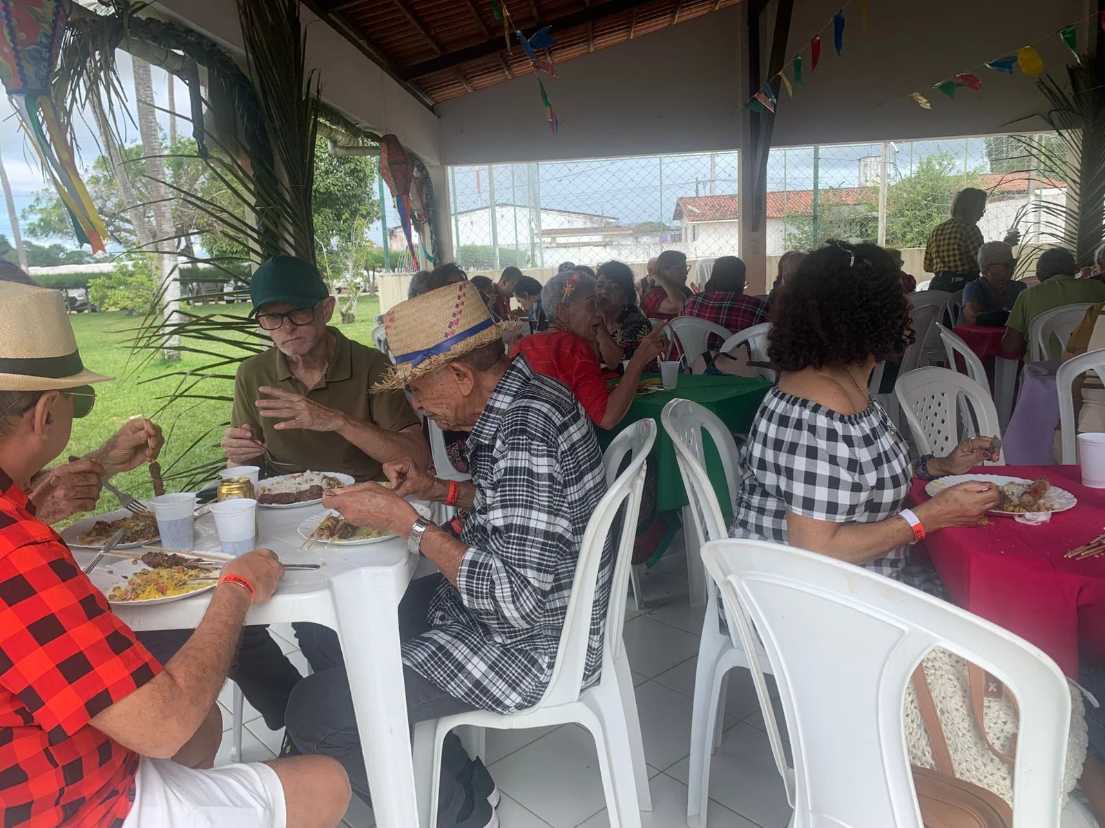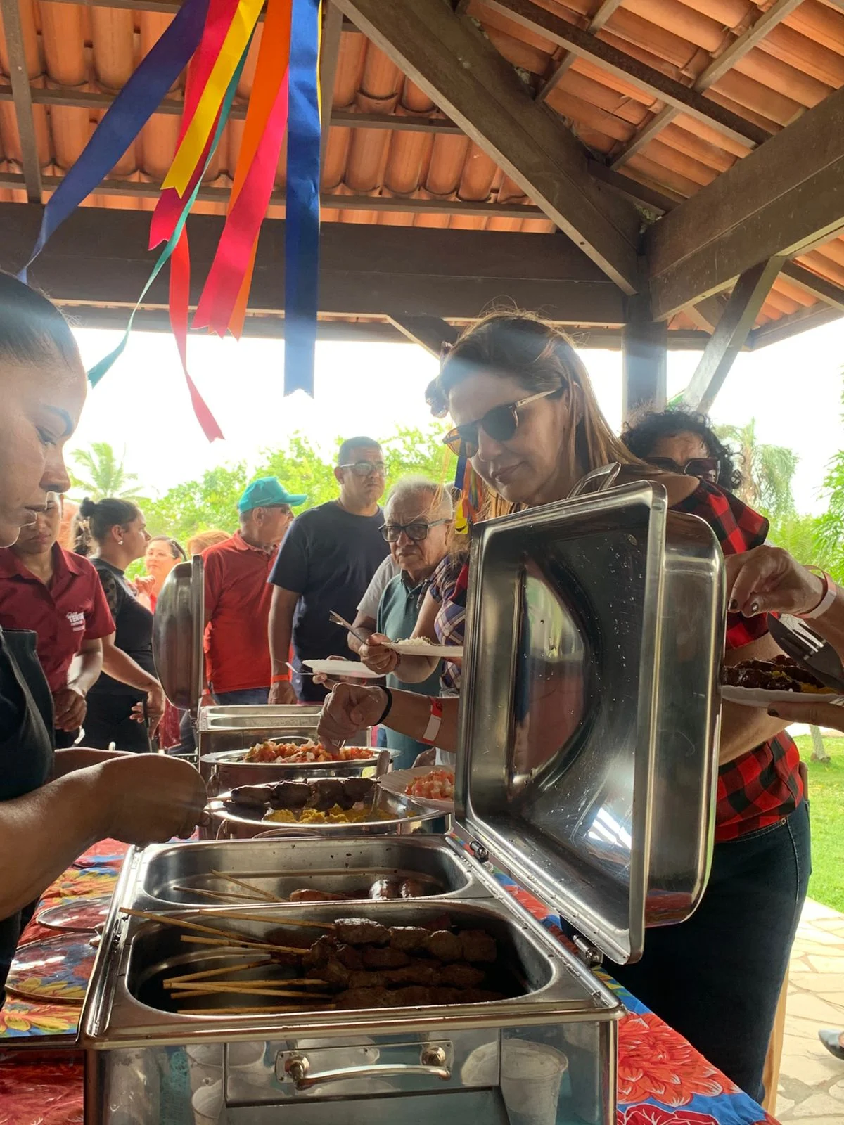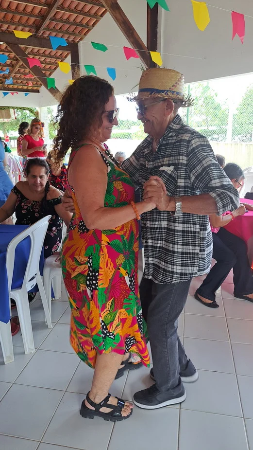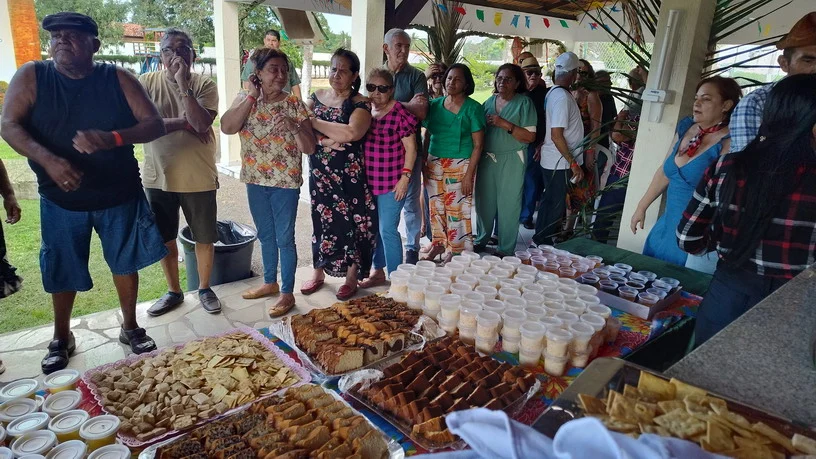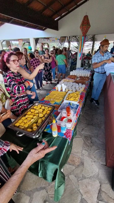 Na hora do almoço, um churrasco delicioso serviu de ponto de encontro para conversas, abraços e sorrisos. À tarde, a festa continuou com um lanche recheado de comidas típicas juninas, mantendo viva a tradição e o sabor do São João nordestino, ao som de muito forró.