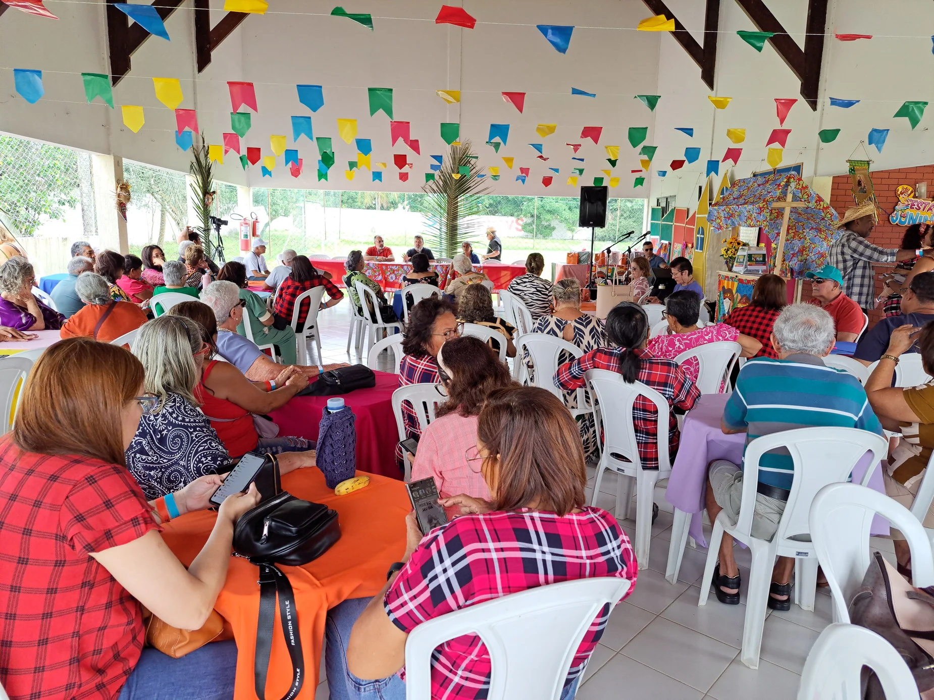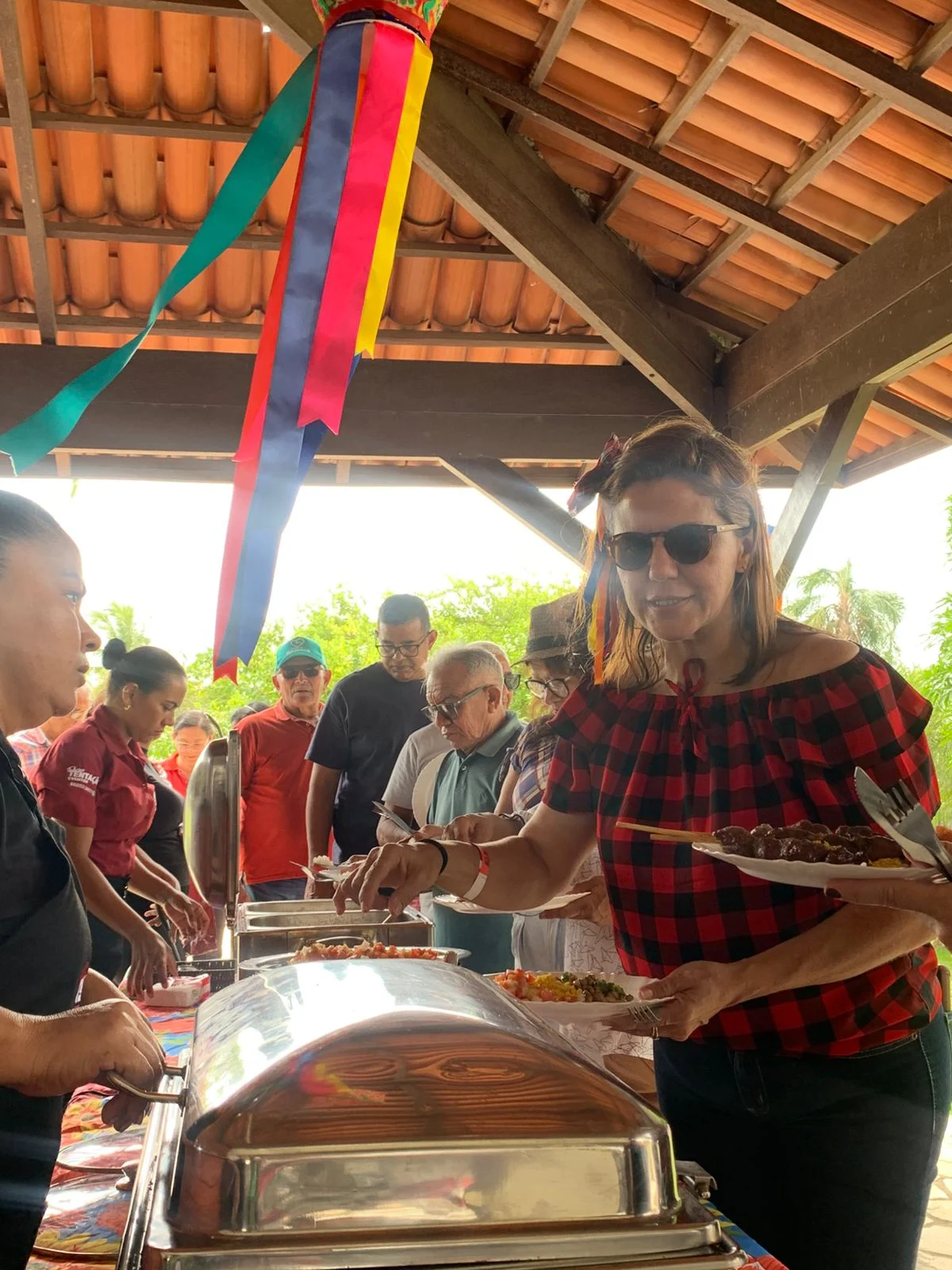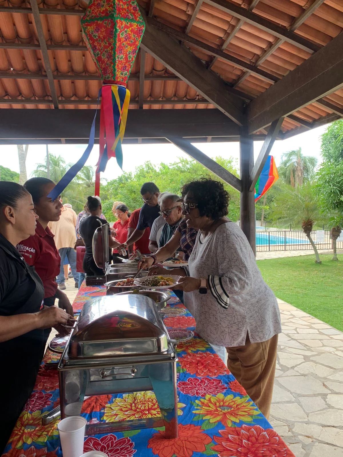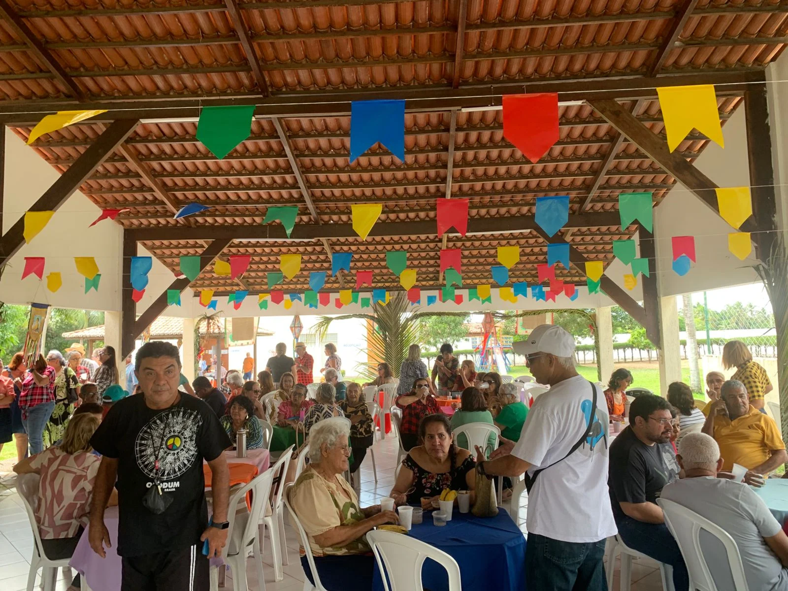 Na hora do almoço, um churrasco delicioso serviu de ponto de encontro para conversas, abraços e sorrisos. À tarde, a festa continuou com um lanche recheado de comidas típicas juninas, mantendo viva a tradição e o sabor do São João nordestino, ao som de muito forró.