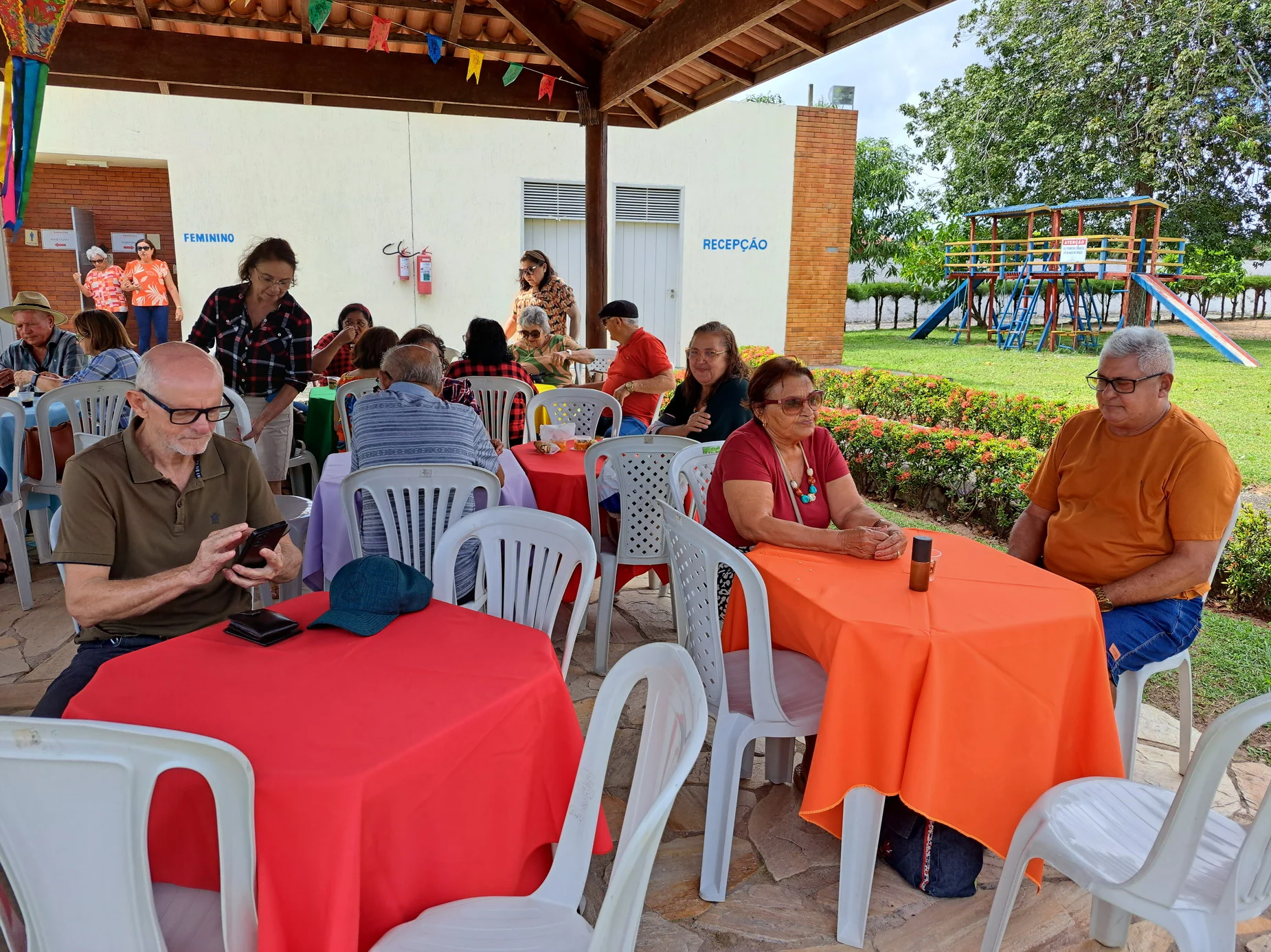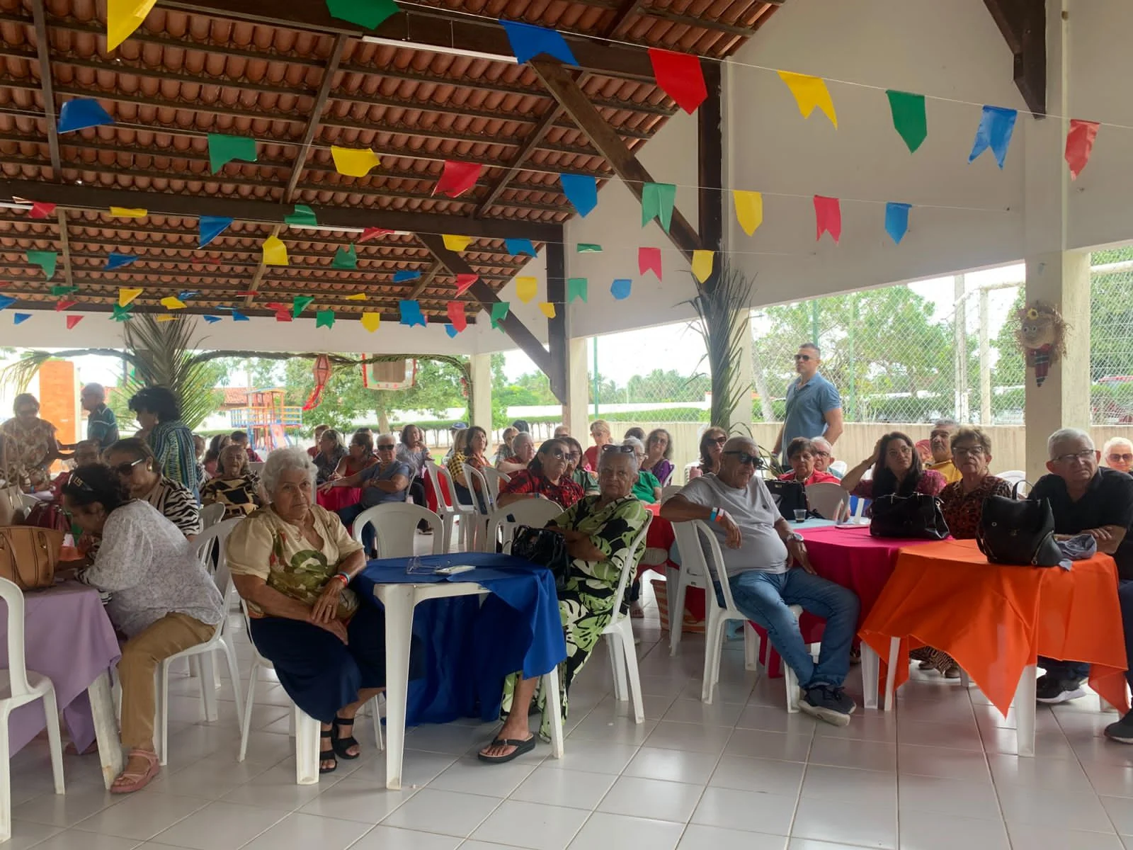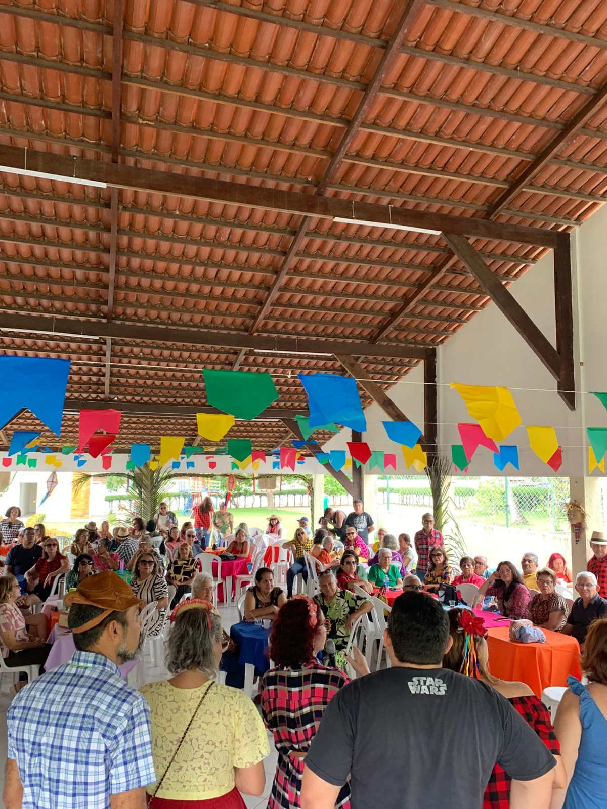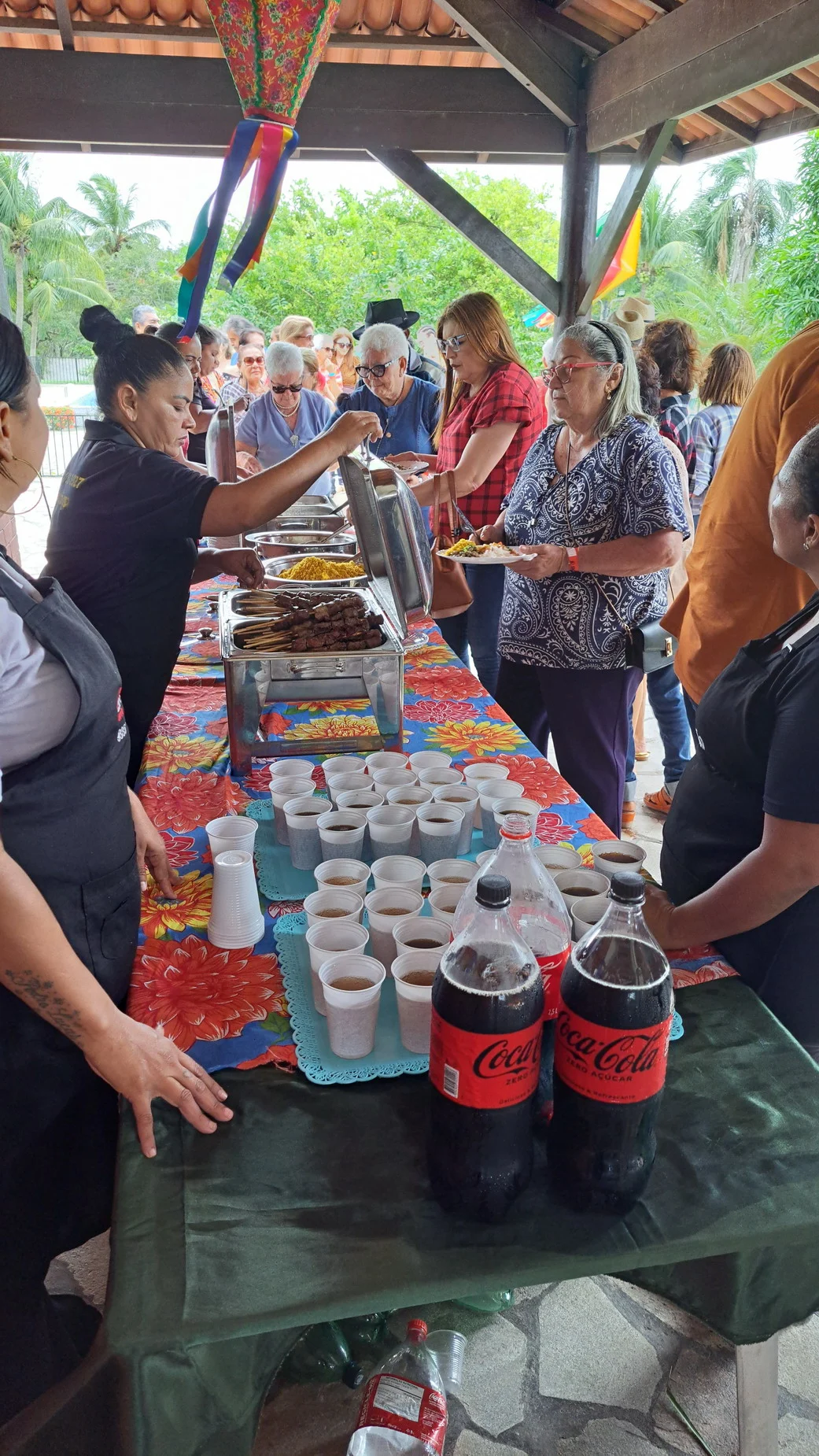 Na hora do almoço, um churrasco delicioso serviu de ponto de encontro para conversas, abraços e sorrisos. À tarde, a festa continuou com um lanche recheado de comidas típicas juninas, mantendo viva a tradição e o sabor do São João nordestino, ao som de muito forró.