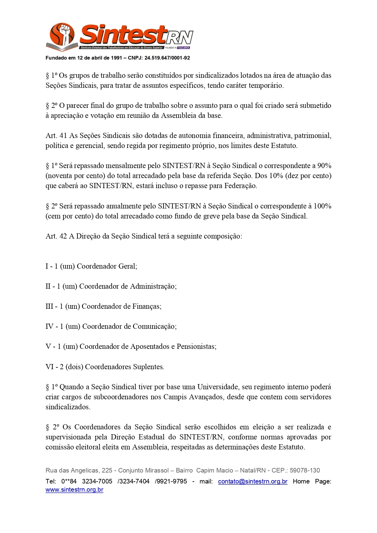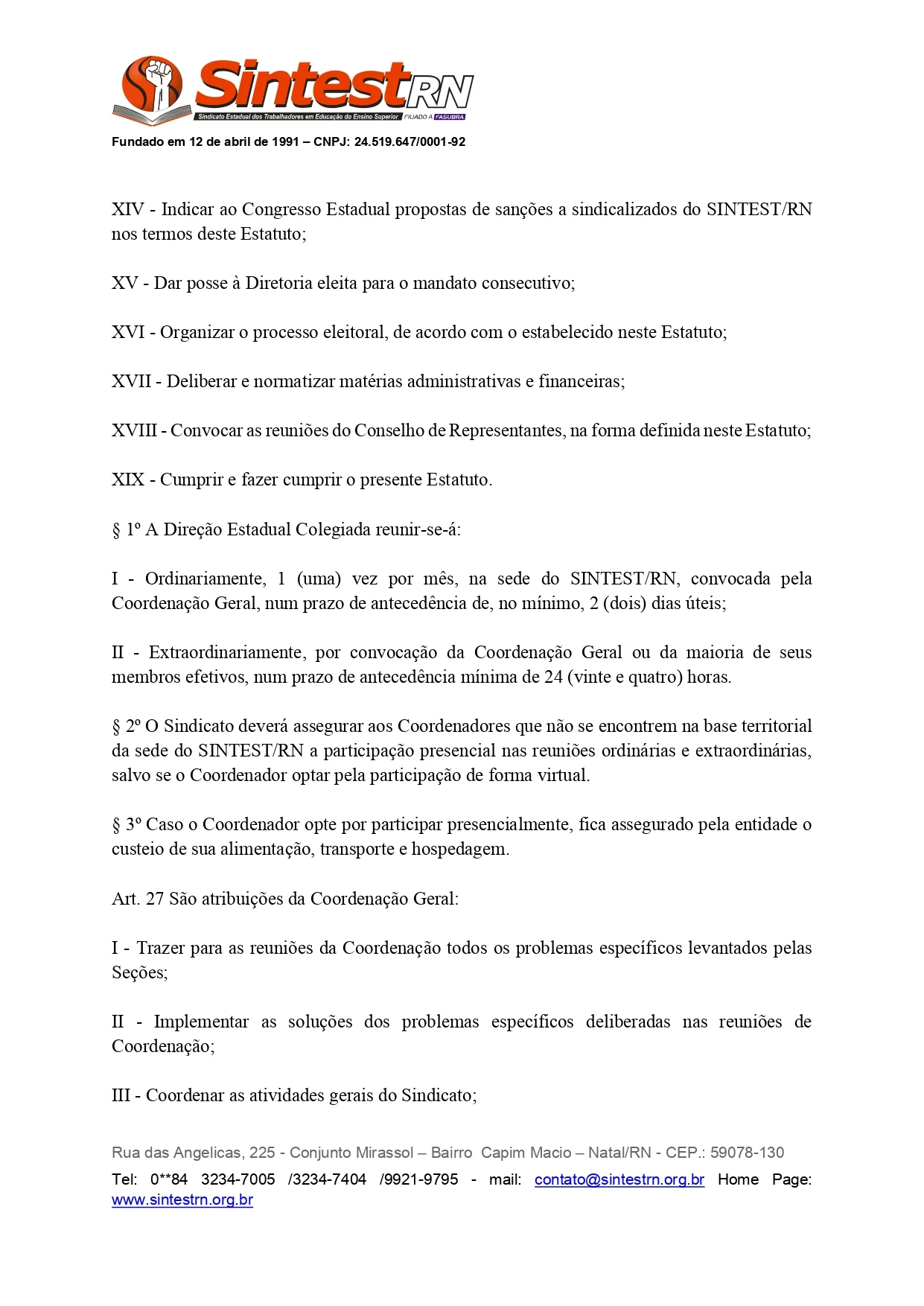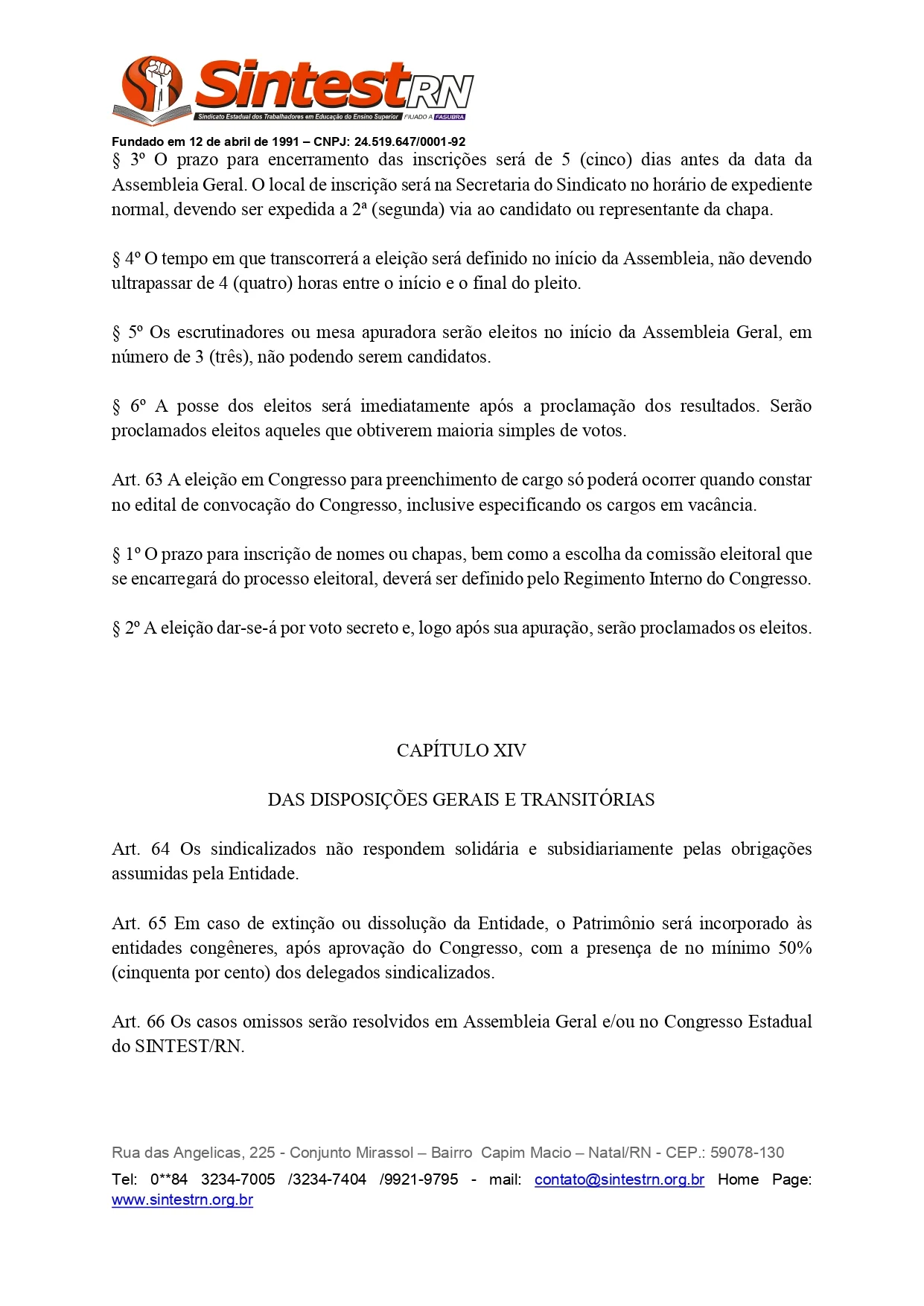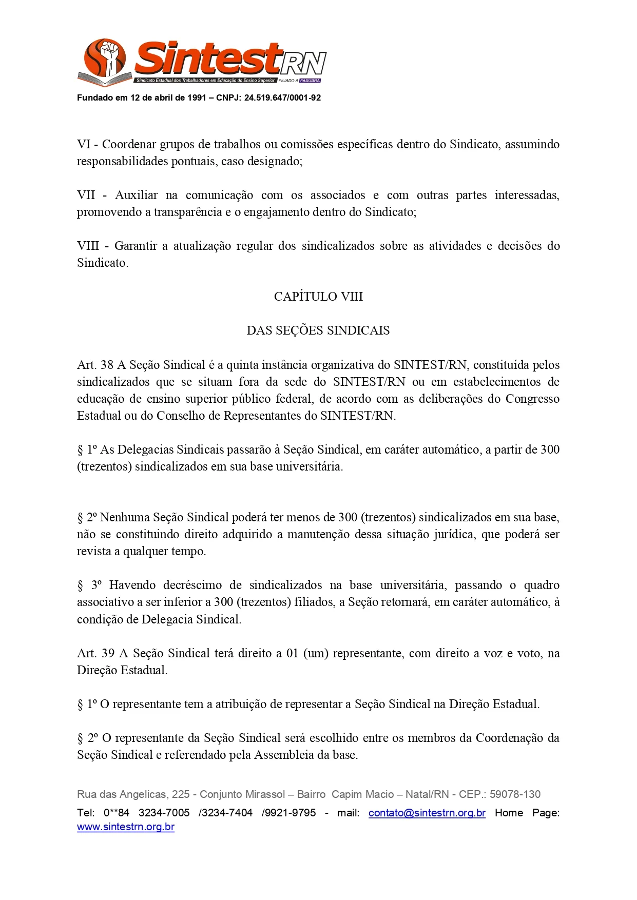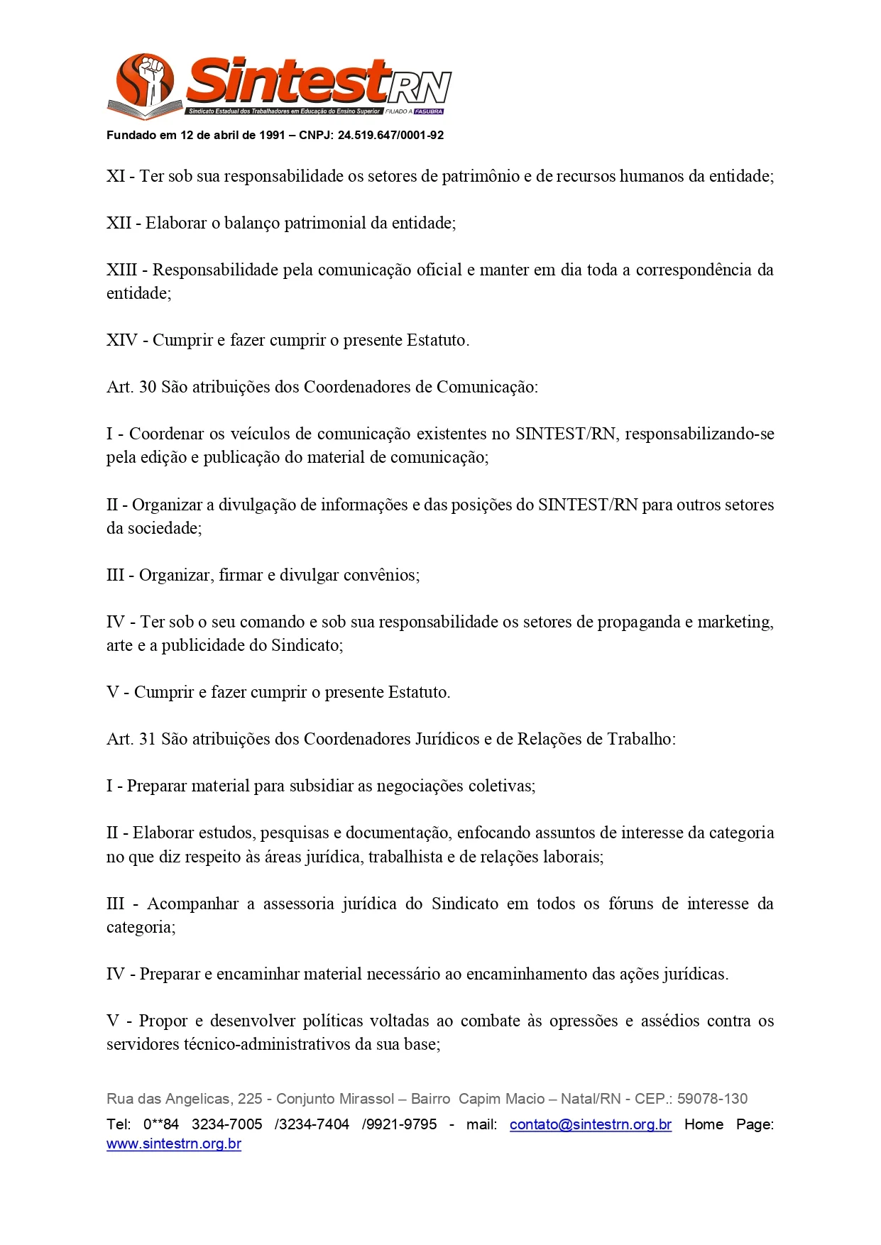 O novo estatuto foi aprovado no 17º Congresso Estadual Ordinário – XVII CONSINTEST, cujo tema foi “Avançando na consolidação de um SINTEST-RN independente, plural e de luta: desafios atuais para a organização da classe trabalhadora”.