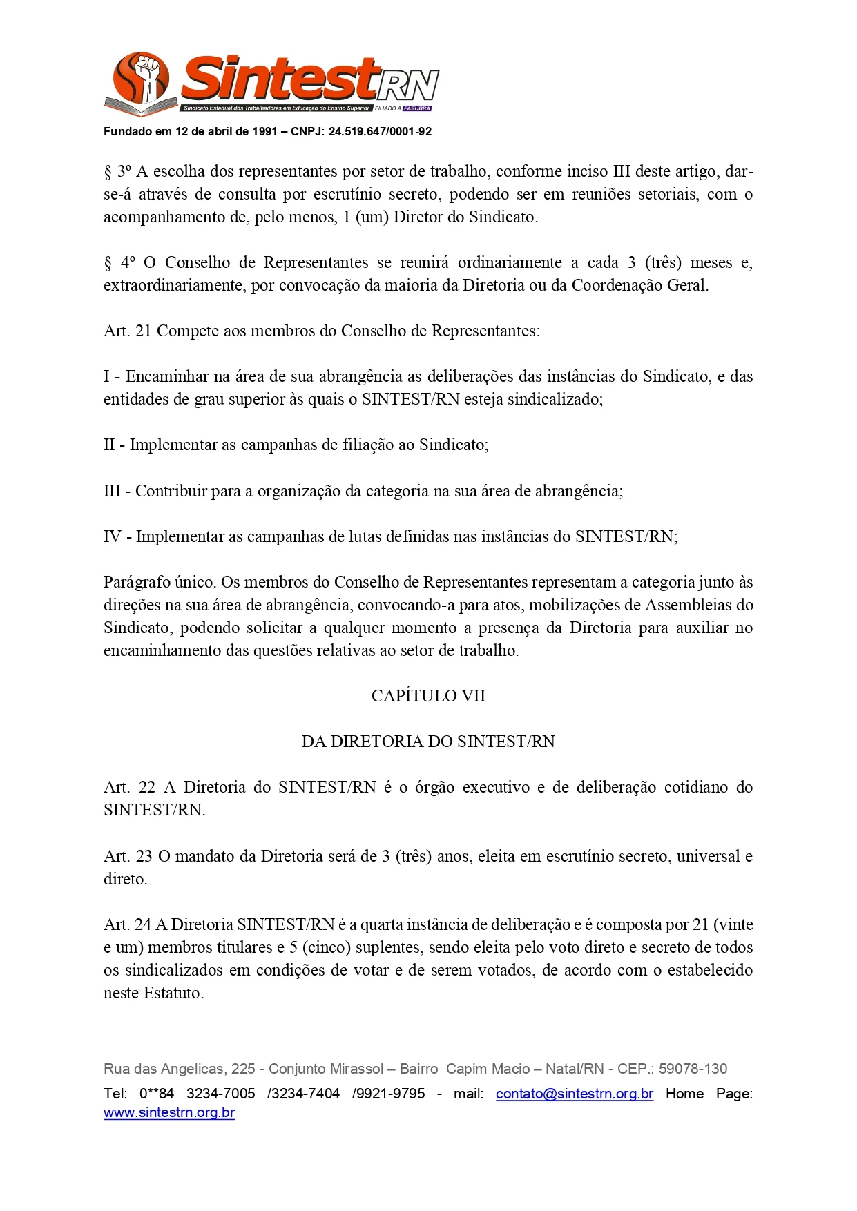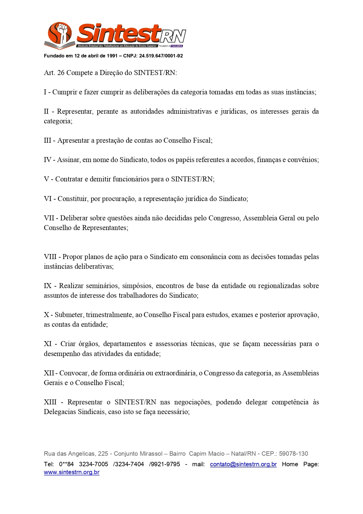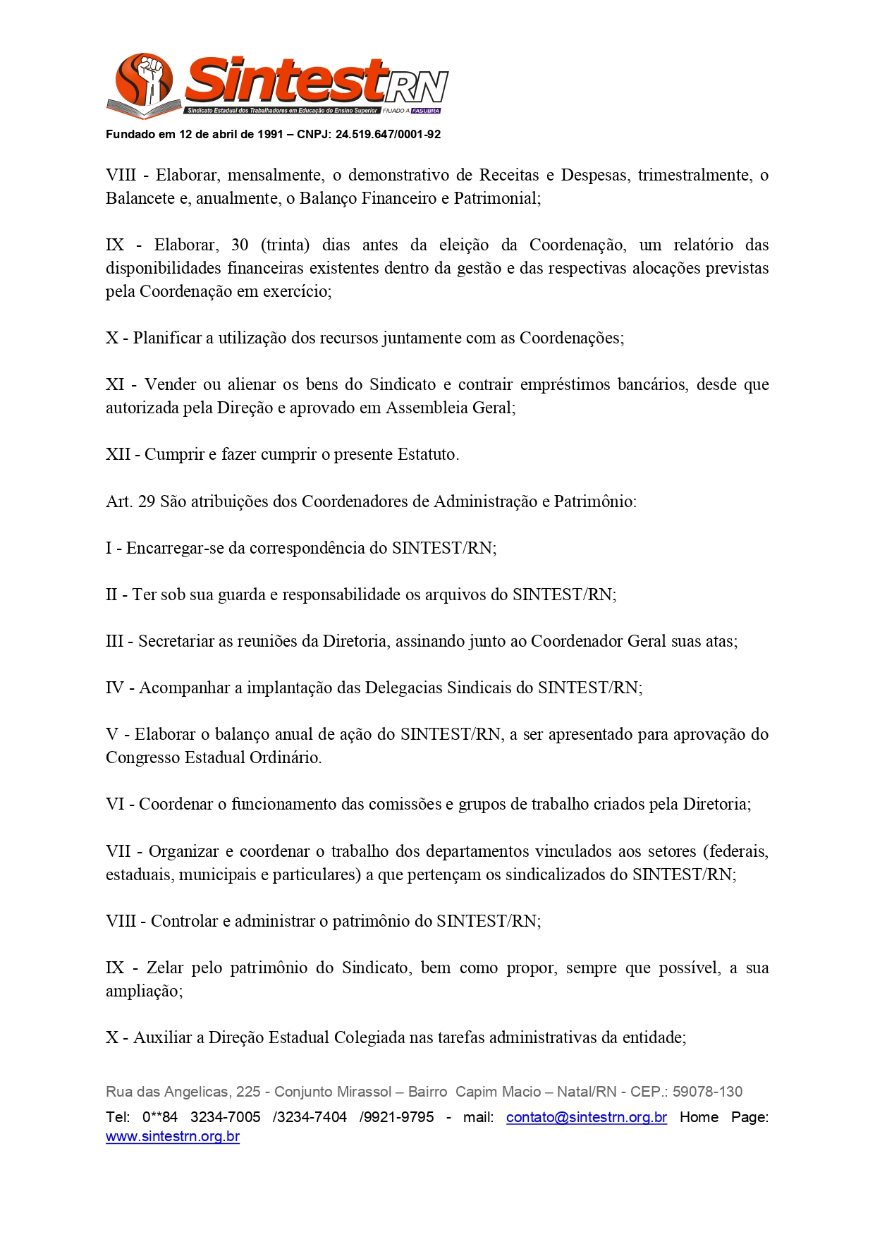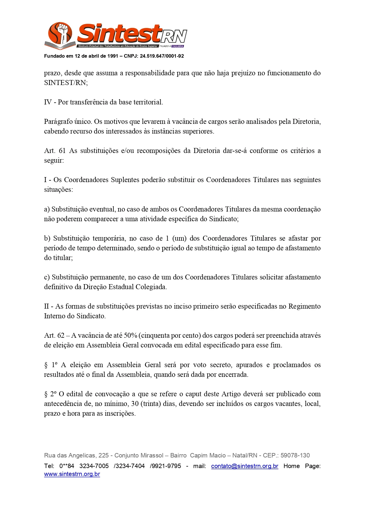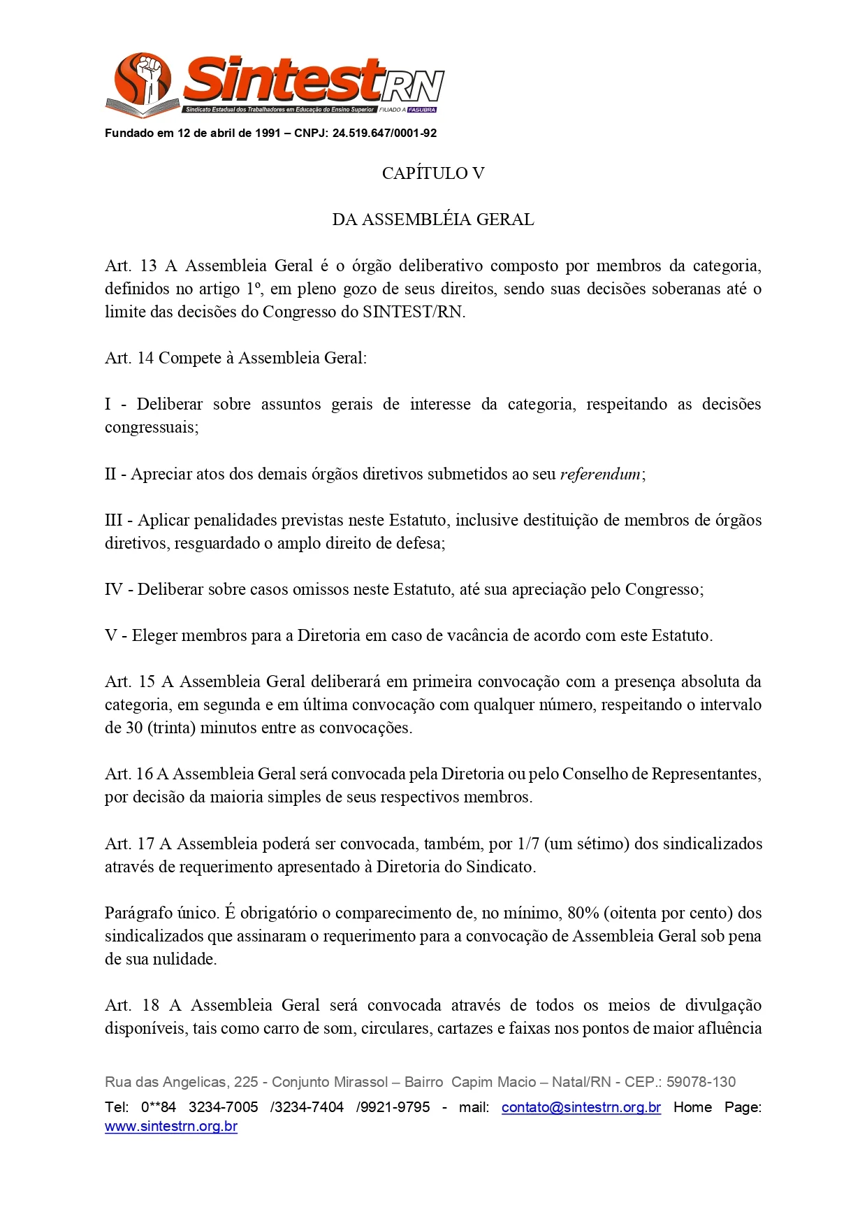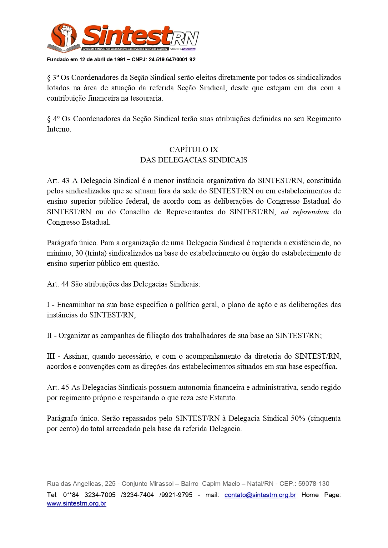 O novo estatuto foi aprovado no 17º Congresso Estadual Ordinário – XVII CONSINTEST, cujo tema foi “Avançando na consolidação de um SINTEST-RN independente, plural e de luta: desafios atuais para a organização da classe trabalhadora”.