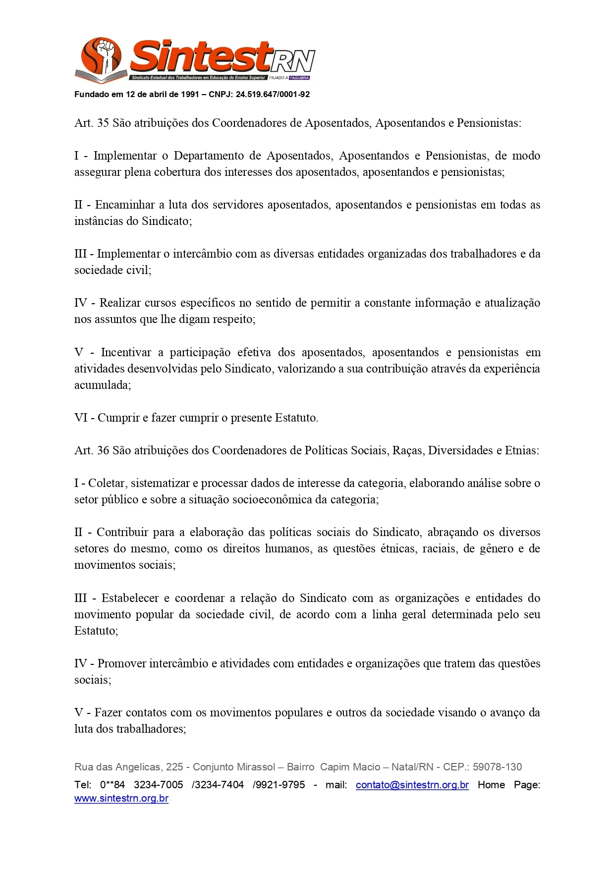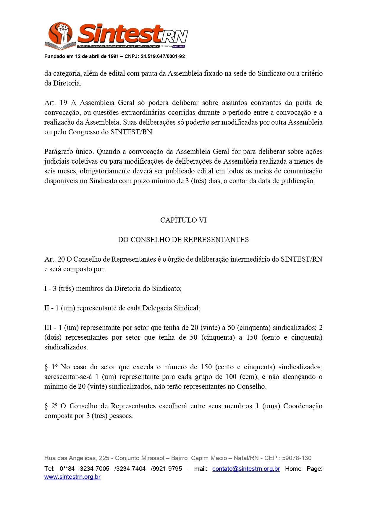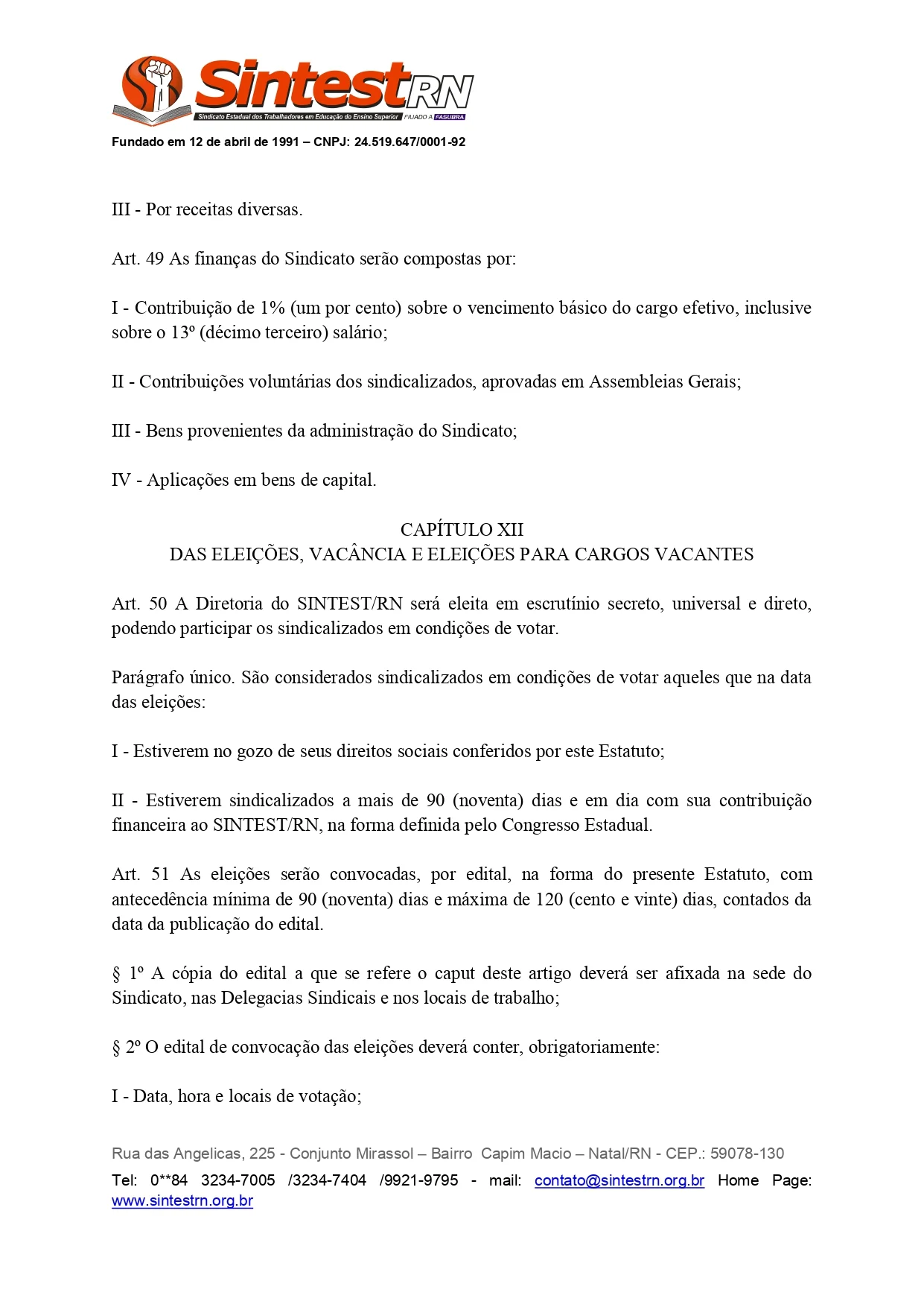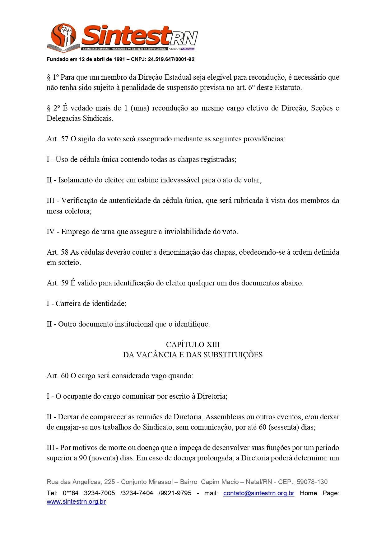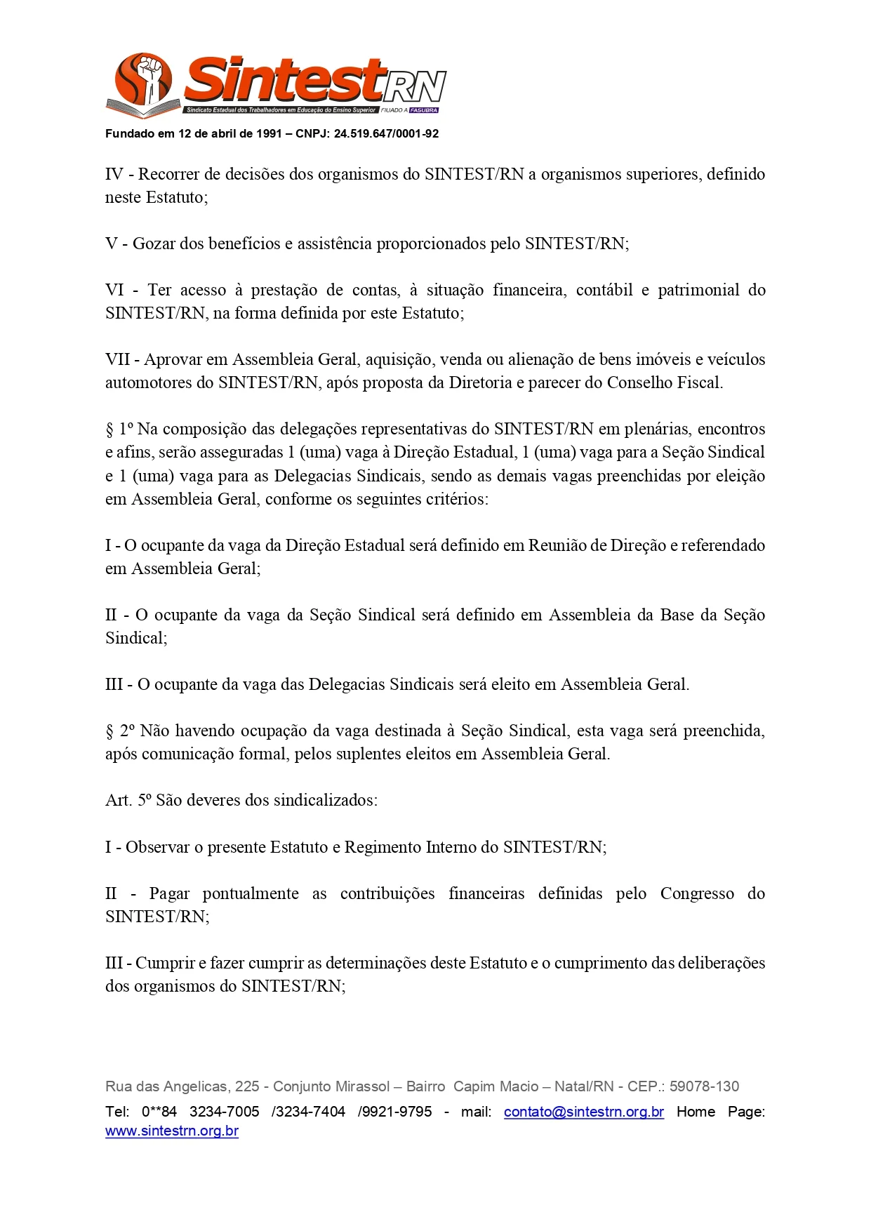 O novo estatuto foi aprovado no 17º Congresso Estadual Ordinário – XVII CONSINTEST, cujo tema foi “Avançando na consolidação de um SINTEST-RN independente, plural e de luta: desafios atuais para a organização da classe trabalhadora”.