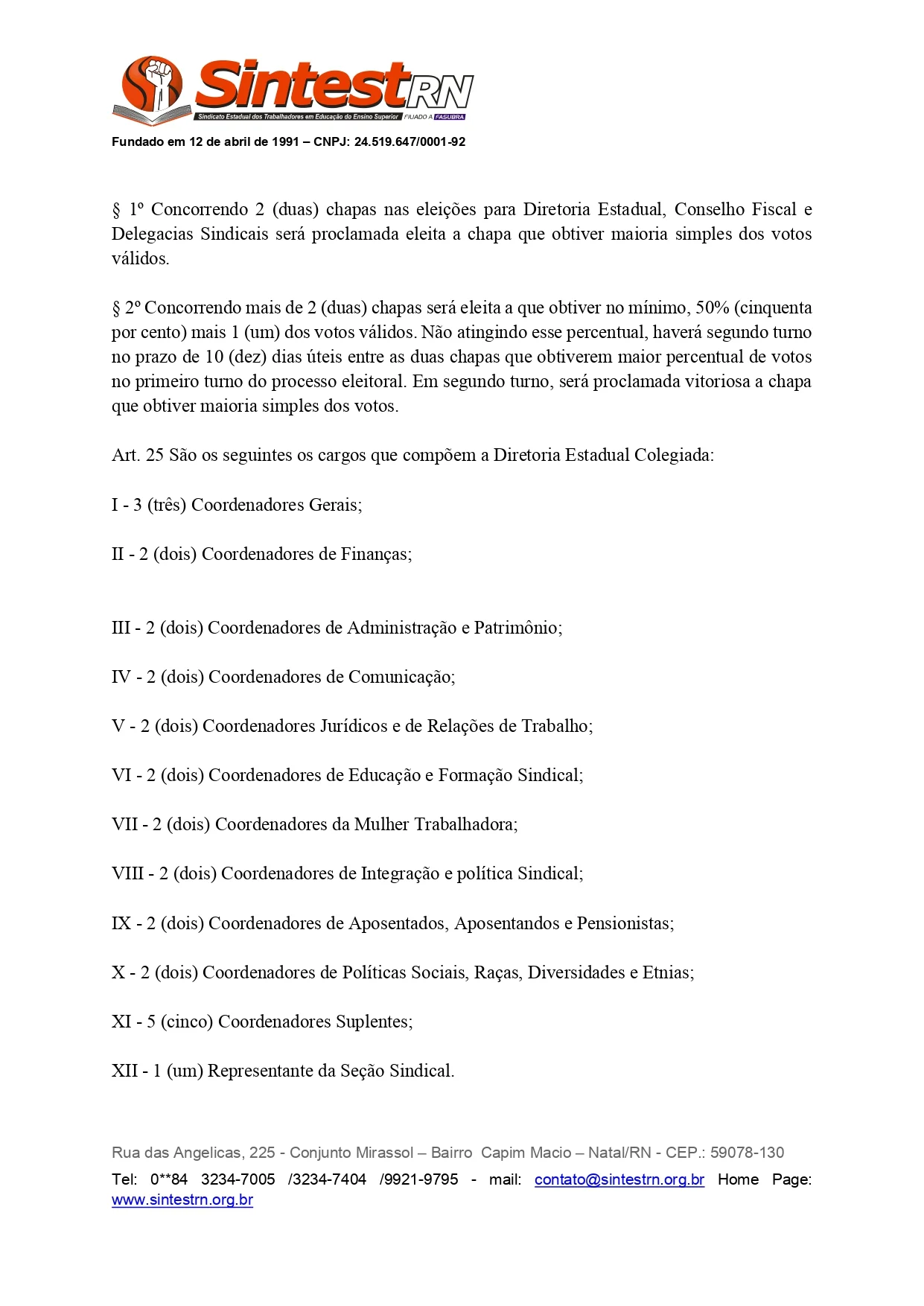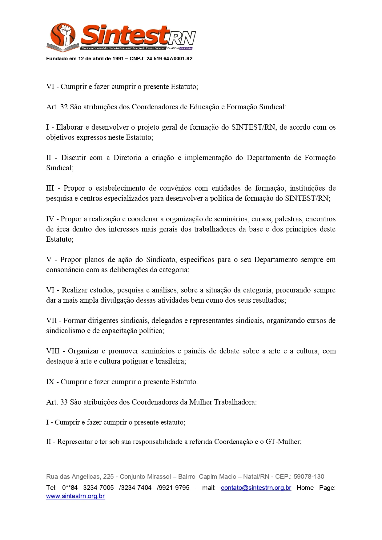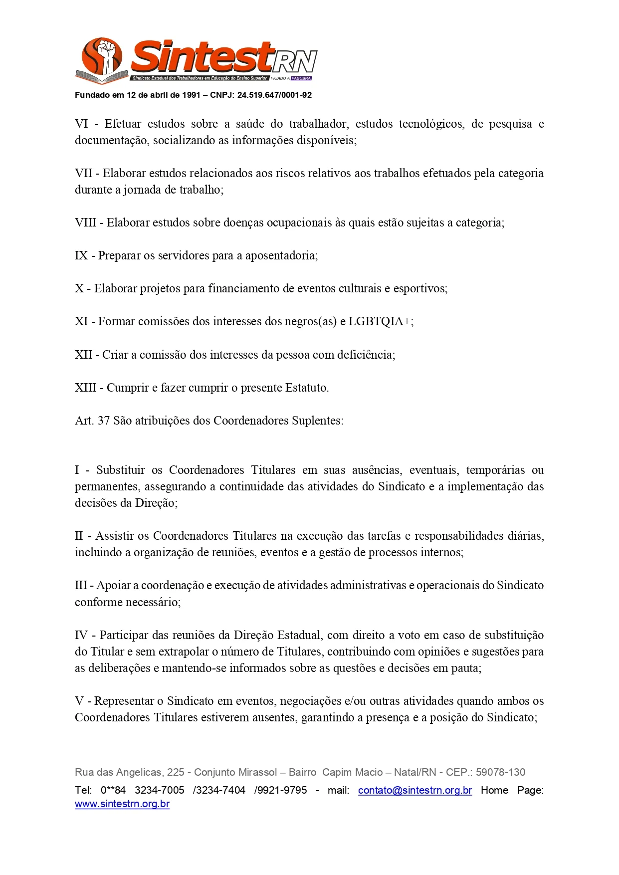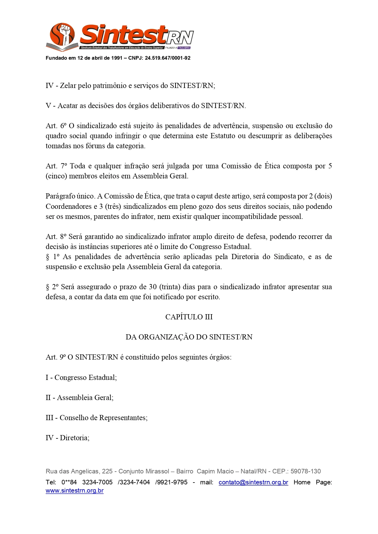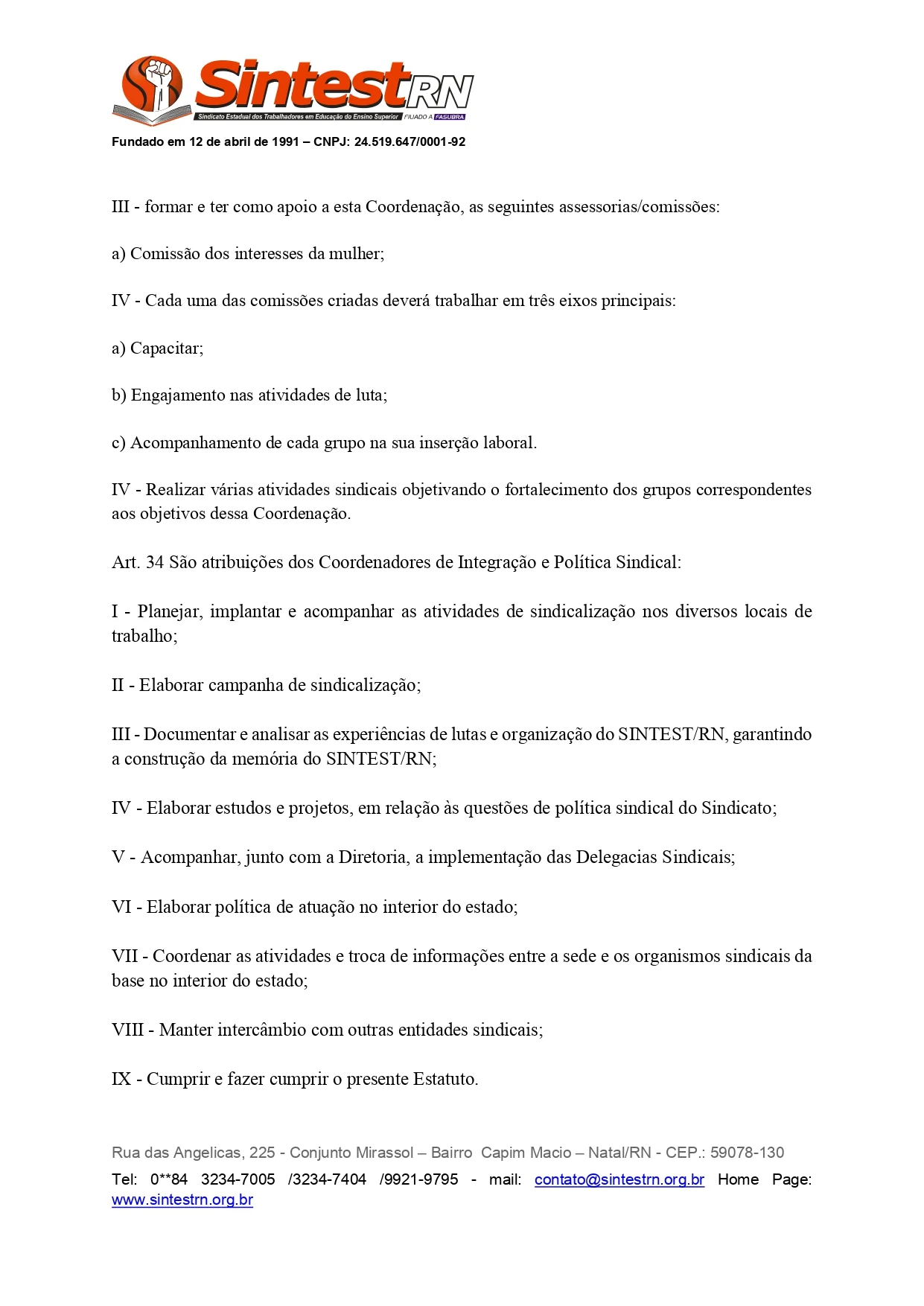 O novo estatuto foi aprovado no 17º Congresso Estadual Ordinário – XVII CONSINTEST, cujo tema foi “Avançando na consolidação de um SINTEST-RN independente, plural e de luta: desafios atuais para a organização da classe trabalhadora”.