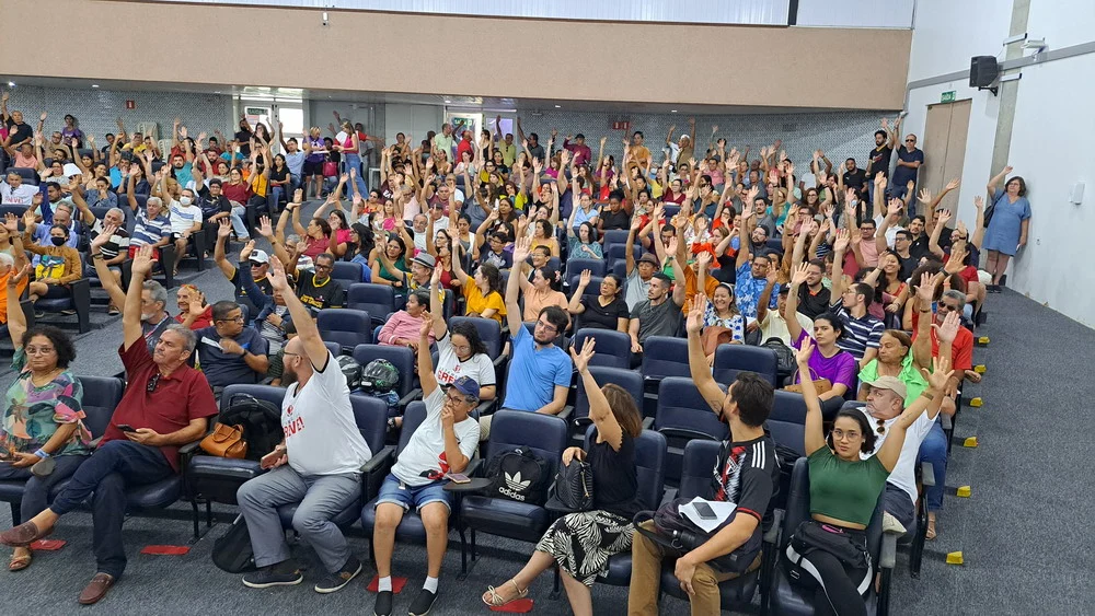Na manhã desta quarta-feira, 26/06, os técnico-administrativos da UFRN, reunidos em Assembleia Geral, analisaram e deliberaram acerca da assinatura do Termo de Acordo de Greve, assim como sobre a continuidade ou não do movimento grevista. Em regime de votação, por ampla maioria de votos, a categoria decidiu autorizar a FASUBRA a assinar o Termo de Acordo de Greve desde que feitas as alterações e correções indicadas pelo Comando Nacional de Greve – CNG (ver tabela abaixo). Diante disso, a categoria votou pela continuidade da greve até que a Minuta de Acordo revisada pelo CNG seja pactuada junto ao MGI* e a realização de uma nova assembleia na segunda-feira, dia 01/07, que irá avaliar se o documento contendo as alterações e correções propostas foi atendido.