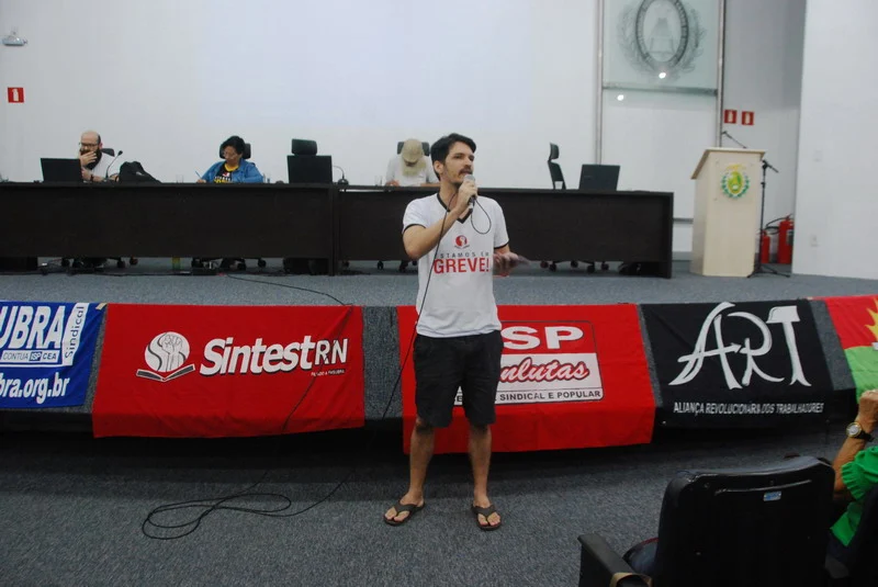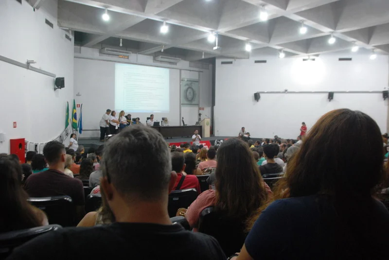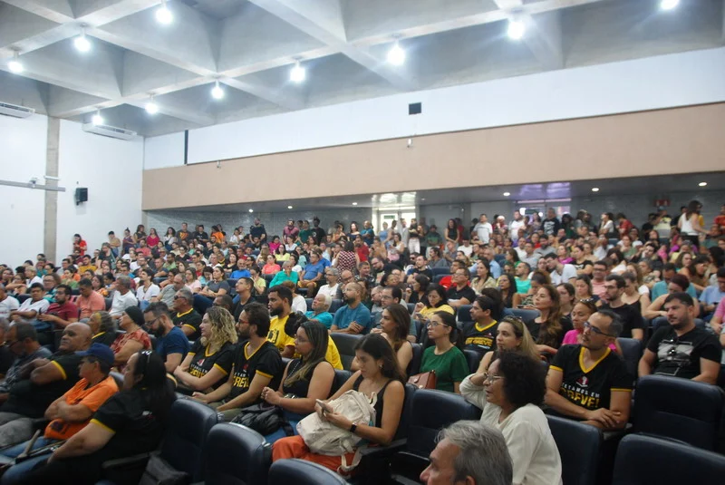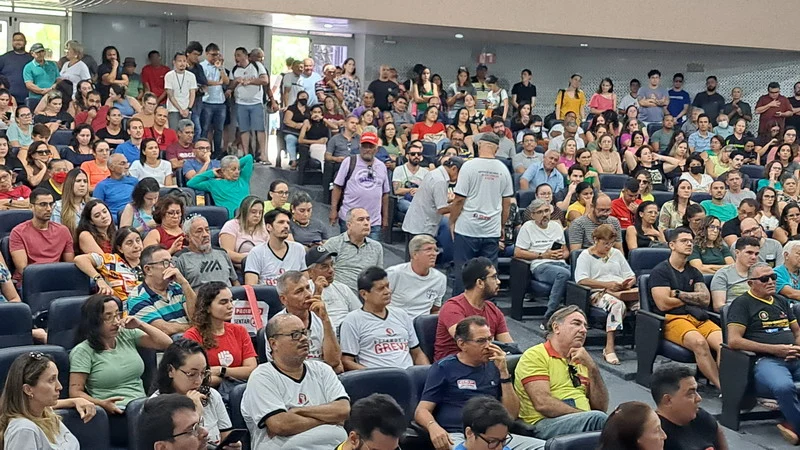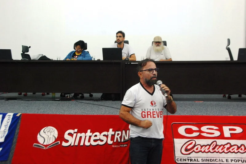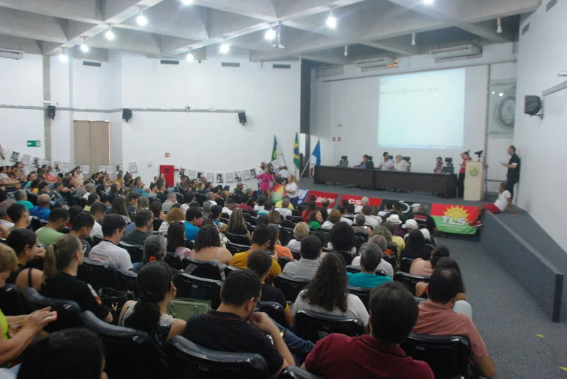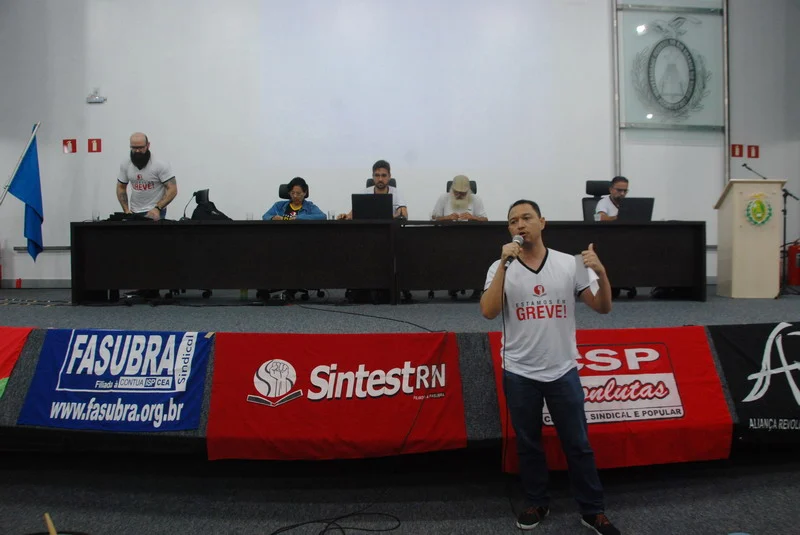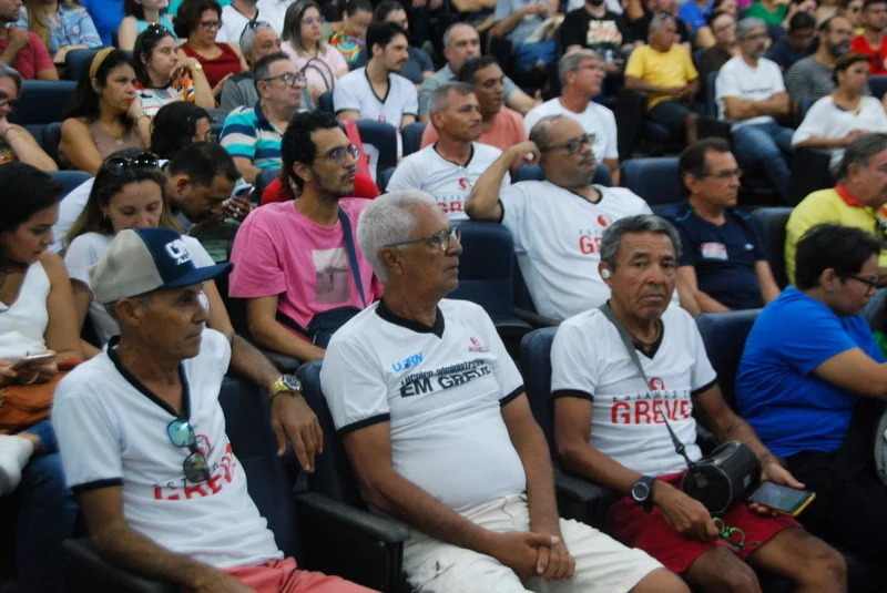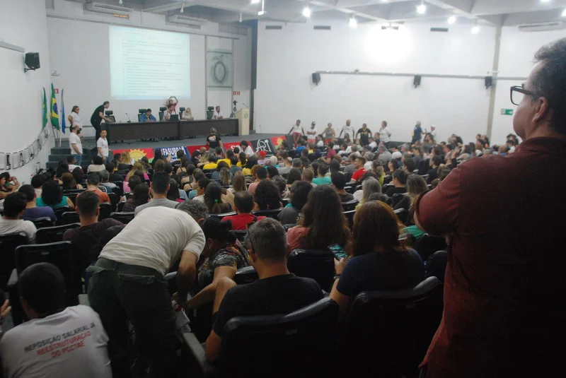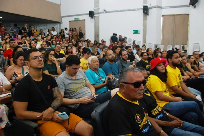 O SINTEST-RN realizou mais uma Assembleia de Greve dos técnico-administrativos da UFRN na manhã desta quarta-feira, 10/04, com o auditório da reitoria lotado. Mais de 520 pessoas assinaram a lista de frequência. Foram aprovadas a continuidade das mobilizações setoriais e de rua, além de uma nota de apoio aos servidores do Departamento de Odontologia (DOD), outra às Assistentes Sociais da assistência estudantil e mais uma aos terceirizados.