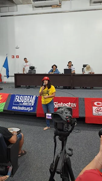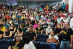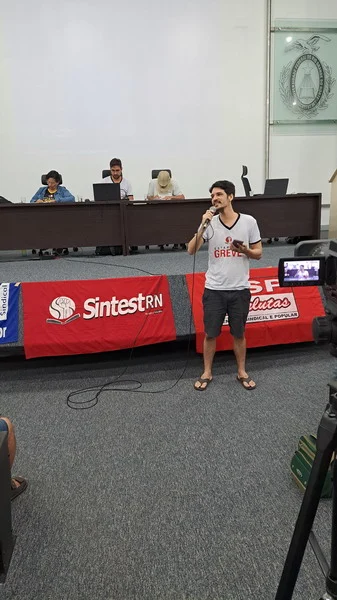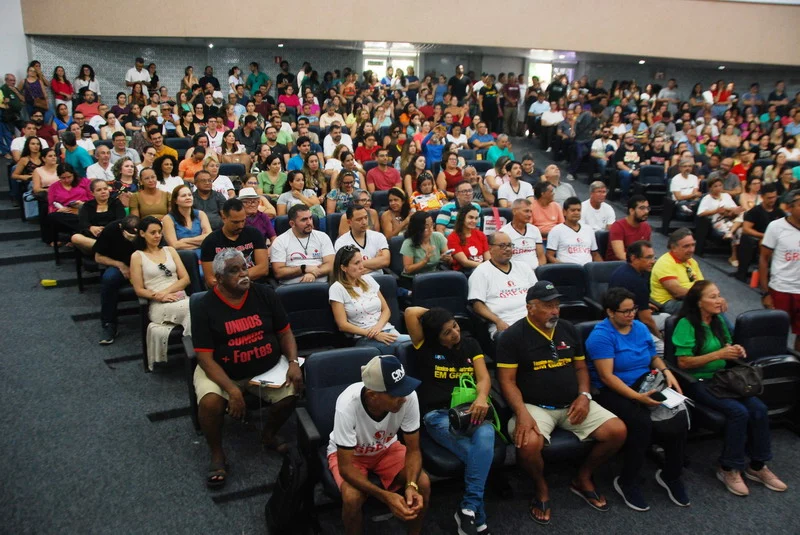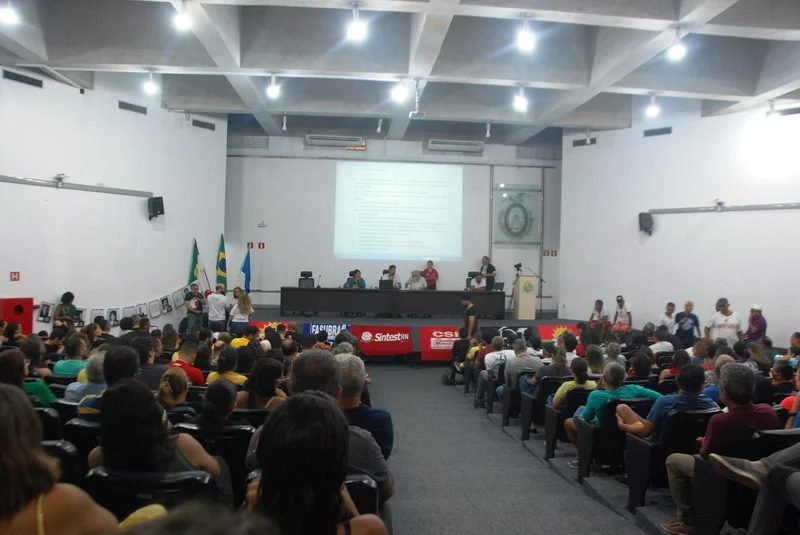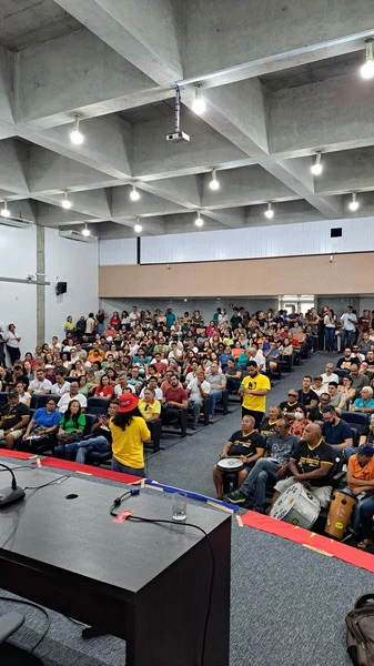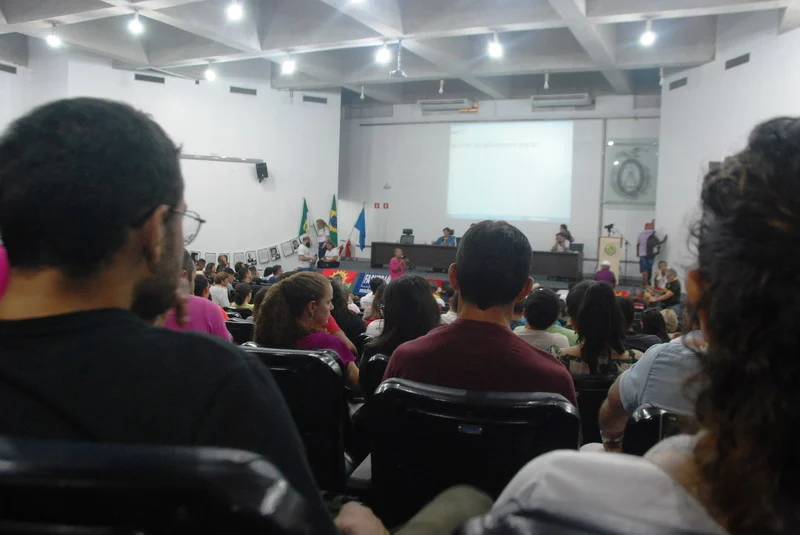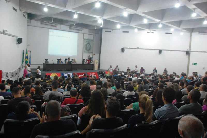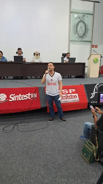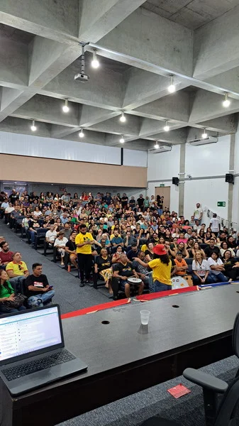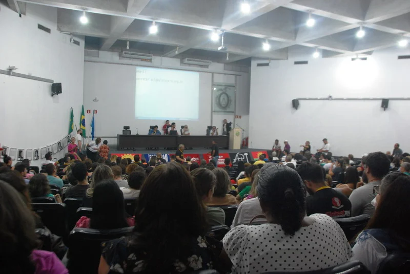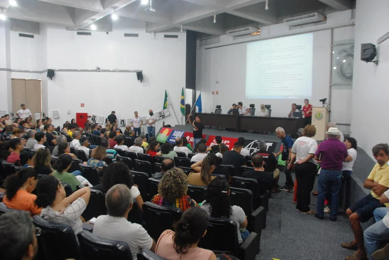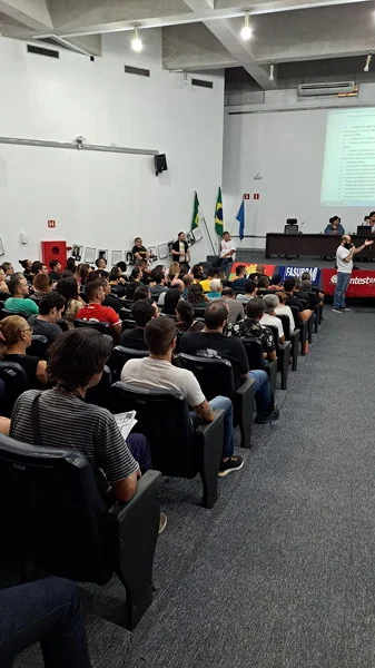 O SINTEST-RN realizou mais uma Assembleia de Greve dos técnico-administrativos da UFRN na manhã desta quarta-feira, 10/04, com o auditório da reitoria lotado. Mais de 520 pessoas assinaram a lista de frequência. Foram aprovadas a continuidade das mobilizações setoriais e de rua, além de uma nota de apoio aos servidores do Departamento de Odontologia (DOD), outra às Assistentes Sociais da assistência estudantil e mais uma aos terceirizados.