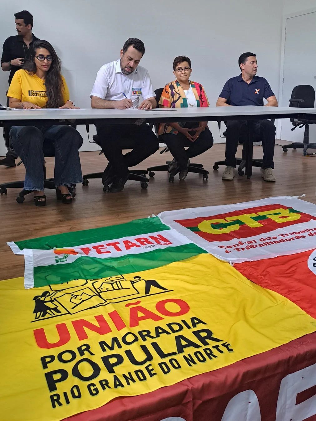 Na última sexta-feira (13/03), durante o programa itinerante Governo do Brasil na Rua, realizado em IERN, em Natal, o Comando Local de Greve do SINTEST-RN entregou uma carta ao ministro-chefe da Secretaria-Geral da Presidência, Guilherme Boulos, solicitando mediação junto ao Ministério da Gestão e da Inovação em Serviços Públicos (MGI).