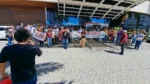 O SINTEST-RN e o Comando Local de Greve (CLG) estiveram presentes no ato “Bom dia Ministro”, realizado na manhã desta segunda-feira (15/04) no evento de lançamento do programa “Pé de meia”, do Governo Federal, no RN. O Ato “Bom dia Ministro” foi organizado em conjunto com o SINASEFE Natal, sindicato que representa os técnico-administrativos e docentes do IFRN, em greve desde o dia 03/04, além de representações estudantis. O objetivo era chamar a atenção do Ministro da Educação, Camilo Santana, para a pauta de reivindicações dos servidores das Universidades e Institutos Federais que estão em greve em todo o país, lutando pela recomposição orçamentária das Instituições de Ensino Superior, revogação das medidas contrárias aos serviços públicos, recomposição salarial e reestruturação das carreiras.