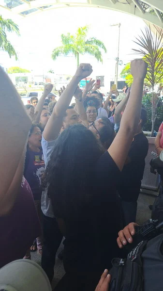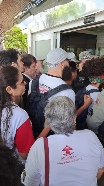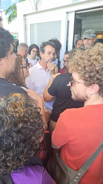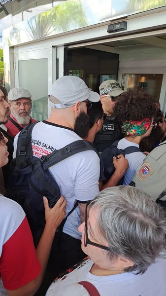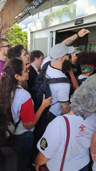 Apesar de pacífico, o movimento foi impedido de entrar no evento e a polícia militar formou uma barreira impedido todos os acessos ao hotel Holiday Inn, local onde aconteceu o evento. Inclusive, vários estudantes não conseguiram entrar no local, ficando debaixo de sol e muito calor.