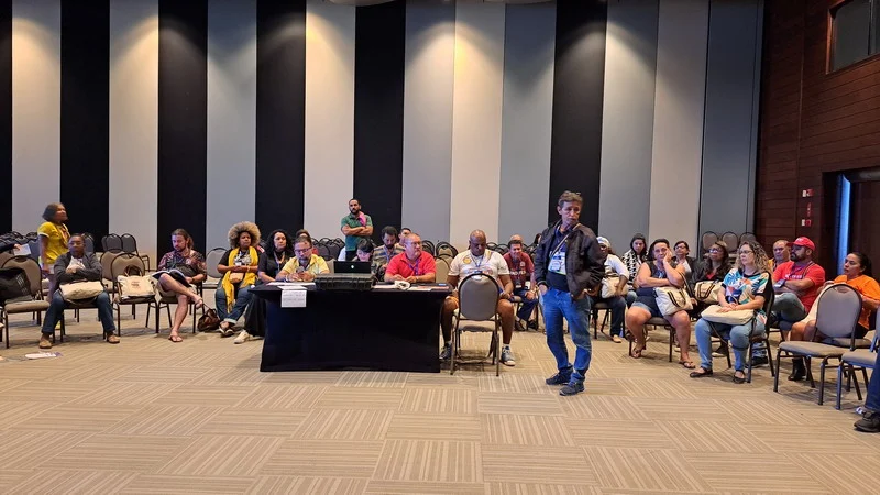 A delegação do Sintest fez importantes contribuições durante as discussões. Felipe Tavaves fez várias contribuições sobre o assédio moral e sexual. Celita Pessoa fez apontamentos para a melhoria dos TAEs que trabalham nos HUs, enquanto Tházia Maia questionou a falta das pautas feministas e solicitou inclusão desses temas nos debates da Federação. Já Edson Lima contribuiu com sugestões sobre a luta contra o arcabouço fiscal. Os 30 delegados foram distribuídos, por ordem alfabética, nos dez GTs e cada um contribuiu nas discussões, propondo e votando nas propostas que serão levadas e votadas na Plenária Final.